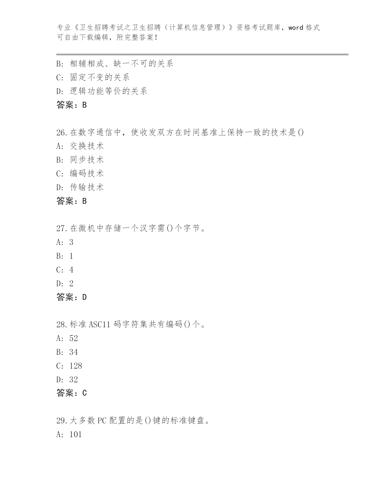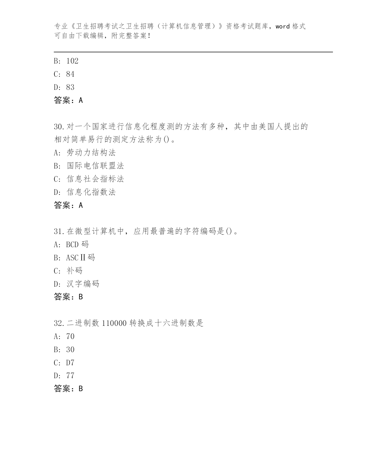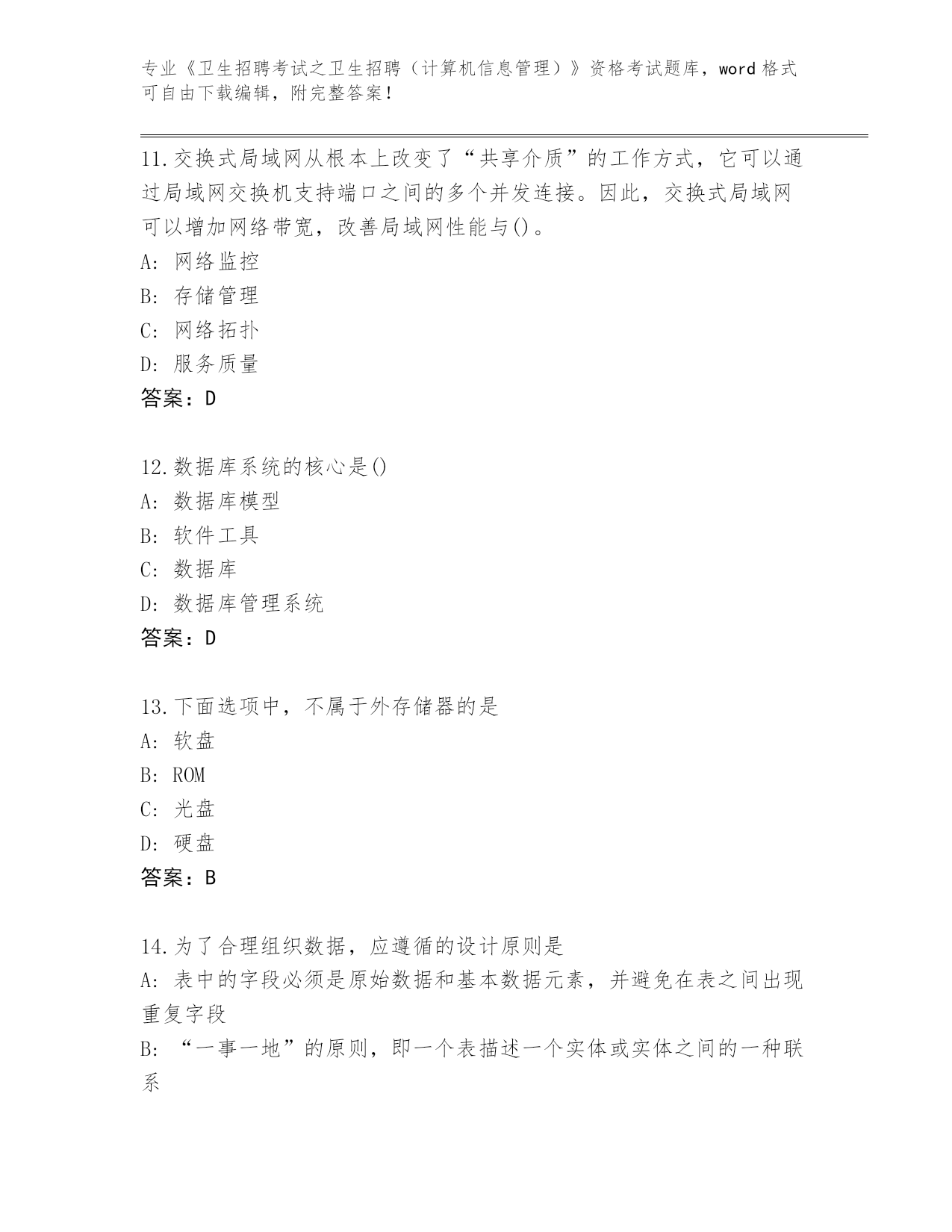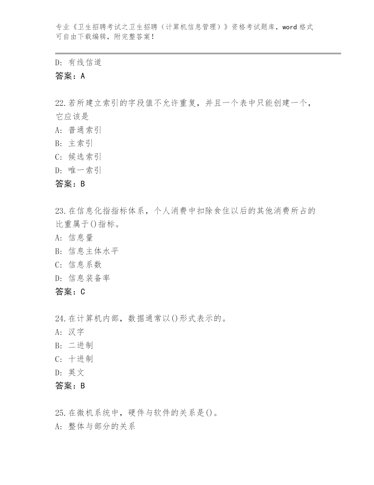 河北省2024年《卫生招聘考试之卫生招聘(计算机信息管理)》资格考试完整题库有答案