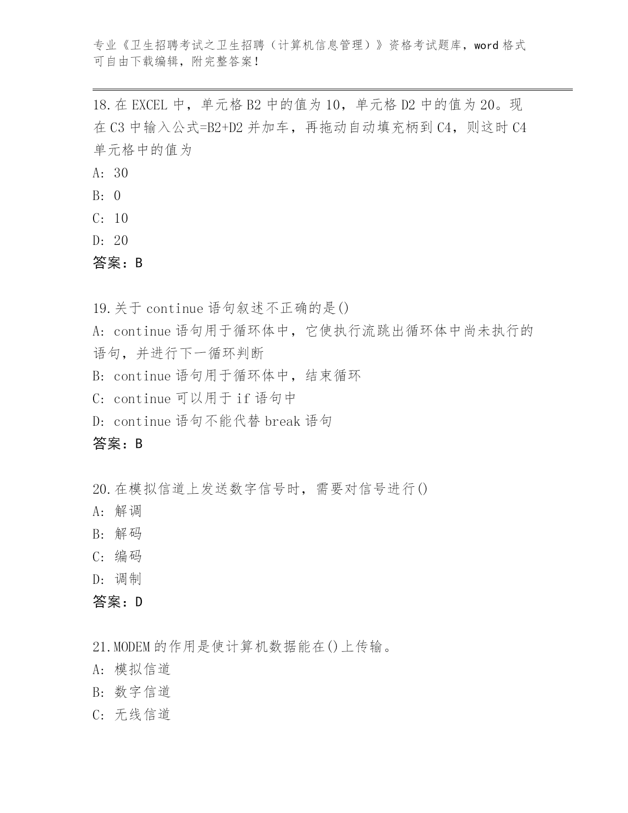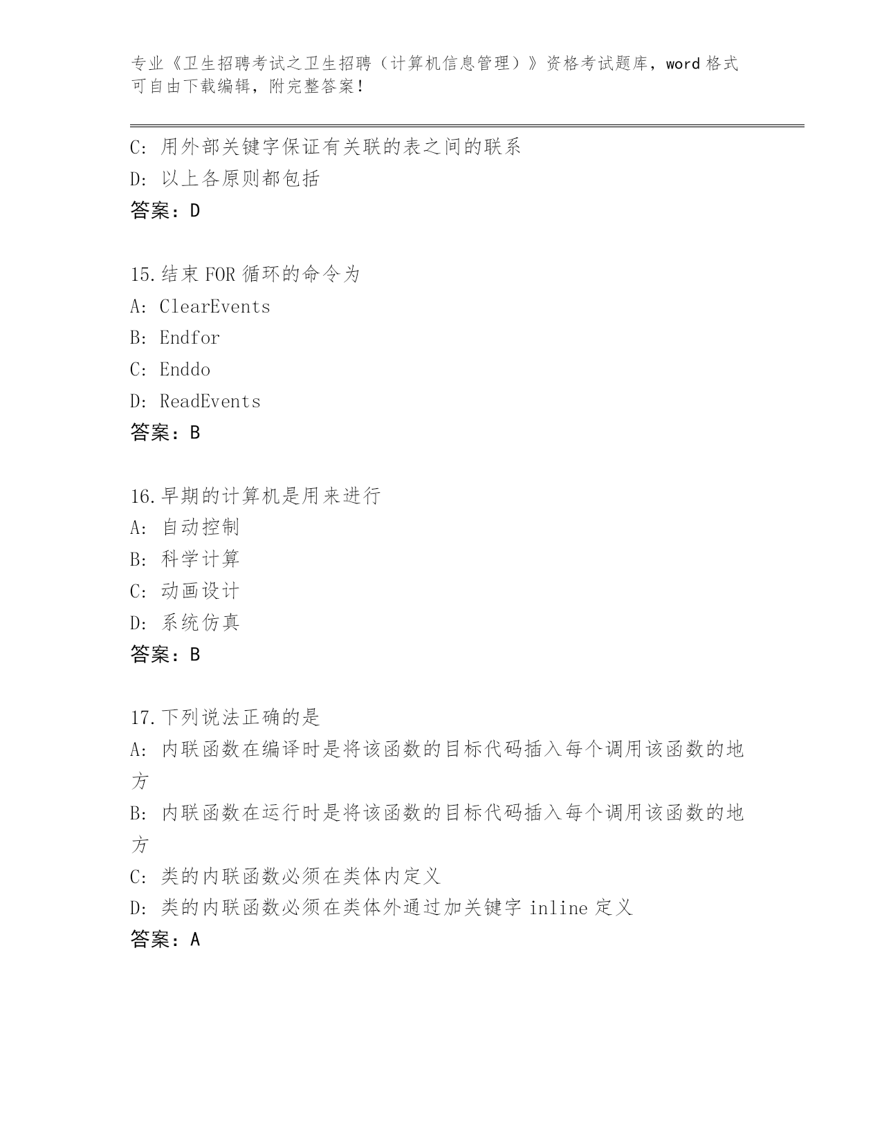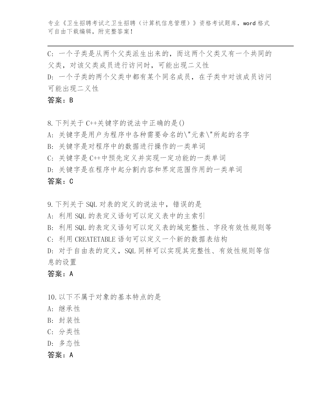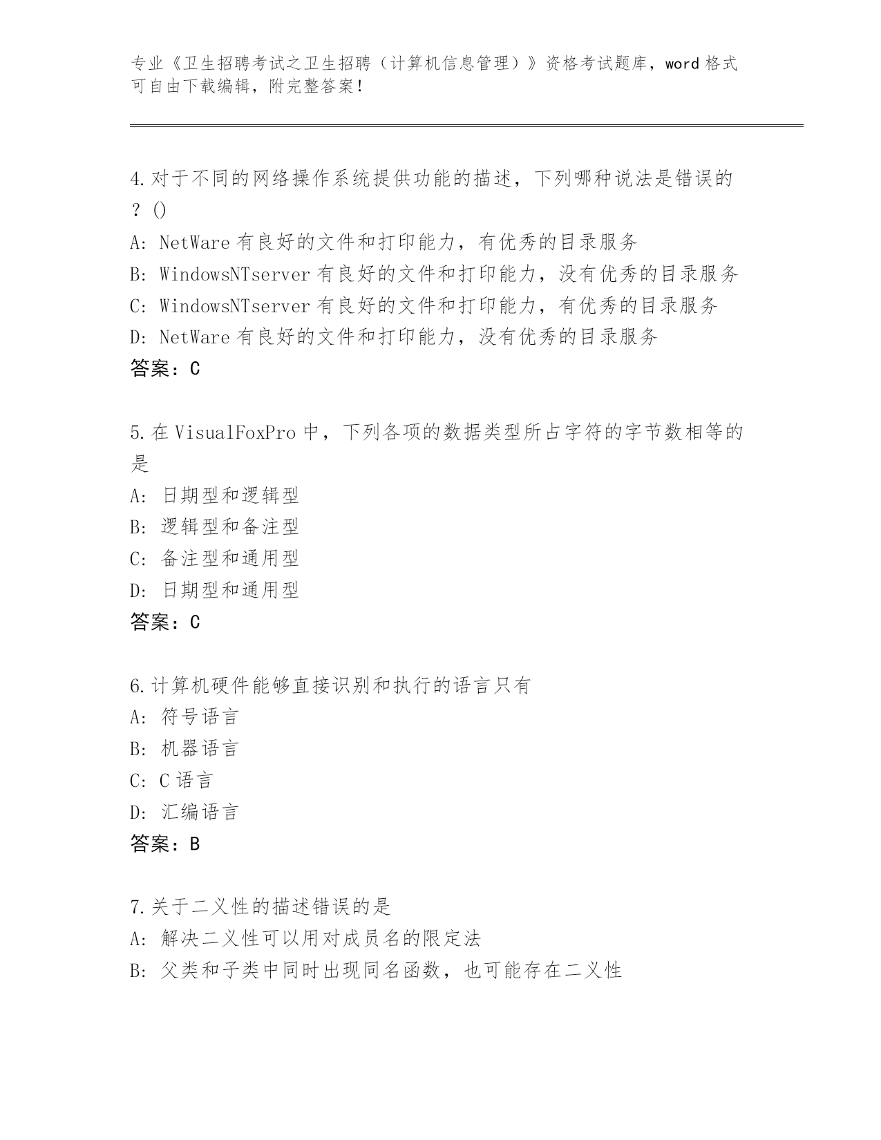 河北省2024年《卫生招聘考试之卫生招聘(计算机信息管理)》资格考试完整题库有答案