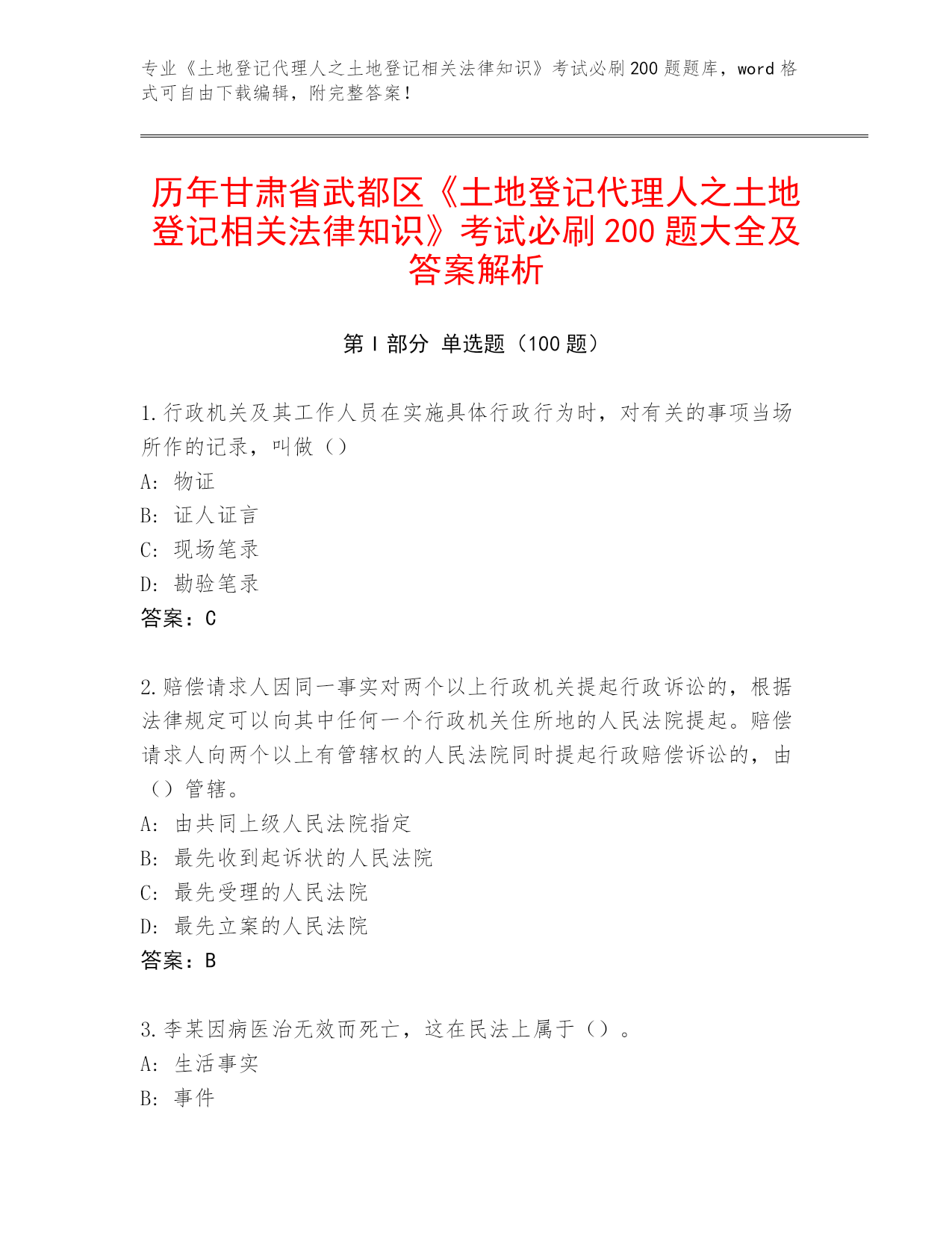 历年甘肃省武都区《土地登记代理人之土地登记相关法律知识》考试必刷200题大全及答案解析.docx