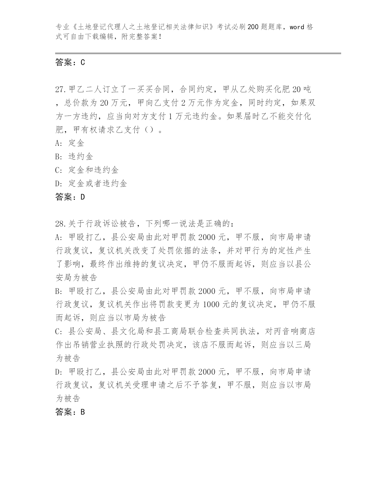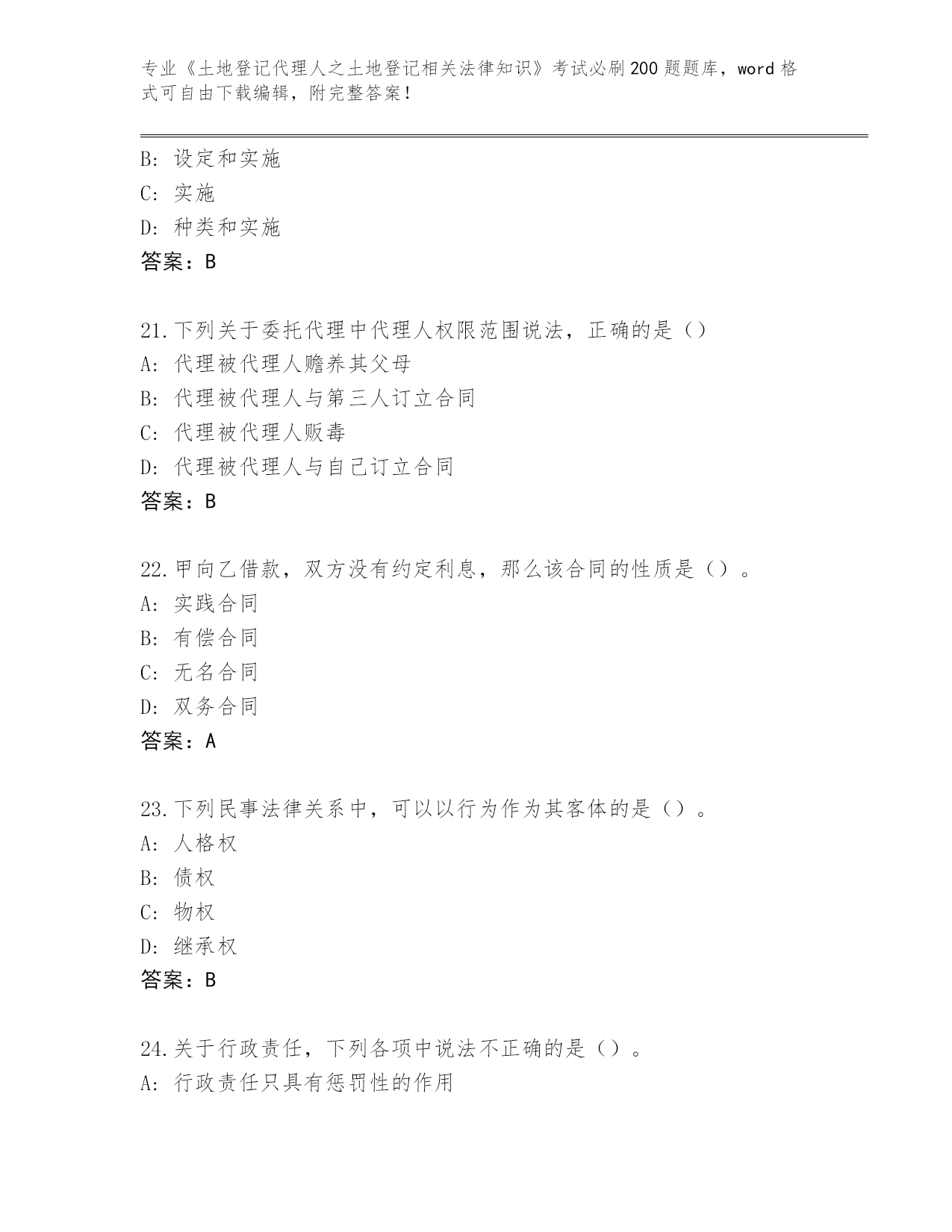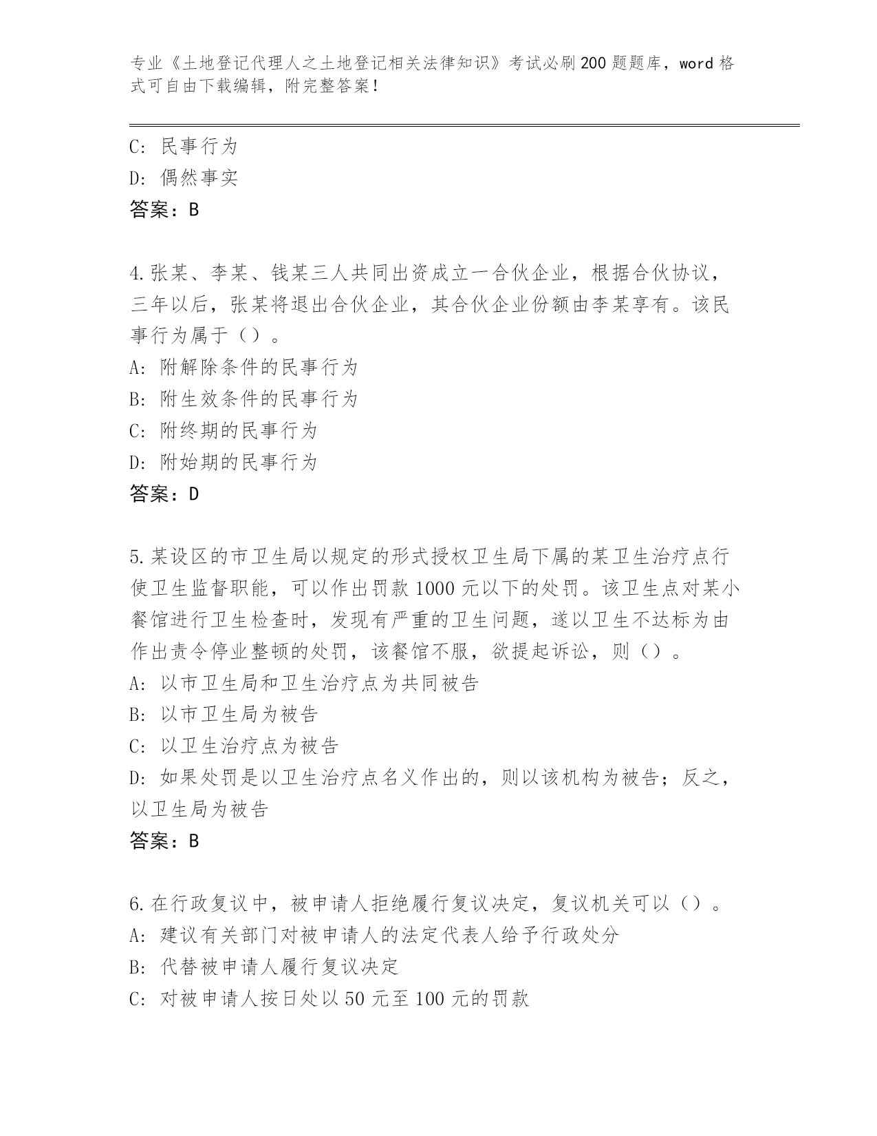 2024黑龙江省泰来县《土地登记代理人之土地登记相关法律知识》资格考试必刷200题真题(网校专用)
