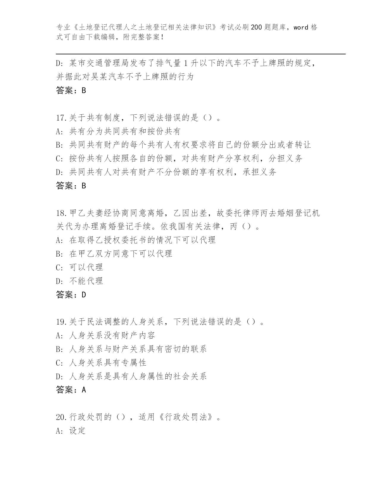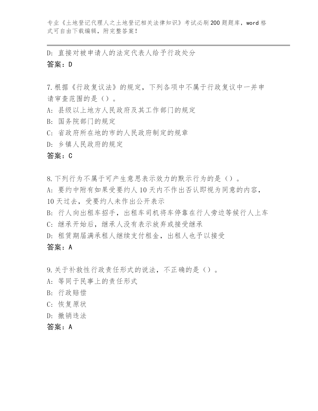 历年甘肃省武都区《土地登记代理人之土地登记相关法律知识》考试必刷200题大全及答案解析