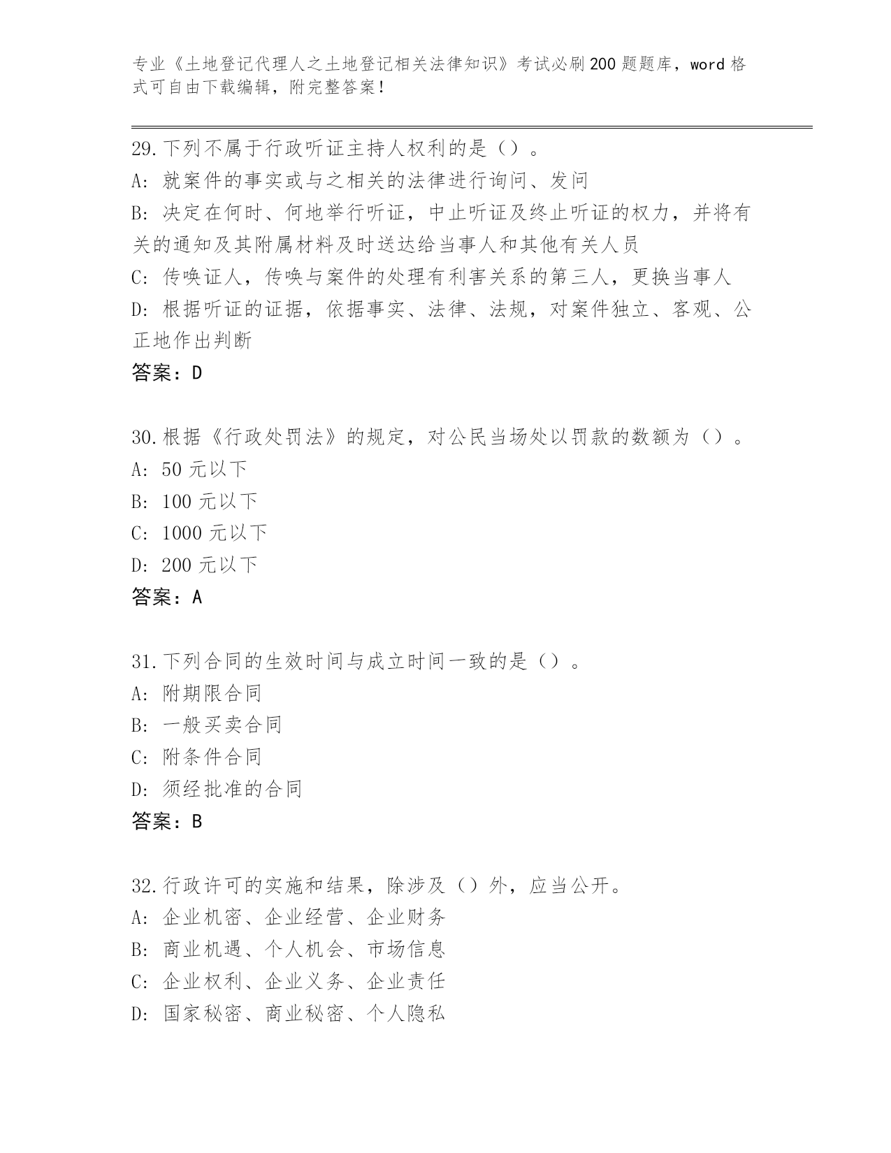完整版河北省隆化县《土地登记代理人之土地登记相关法律知识》资格考试必背200题完整题库带解析答案