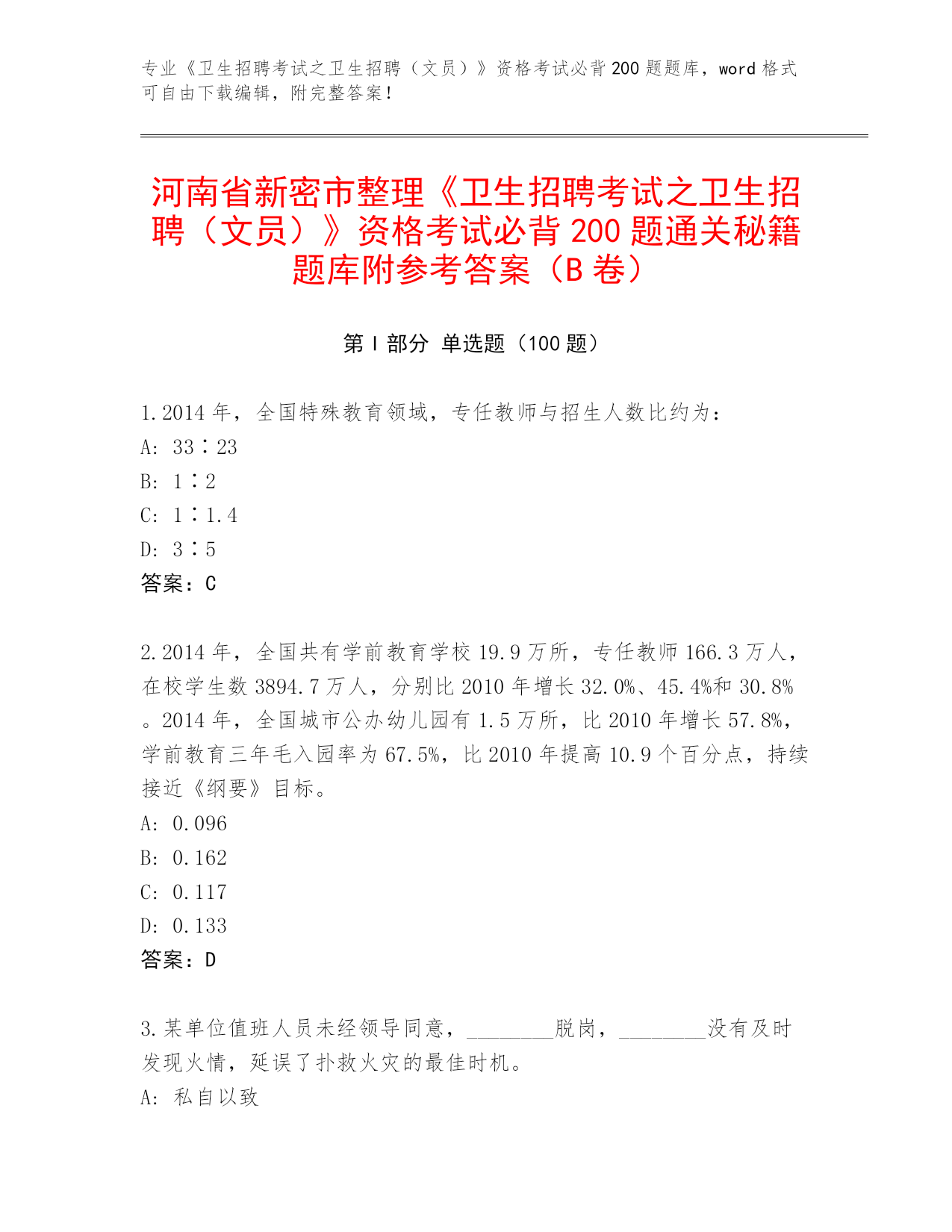 河南省新密市整理《卫生招聘考试之卫生招聘(文员)》资格考试必背200题通关秘籍题库附参考答案(B卷)