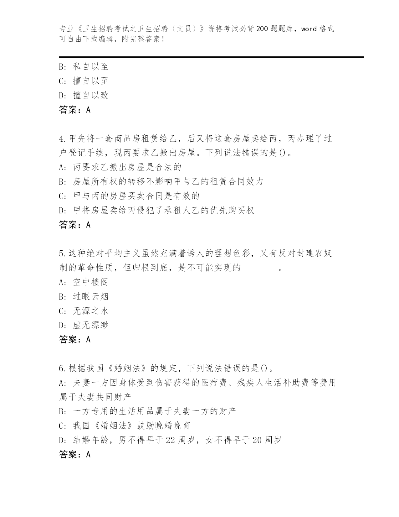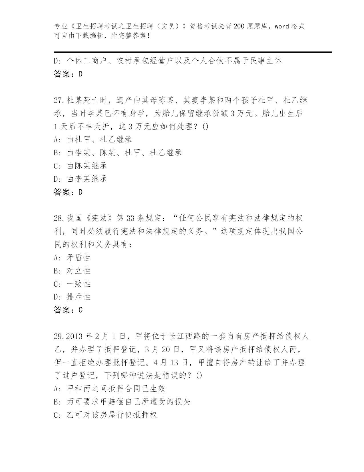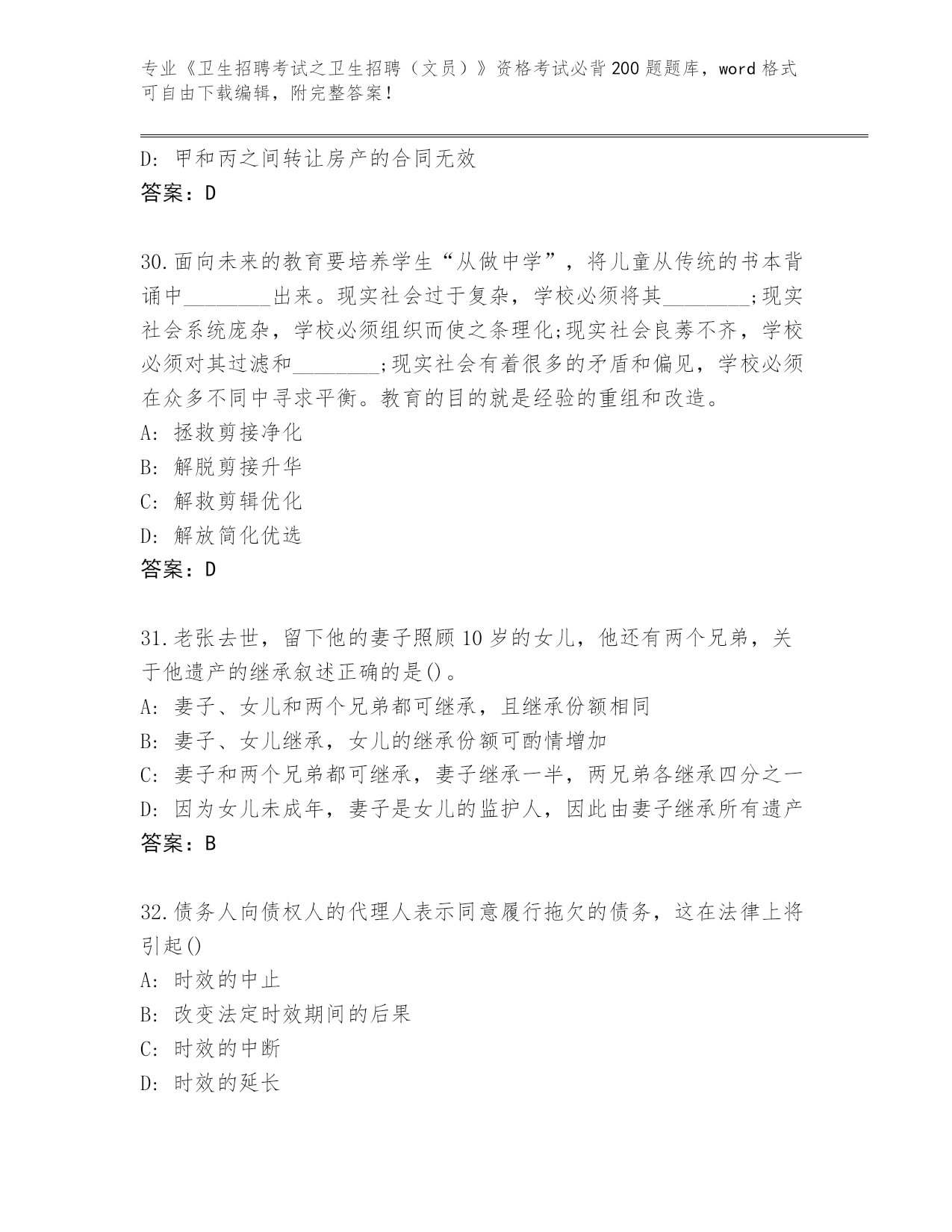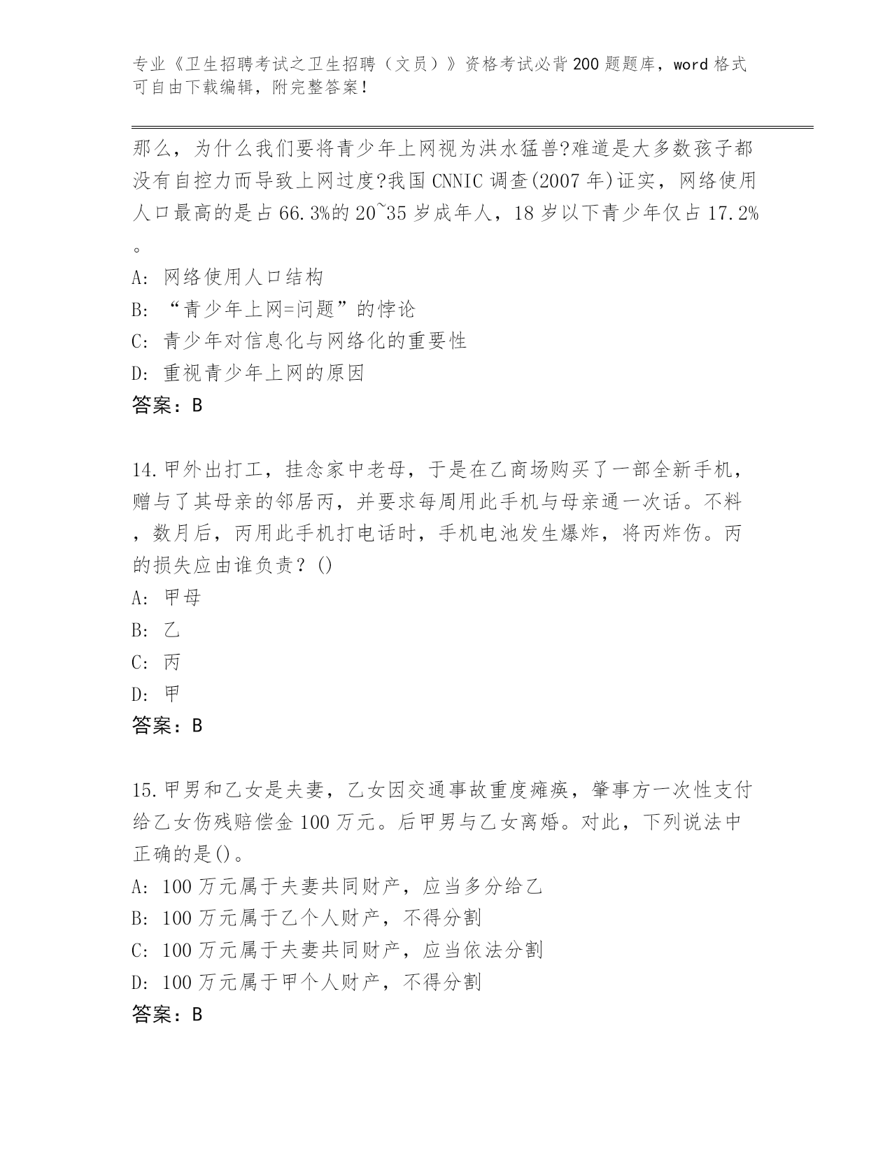 整理河北省《卫生招聘考试之卫生招聘(文员)》资格考试必背200题通关秘籍题库(B卷)