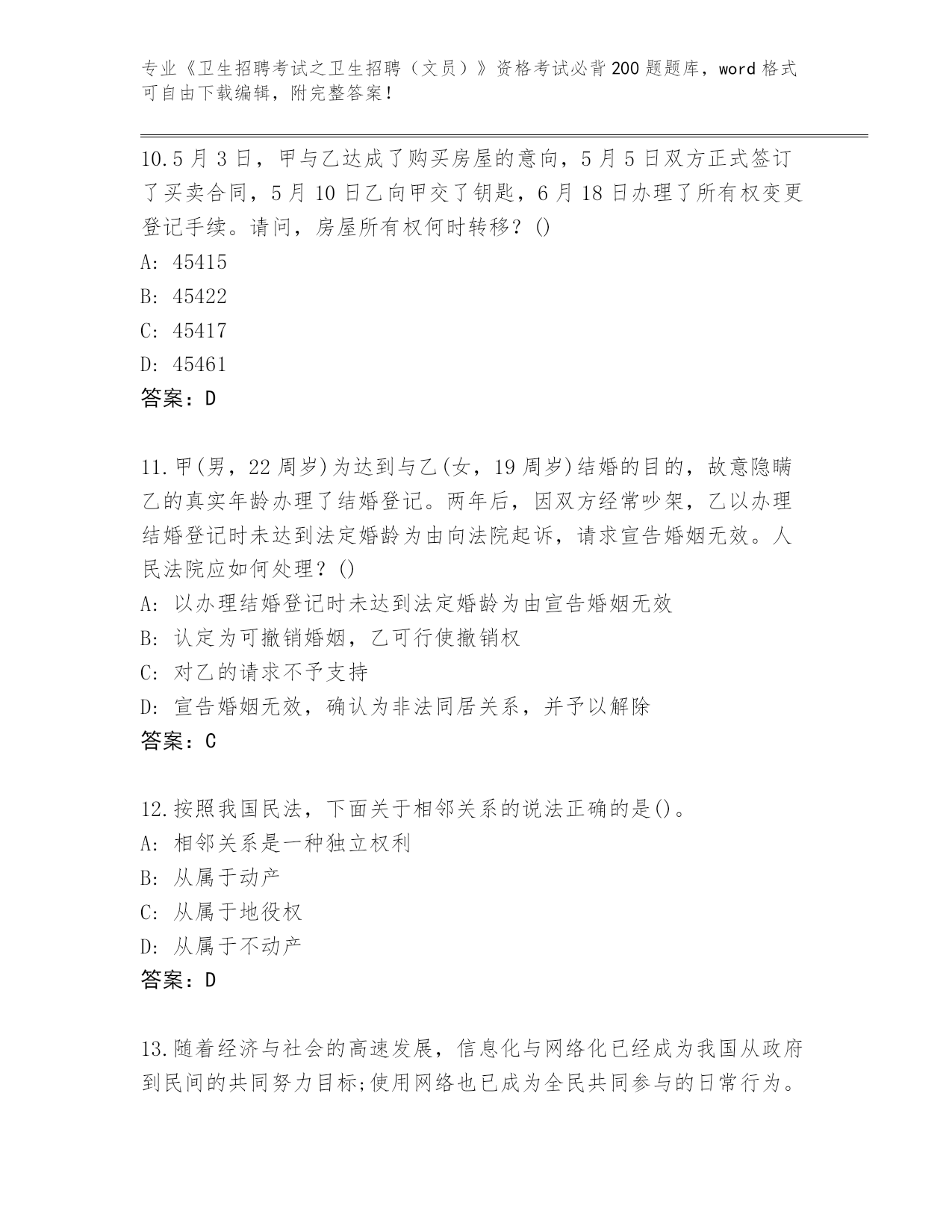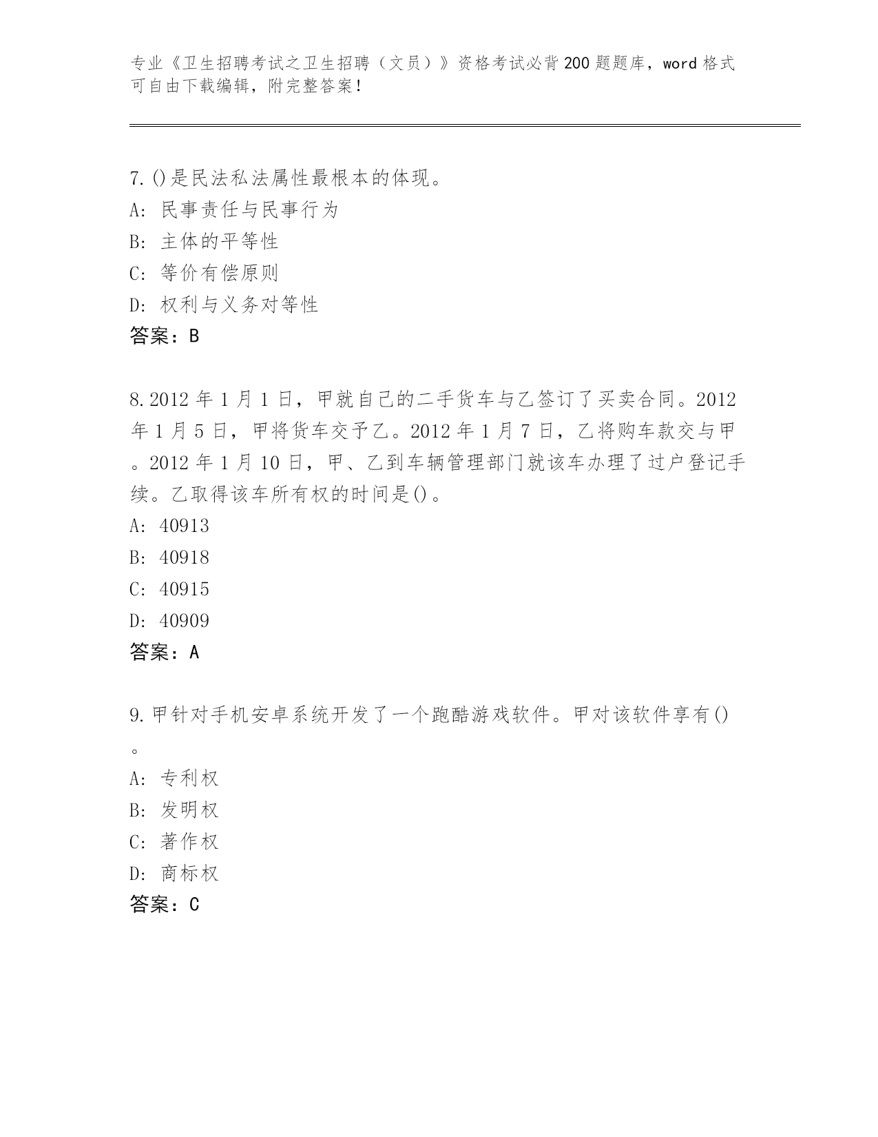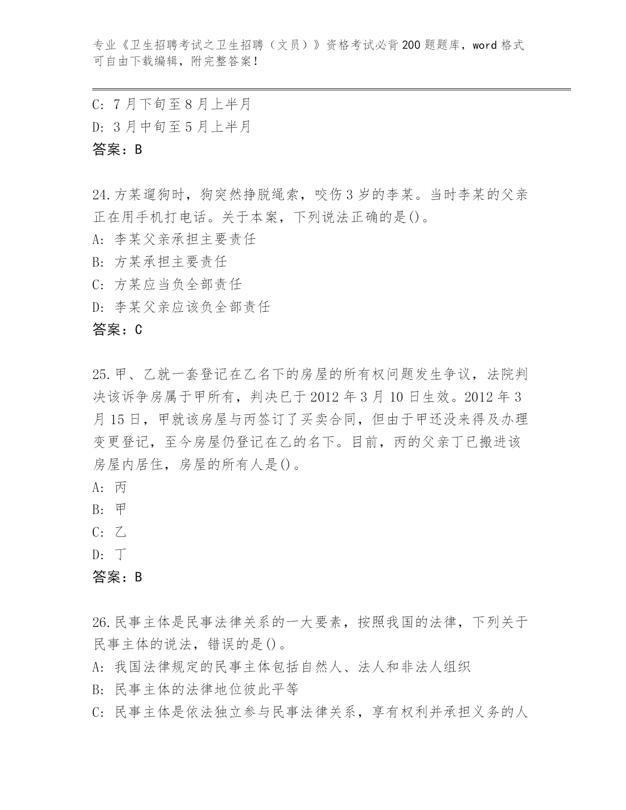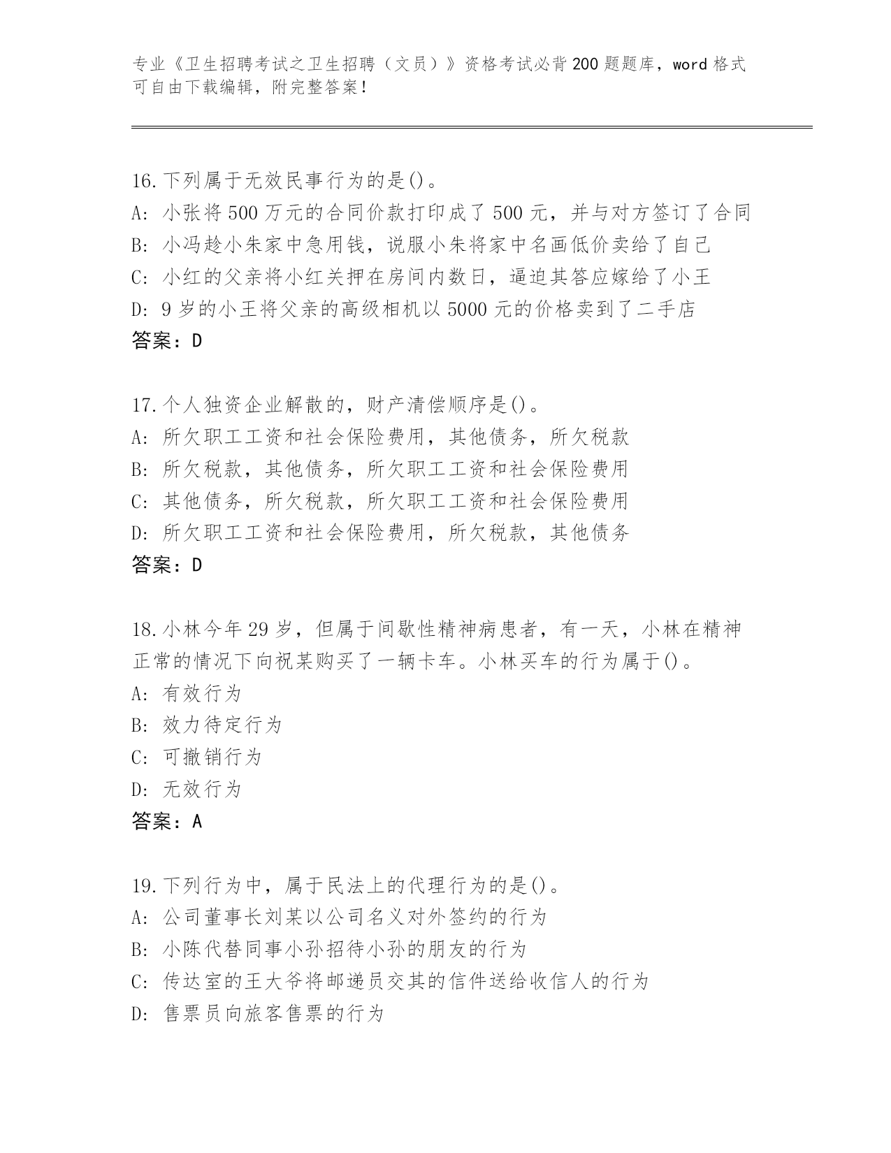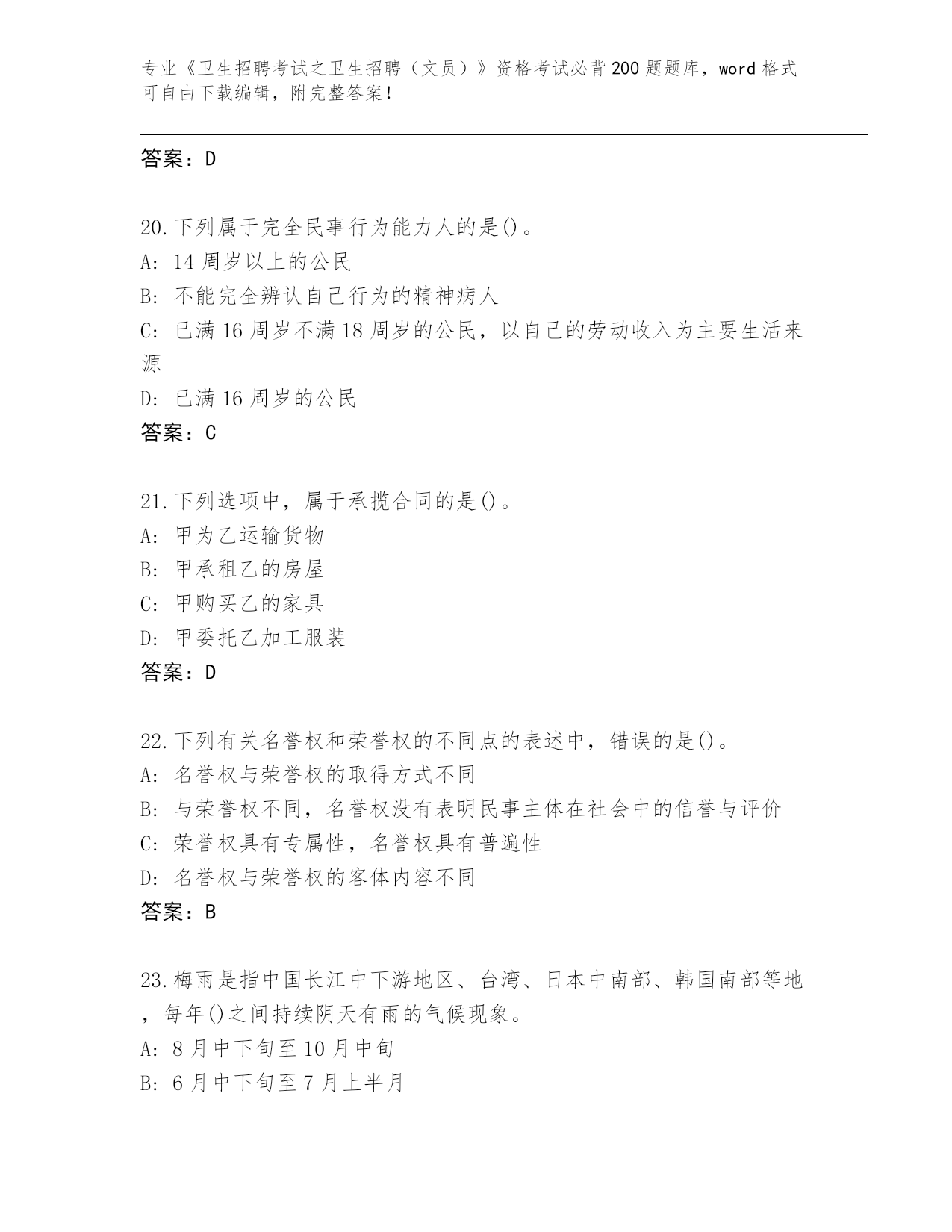 整理河北省《卫生招聘考试之卫生招聘(文员)》资格考试必背200题通关秘籍题库(B卷)