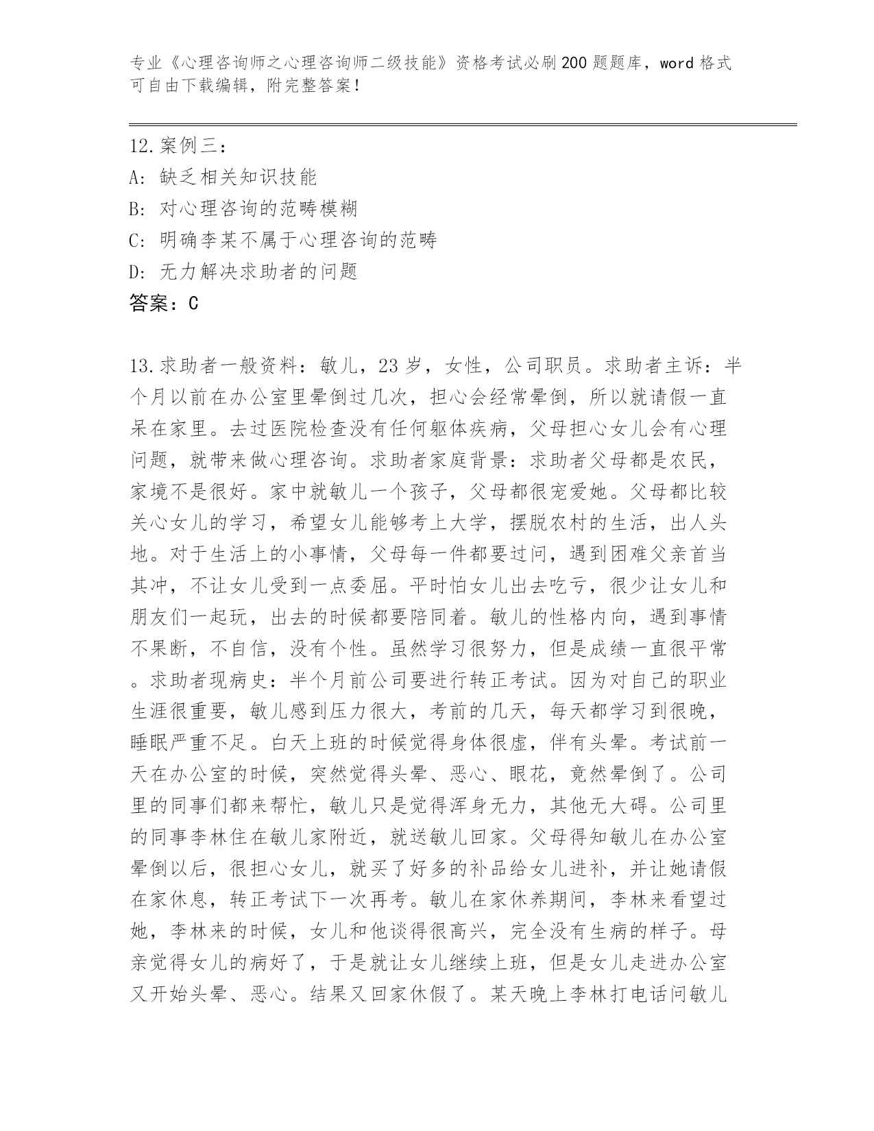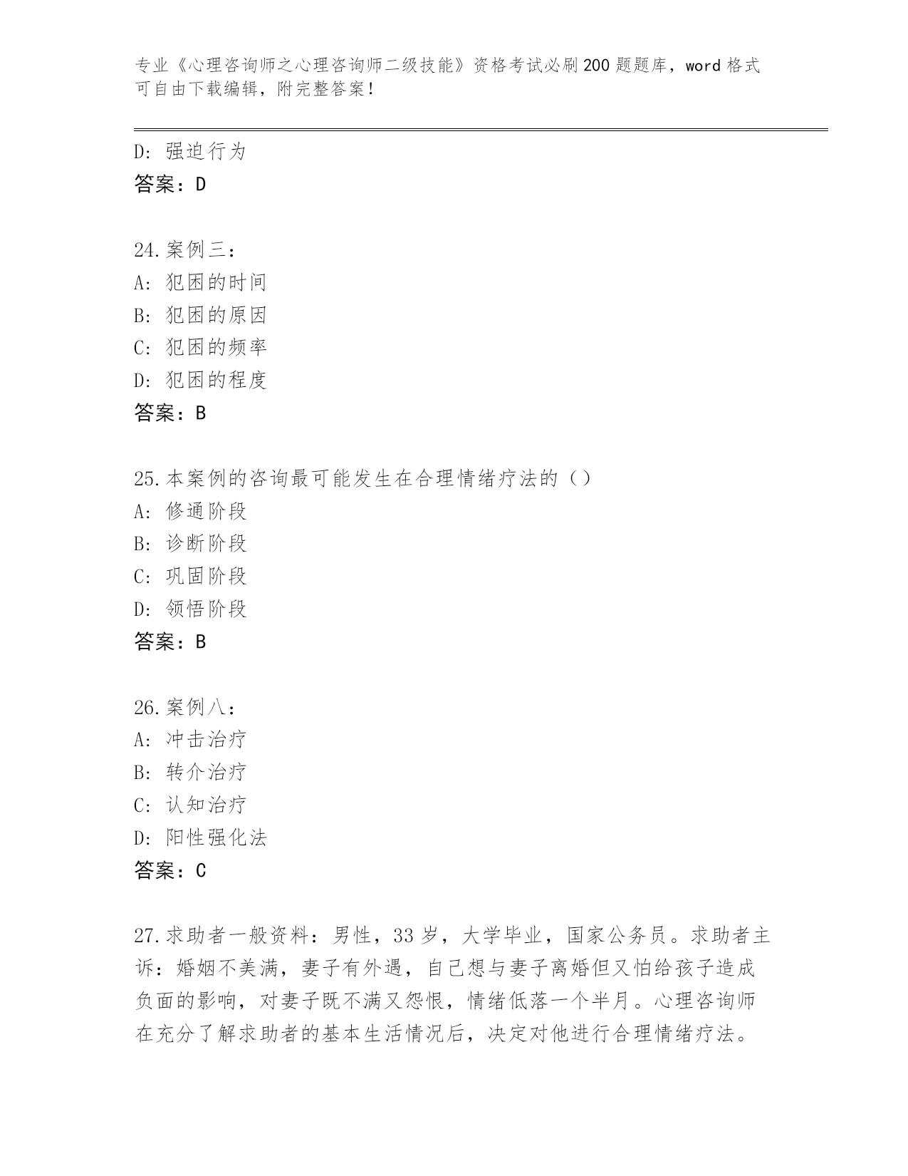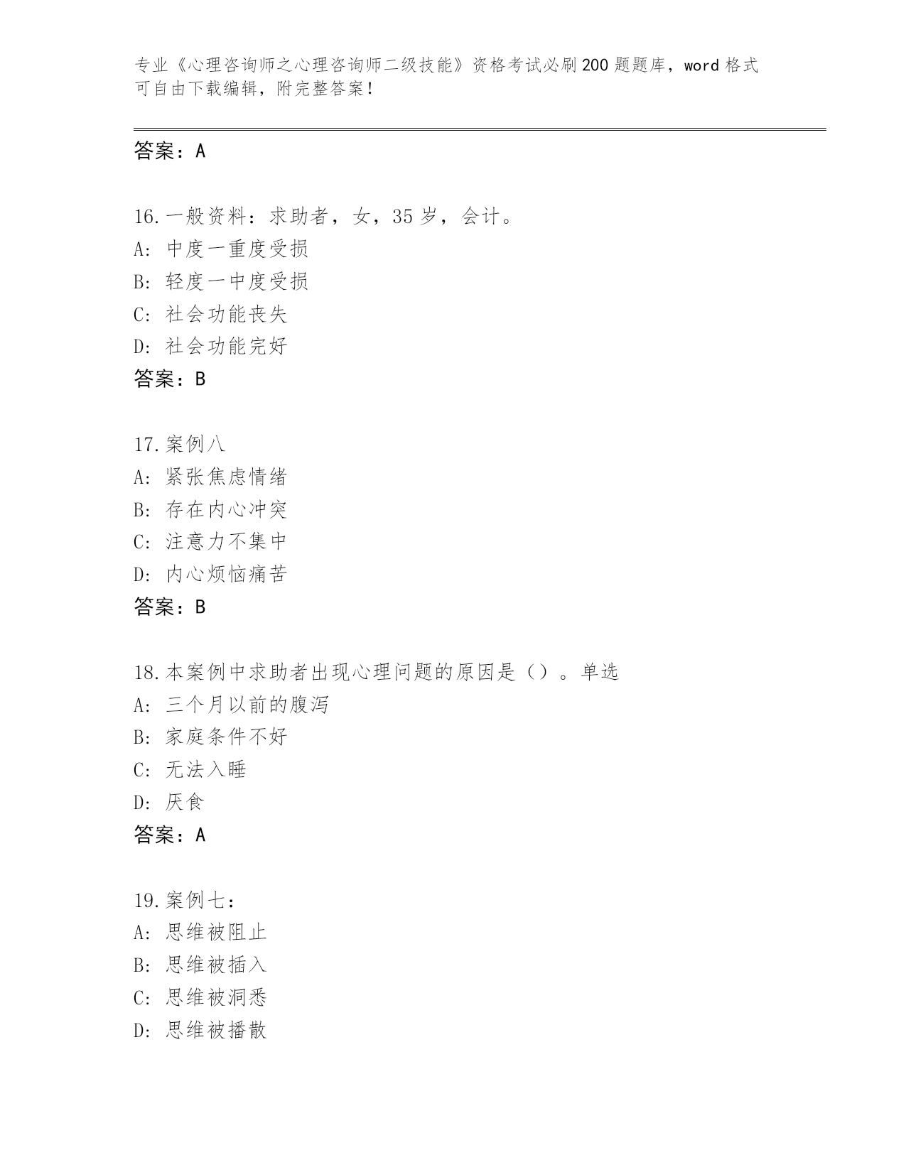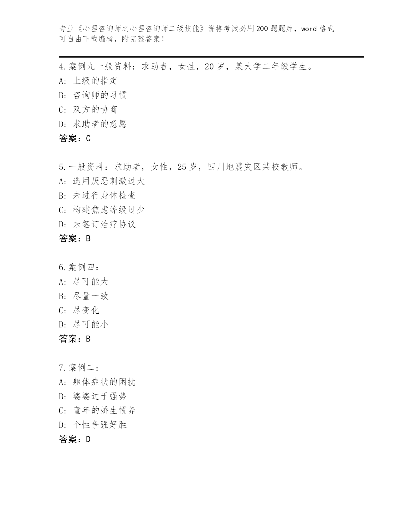 广东省濠江区2024《心理咨询师之心理咨询师二级技能》考试必刷200题完整版附答案【名师推荐】