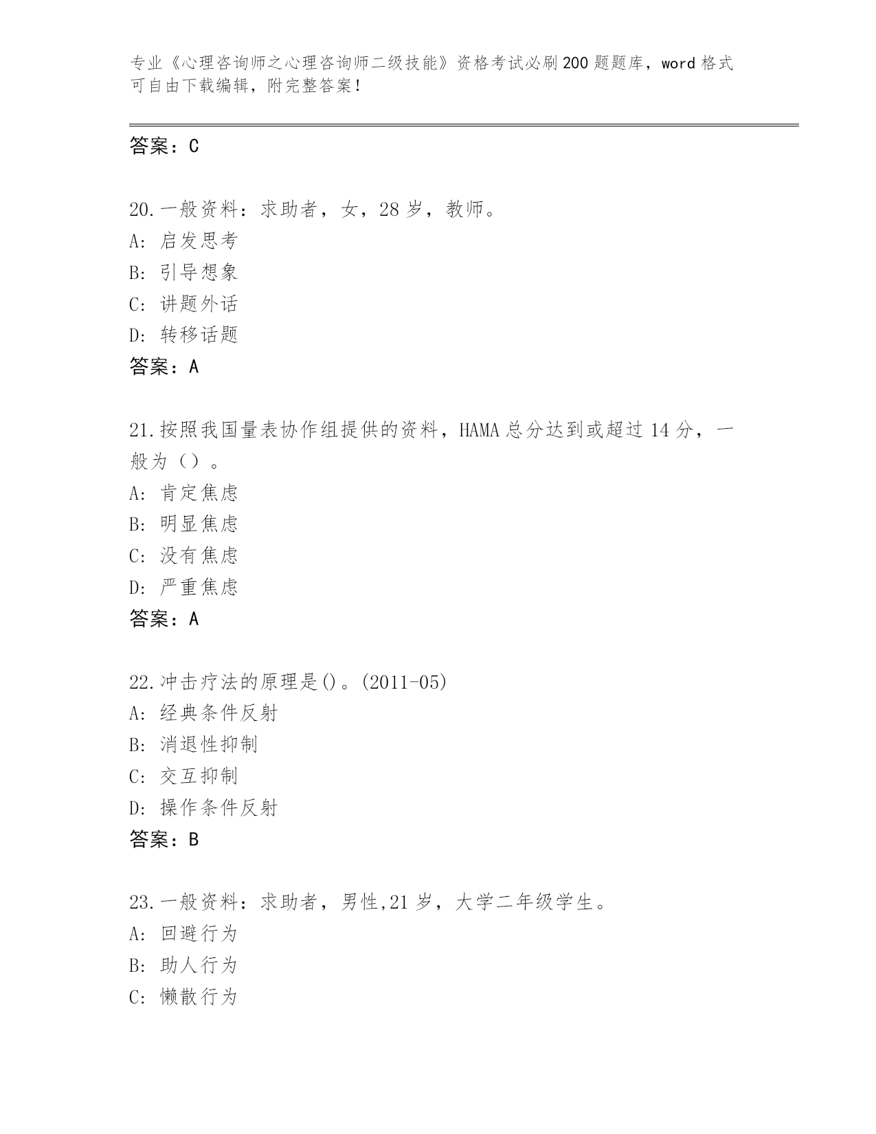 2023-24年广东省《心理咨询师之心理咨询师二级技能》资格考试必刷200题大全【名师推荐】