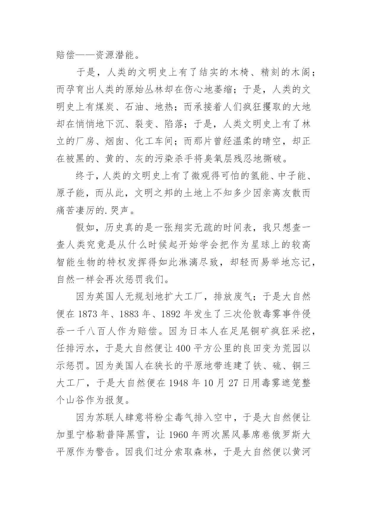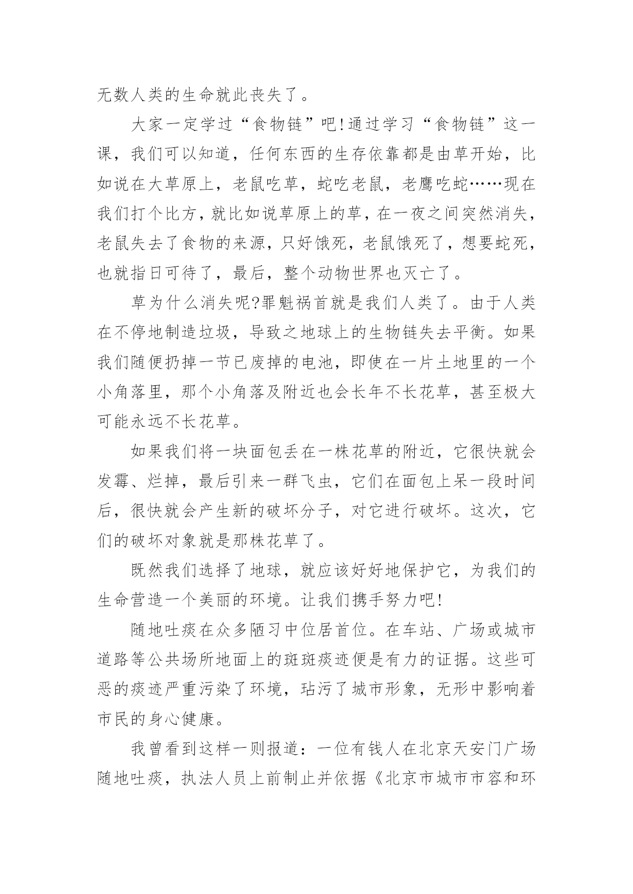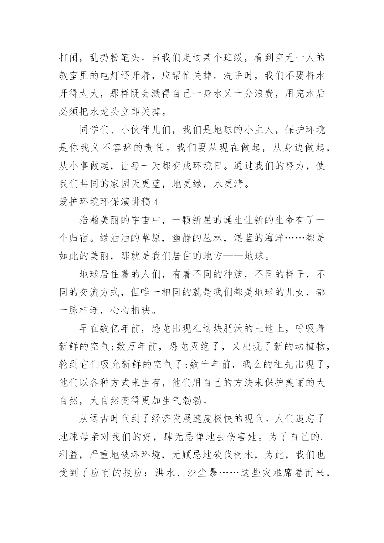 爱护环境环保演讲稿爱护环境环保演讲稿演讲稿是为了在会议或重要活动上表达自己意见、看法或汇报思想工作情况而事先准备好的文稿。在快速变化和不断变革的新时代,演讲稿的使用频率越来越高,来参考自己需要的演讲稿吧!下面是小编收集整理的爱护环境环保演讲稿,欢迎大家分享。爱护环境环保演讲稿1尊敬的各位老师与亲爱的同学们:大家早上好,我今天的环保演讲稿的主题是:《爱护生态环境,保卫绿色家园》众所周知,一个国家人民对自己所生存的土地、河流与天空的关心程度,在很大意义上可以反映该国的知识水平与生存觉悟。据世界资源报告,对世界50家选定城市的大气环境质量进行评比,世界上大气污染最严重的十大城市中,中国占了五个。中国是世界上水土流失最严重的国家之一,几十年间,水土流失面积冲153万平方公里增加到180多万平方公里,约占中国陆地面积的五分之一。中国土地沙漠化正在加剧,北京20xx年发生了12次沙尘暴,中国缺水也相当严重,是世界上12个缺水国之一,人均水资源不足世界人均水资源的四分之一,而且水源分布十分不匀,全国六百多个城市半数以上缺水,因为过量开采地下水,地下已经形成世界上最大的地下漏斗。与此同时,江河湖海水体资源污染日益加剧,近岸海水赤潮频繁。中国的珍稀动物保护也不容乐观,鄱阳湖的候鸟及可可西里的藏羚羊屡遭猎杀,每天有数万棵树木遭砍伐,物种灭绝日趋严重。……面对这严峻的形势,我们每一个中国人,都应该警醒,环境保护迫在眉睫,保护我们赖以生存的地球,营造绿色家园,应该成为我们的自觉行动。1979年,国务院正式决定3月12日为我国的植树节。植树节,为了绿色和环境所设定的节日。如今,仍然有很多爱护环境的人们保持着植树节植树的习惯。但是,也有许多人根本不知道植树节这个重要的节日到底在哪一天。这是不是对环境的一种不尊重?树木与人类生存息息相关,世界上已有50多个国家和地区规定了植树节。自然界中的人类、生物和气候、土壤、水等环境条件之间存在着错综复杂的相互关系,这种关系本来是保持着平衡的,一旦失去了生态平衡,便会产生种种不良后果,会发生狂风卷着飞沙侵蚀了良田沃土,暴雨卷着泥沙淤塞了千条江河;天气变得旱涝无常;人和动物失去了越来越多的生存空间。而森林是保持生态平衡的卫士。有了森林,地面就不怕风吹雨冲,水土就不易流失。大风遇到了防护林带,会被大大减弱;雨水沿着树干慢慢流到地上,被枯枝落叶、草根树皮所堵截,能渗透到地下而不会迅速流走。在少雨的季节里,这些储藏在地下的水,一部分汇成溪流,流出森林,滋养农田,一部分经过树根的吸收、树叶的'蒸腾,回到空中,又变成雨。森林让气候变得稳定正常。同时,森林又是制造新鲜空气的工厂,森林是绿色的水库,森林是人类生命的摇篮。因此,环境保护应该从我做起,从身边的环保小行动做起,自觉的维护我们的家园,同时要积极向身边的人宣传环保知识,让更多的人来加入到环保的行列,让我们的地球更洁净,让我们的生命更鲜活,更灿烂!爱护环境环保演讲稿2尊敬的领导、同志们:大家好!当前人类社会已经进入十分发达的工业文明时代了,人类在不断的进步,我们人类已经征服了地球,成为地球上的主宰,现在人类又开始征服太空,希望能够在太空中找到自己更好的归宿。殊不知,我们的地球已经被我们人类破坏的不能再破坏了,保护环境已经不是一时间的事情了,需要全世界人民的一起努力,我们的地球才会回到曾经的样子。其实,真的说不清是从哪一天开始,纯净辽阔的大海里产生了星球史上较早的生命精结——绿藻群带;其实,真的说不清是从哪一天开始,奔腾不止的黄河岸边出现了现代人铭记的祖先——蓝田人类;其实,真不说清是从哪一天开始,大地欣然地托起了普罗米修斯窃取的火种,从而宣告了文明初始而完整的诞生;其实,真的说不清是从哪一天开始,人类不仅征服了自然,而且开始学会向自然索取曾饱受天灾的赔偿——资源潜能。于是,人类的文明史上有了结实的木椅、精刻的木阁;而孕育出人类的原始丛林却在伤心地萎缩;于是,人类的文明史上有煤炭、石油、地热;而承接着人们疯狂攫取的大地却在悄悄地下沉、裂变、陷落;于是,人类文明史上有了林立的厂房、烟囱、化工车间;而那片曾经温柔的晴空,却正在被黑的、黄的、灰的污染杀手将臭氧层残忍地撕破。终于,人类的文明史上有了微观得可怕的氢能、中子能、原子能,而从此,文明之邦的土地上不知多少因亲离友散而痛苦凄厉的.哭声。假如,历史真的是一张翔实无疏的时间表,我只想查一查人类究竟是从什么时候起开始学会把作为星球上的较高智能生物的特权发挥得如此淋漓尽致,却轻而易举地忘记,自然一样会再次惩罚我们。因为英国人无规划地扩大工厂,排放废气;于是大自然便在1873年、1883年、1892年发生了三次伦敦毒雾事件侵吞一千八百人作为赔偿。因为日本人在足尾铜矿疯狂采挖,任排污水,于是大自然便让400平方公里的良田变为荒园以示惩罚。因