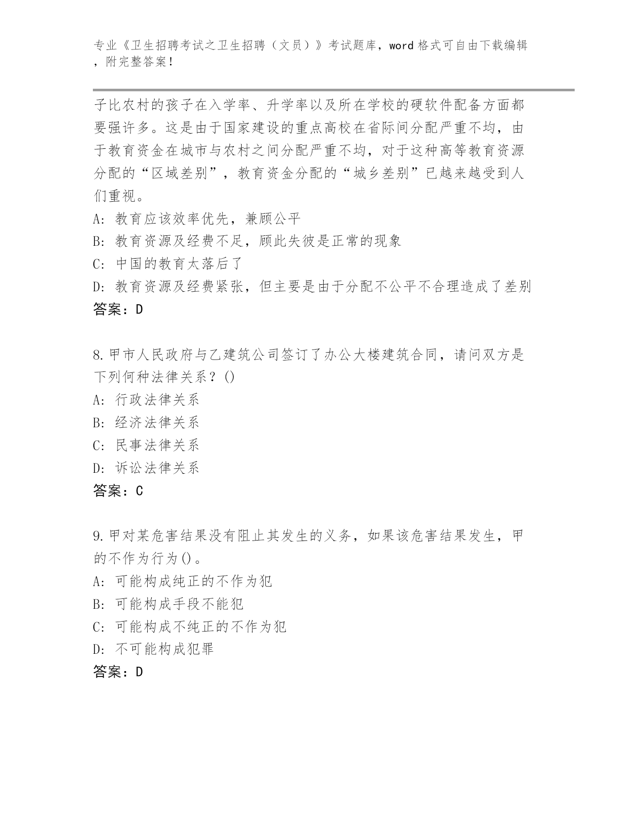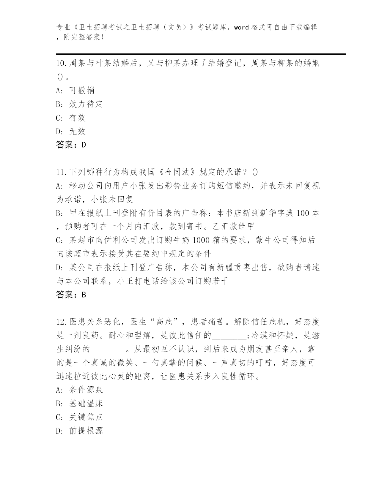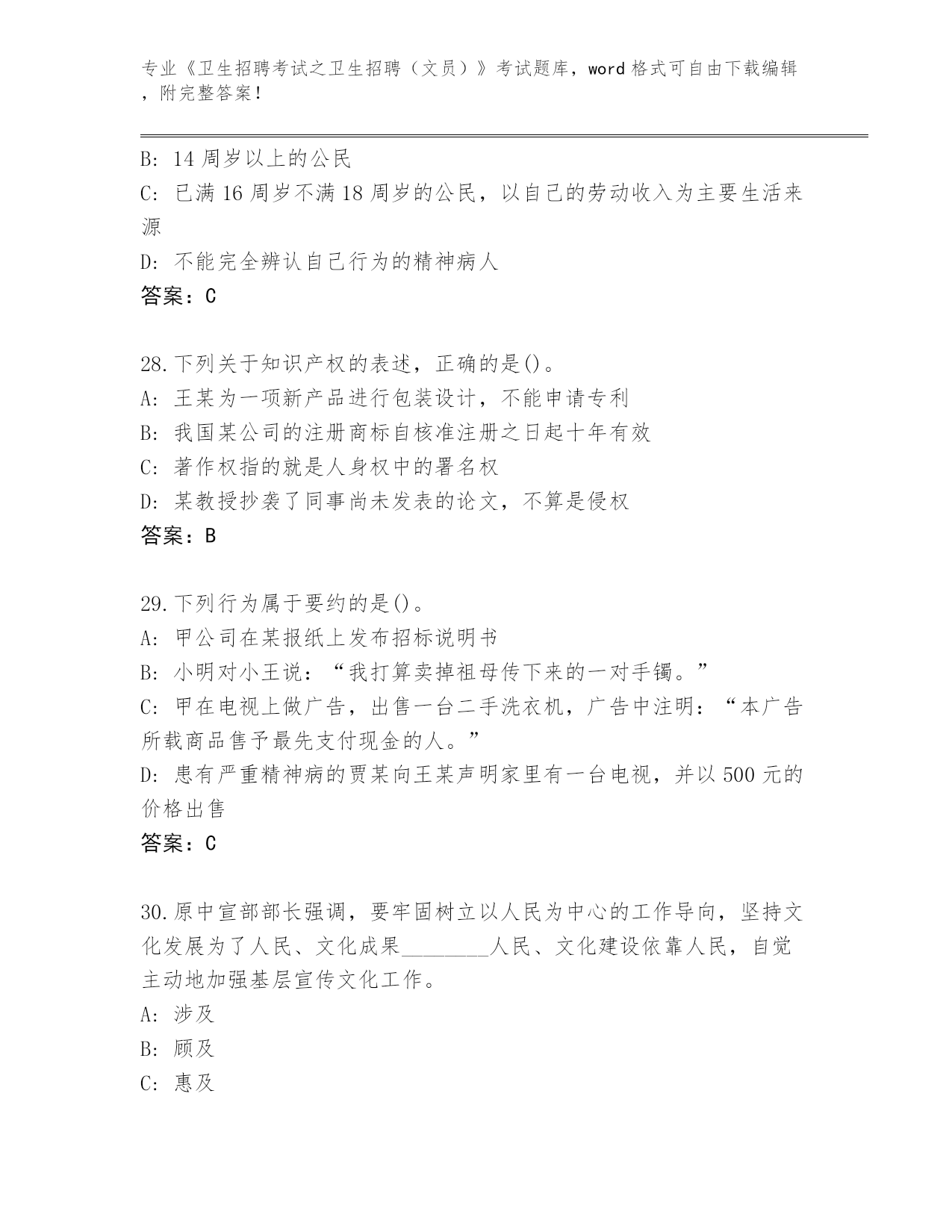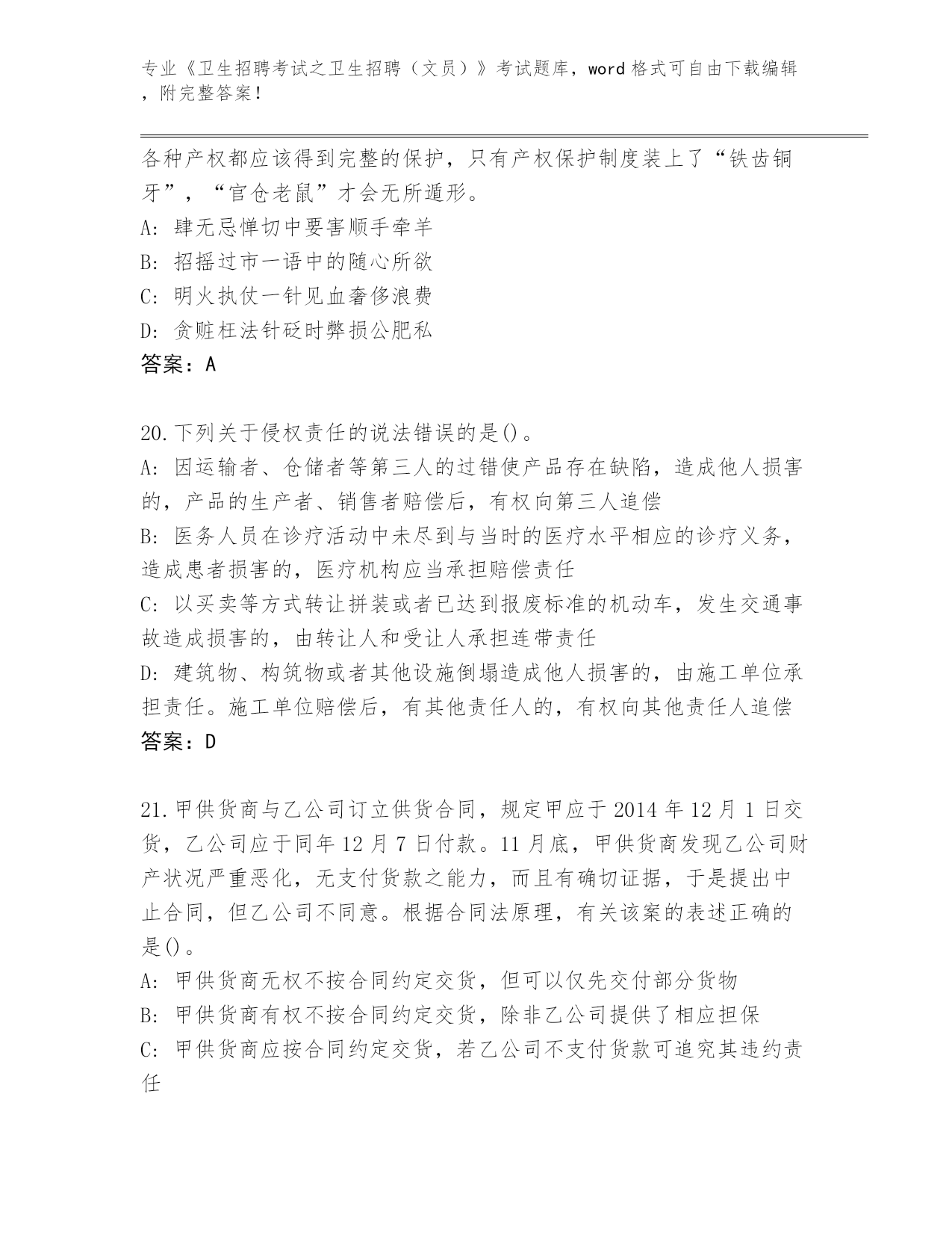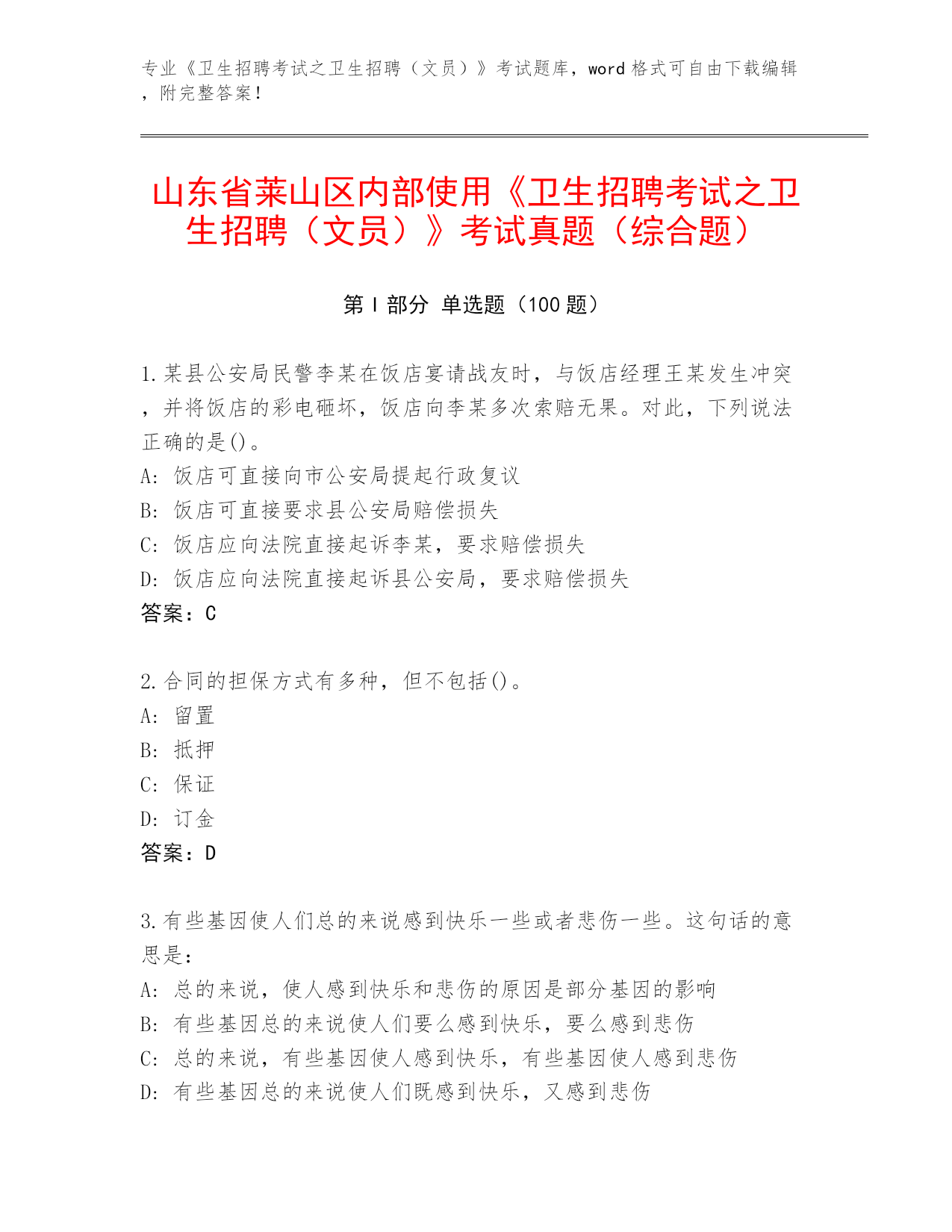 内部使用山东省槐荫区《卫生招聘考试之卫生招聘(文员)》考试必考200题内部题库及答案【历年真题】