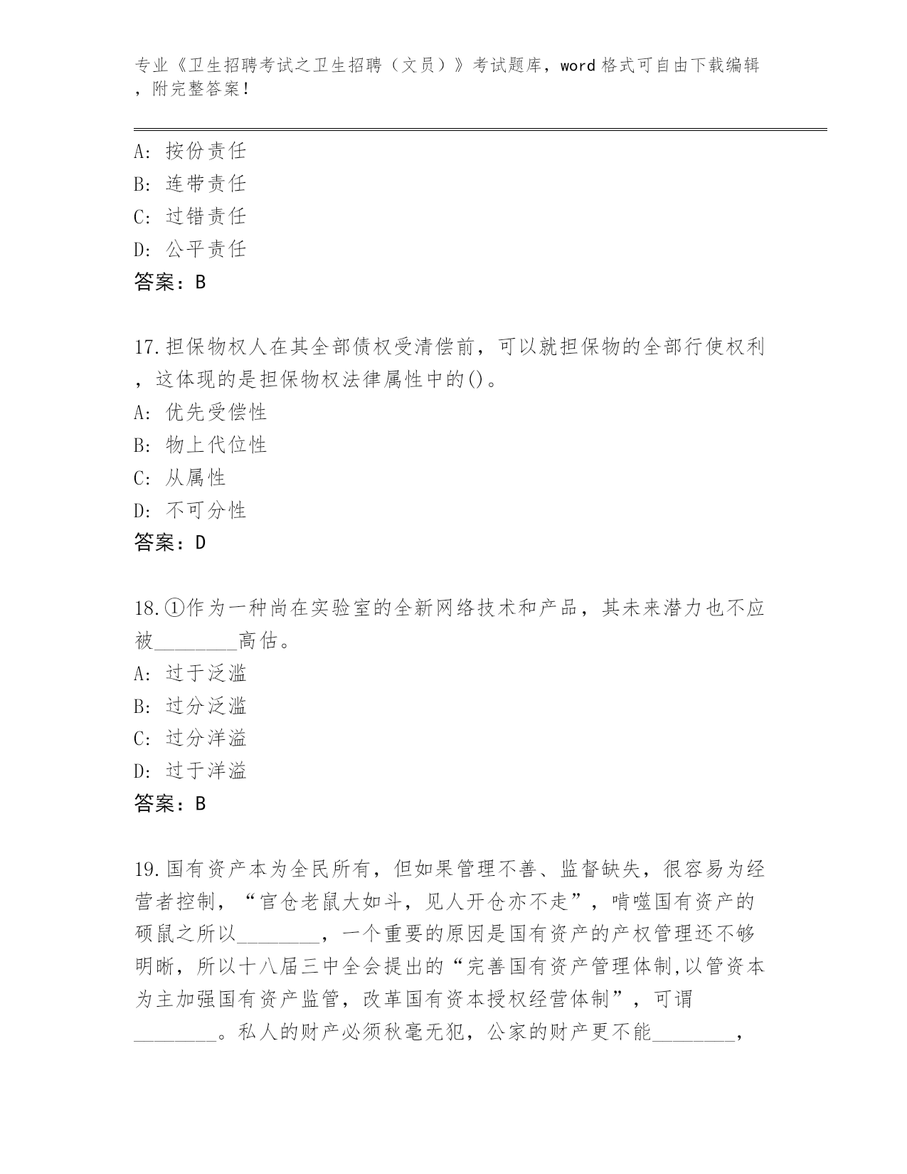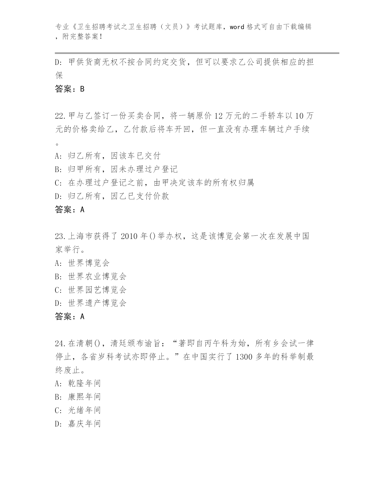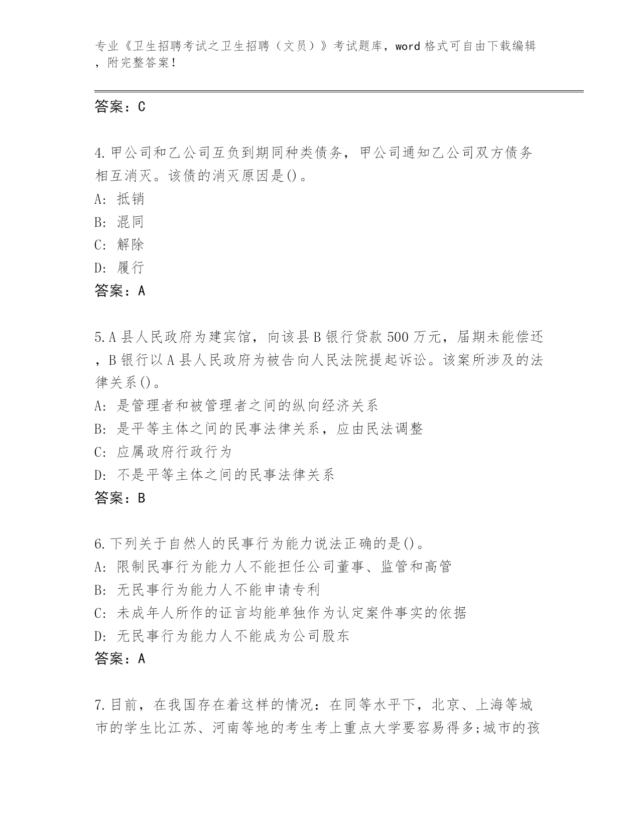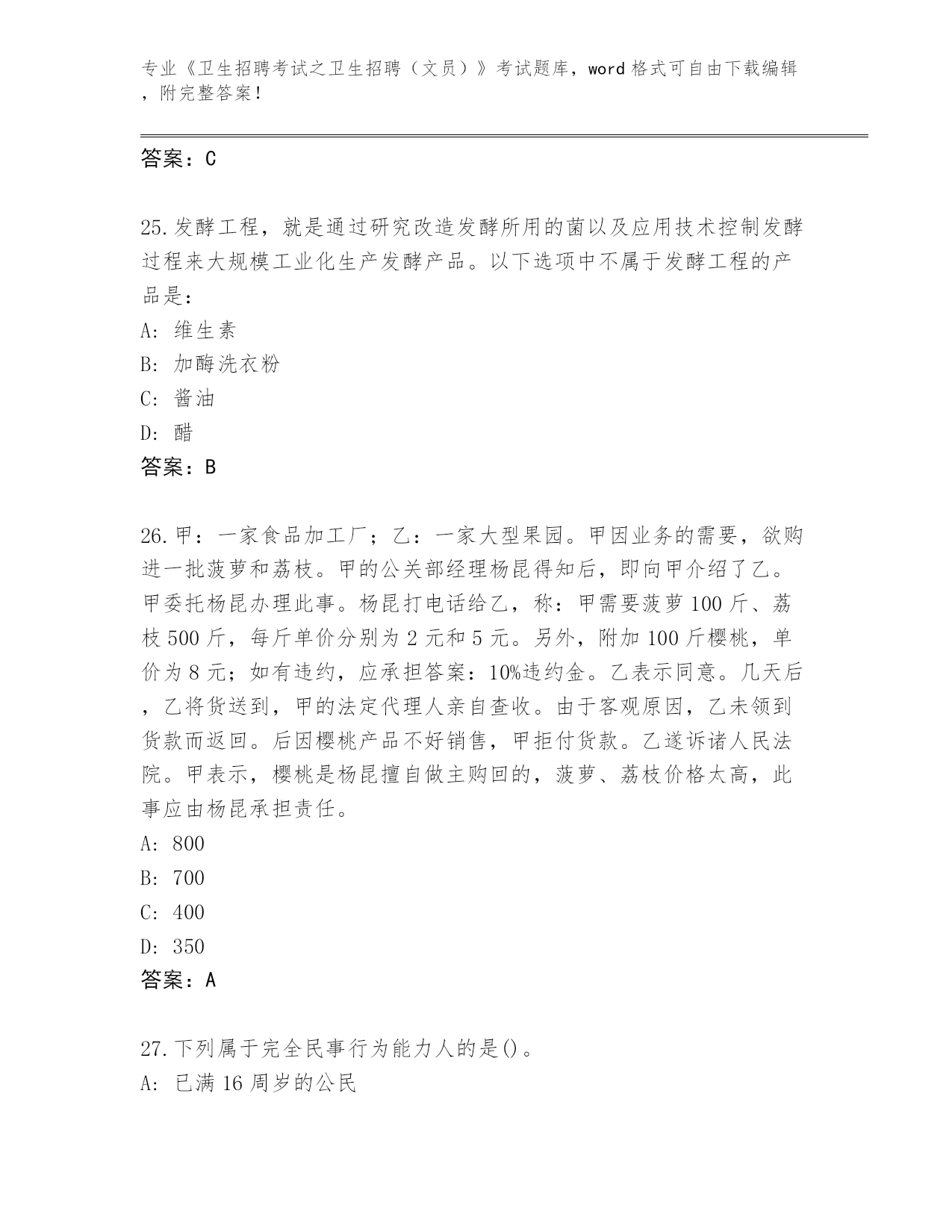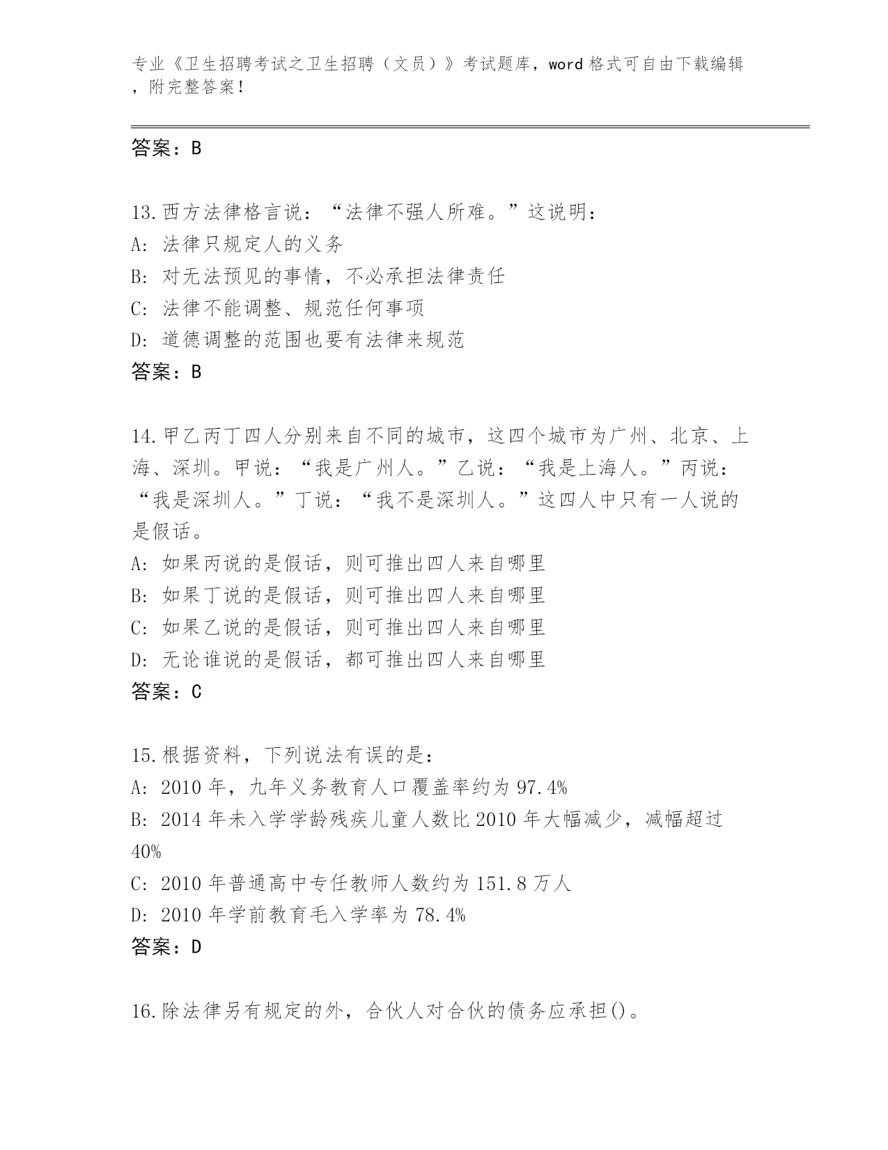 内部使用山东省槐荫区《卫生招聘考试之卫生招聘(文员)》考试必考200题内部题库及答案【历年真题】