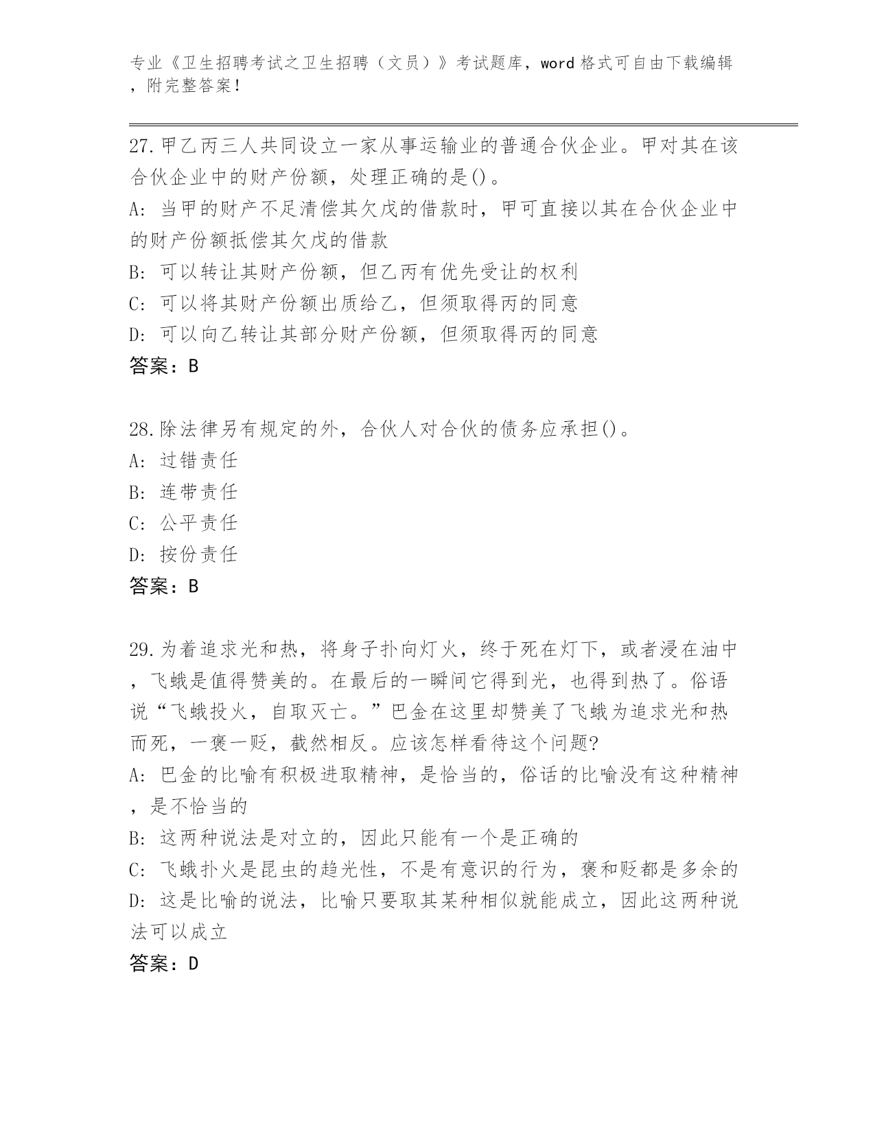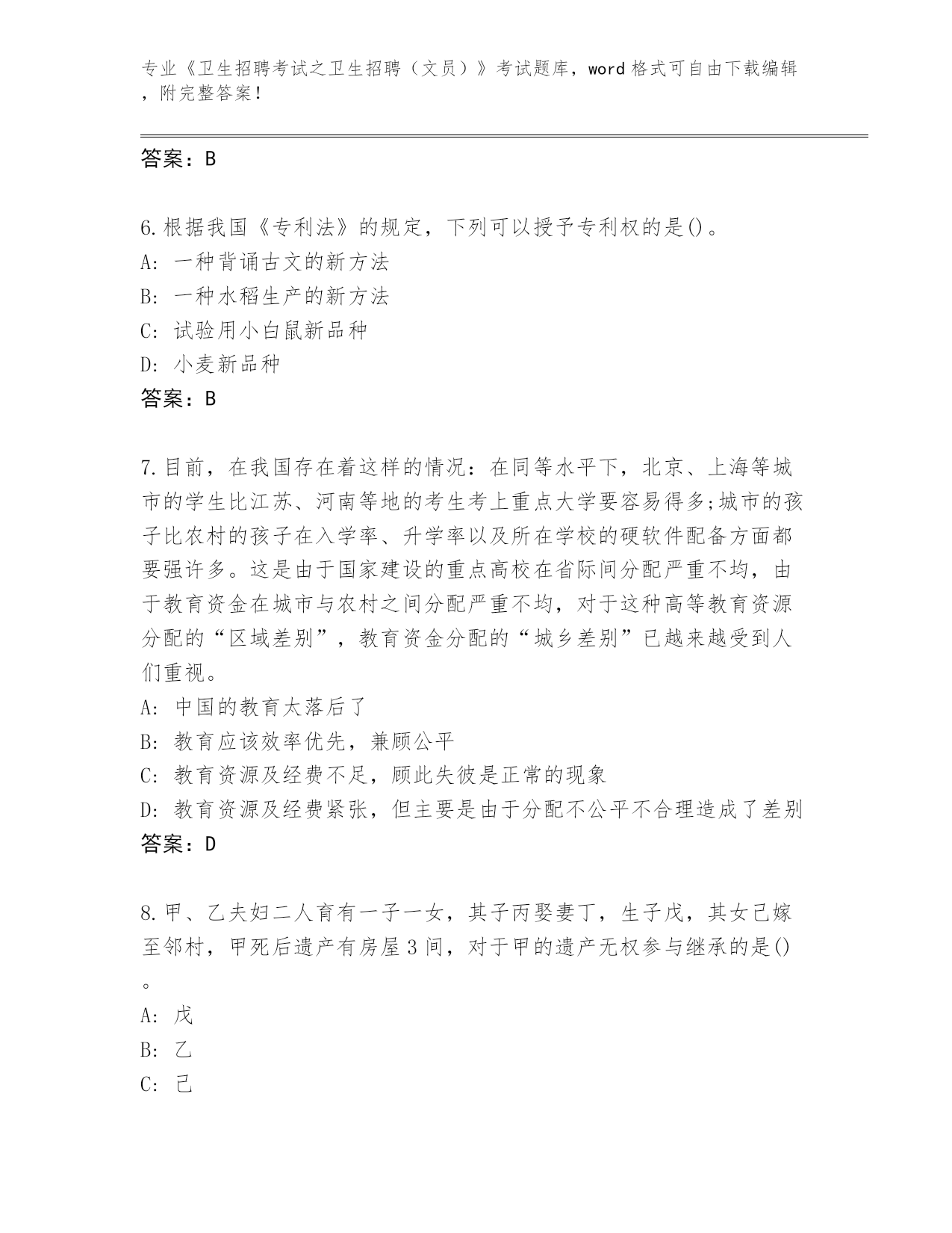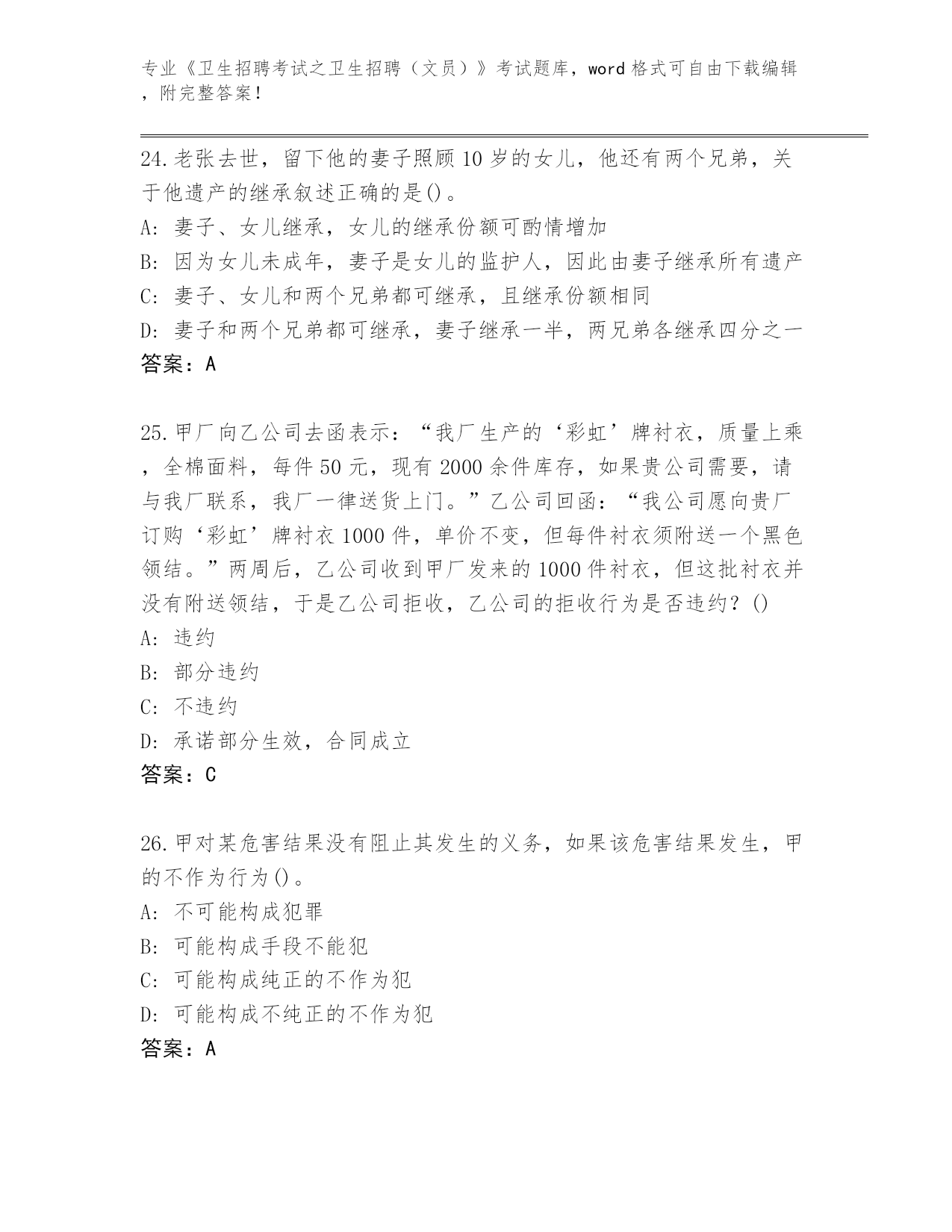 河北省2024年《卫生招聘考试之卫生招聘(文员)》考试大全附答案【黄金题型】