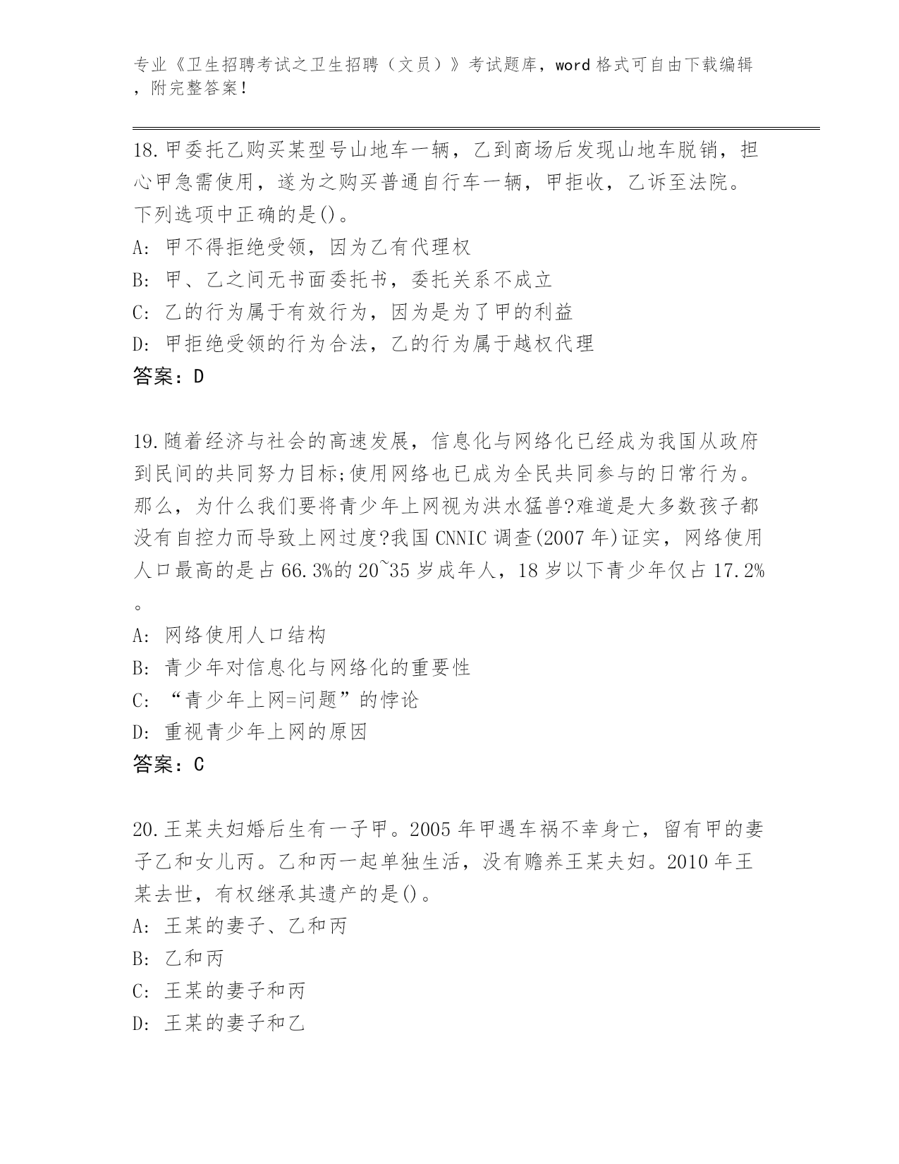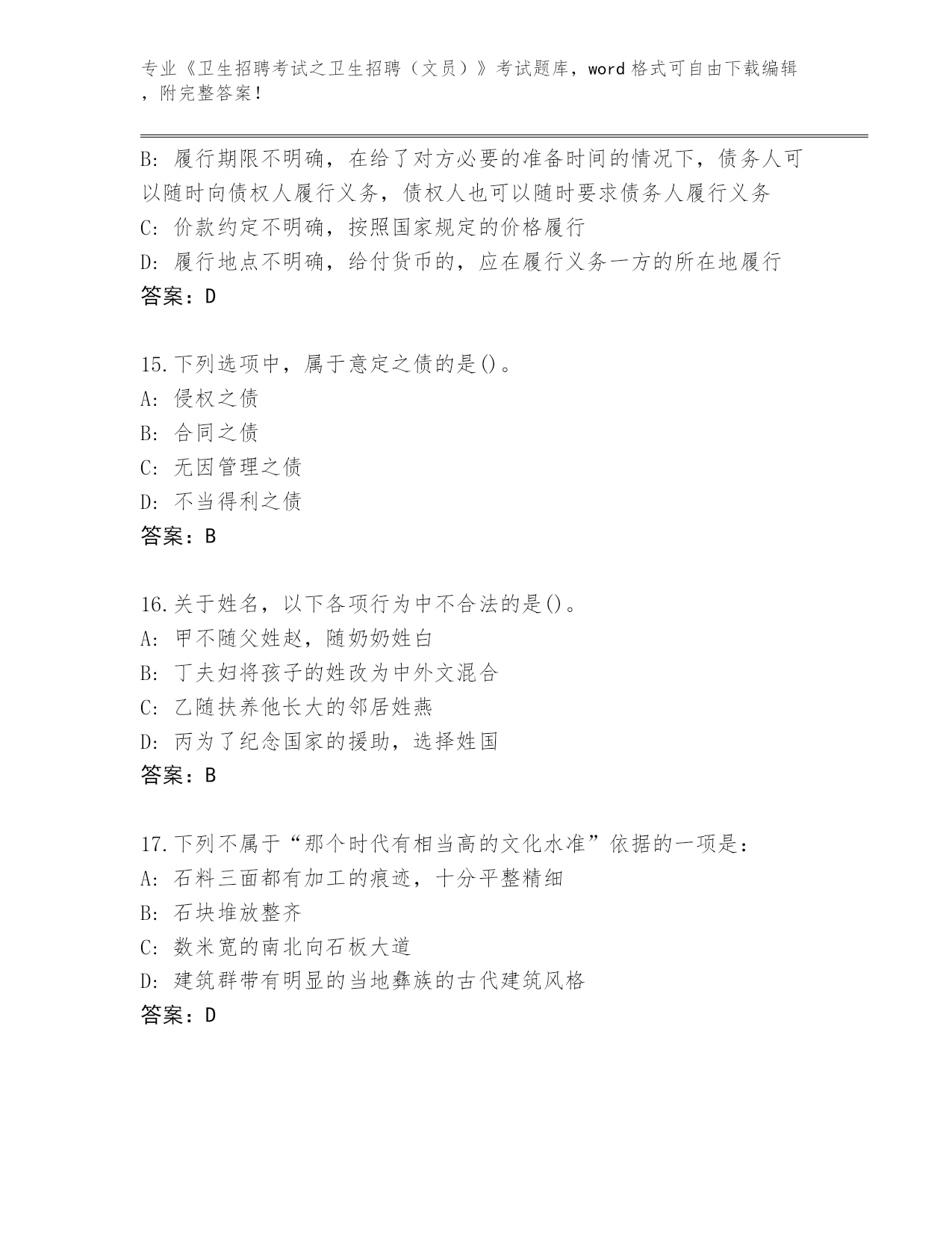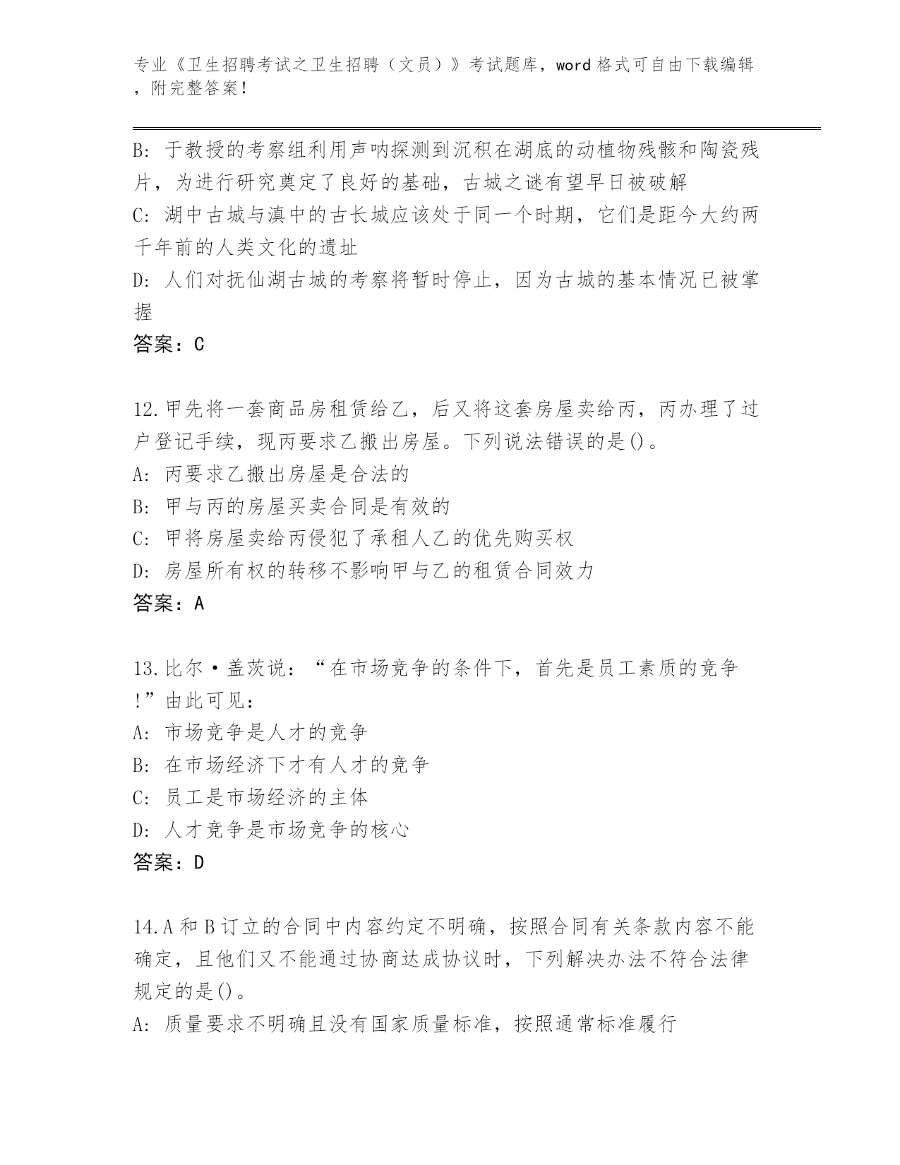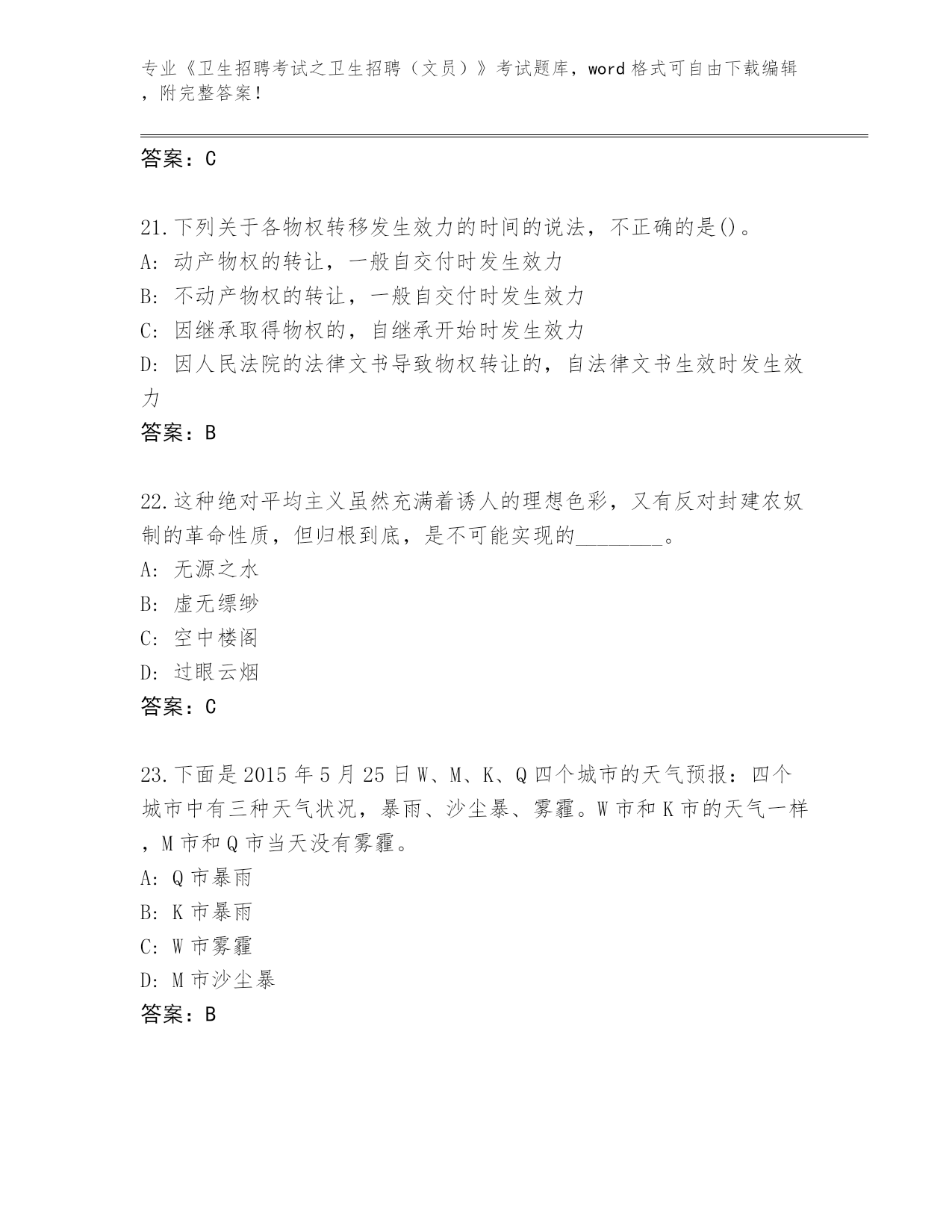 河北省2024年《卫生招聘考试之卫生招聘(文员)》考试大全附答案【黄金题型】