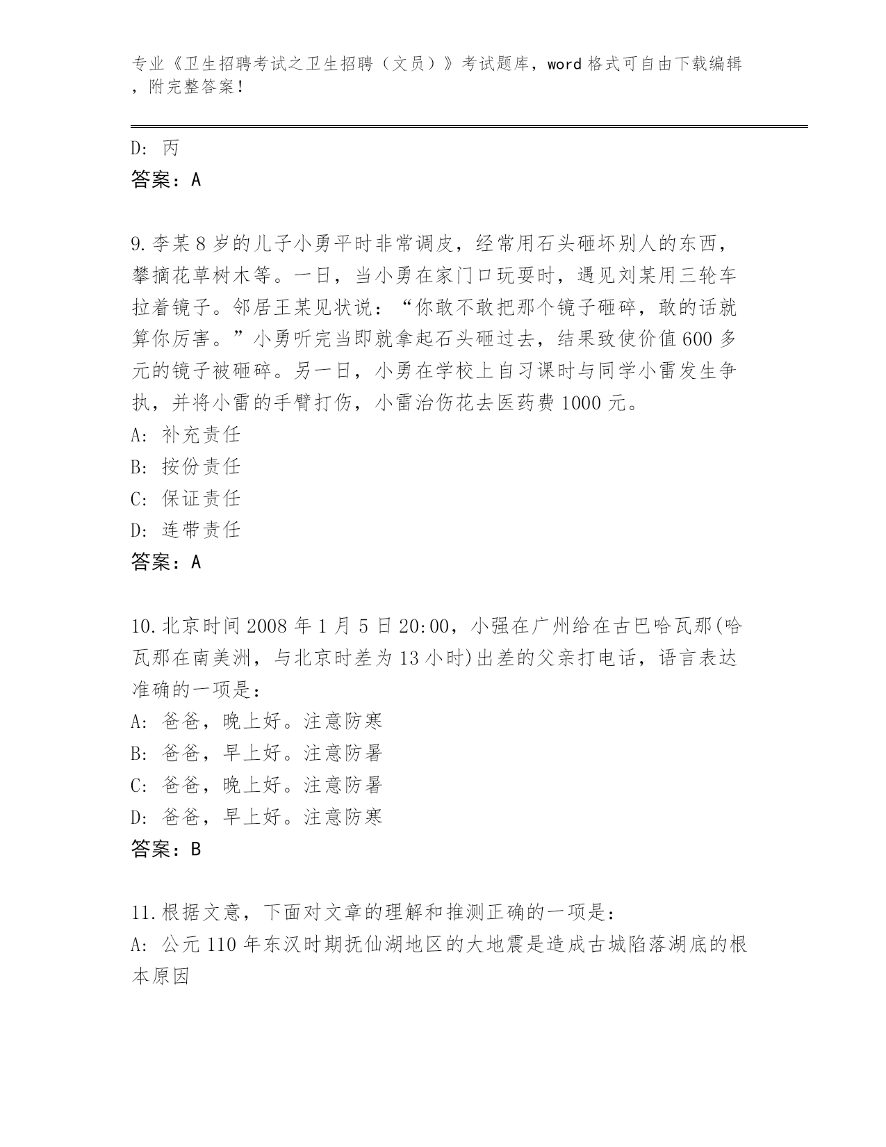 内部使用浙江省莲都区《卫生招聘考试之卫生招聘(文员)》考试内部题库及参考答案(黄金题型)