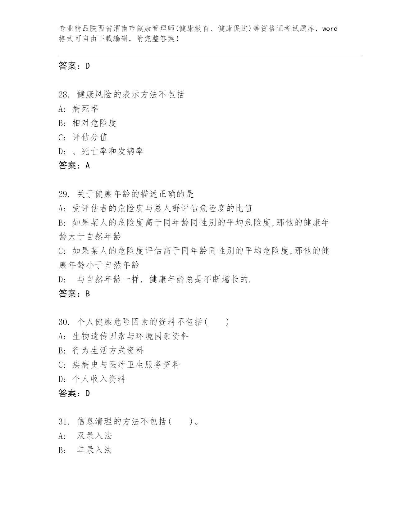 优选陕西省渭南市健康管理师(健康教育、健康促进)等资格证考试真题答案免费