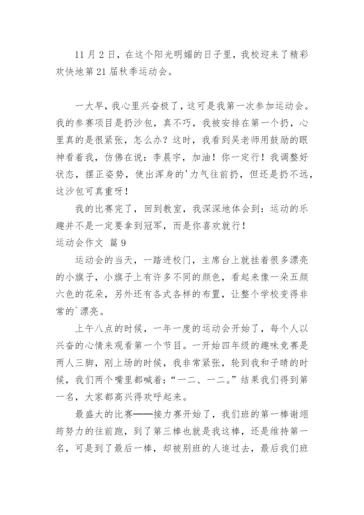 运动会作文运动会作文经典[9篇]在平凡的学习、工作、生活中,大家都经常看到作文的身影吧,写作文是培养人们的观察力、联想力、想象力、思考力和记忆力的重要手段。写起作文来就毫无头绪?以下是小编为大家整理的运动会作文9篇,仅供参考,欢迎大家阅读。运动会作文篇1风儿吹太阳高照。运动会如火如荼进行了!当当当!上课铃声响又亮,家长贵宾一大堆,欢欢喜喜来看小朋友表演,个个大呼小叫,“安可”声最美妙!运动会真的好热闹!欢天喜地办校庆,山珍海味要吃饱,才有力气追呀追,跳呀跳!追到冠军宝座,跳出健康和活力。三千米接力赛跑,跑呀跑,看谁可以像孙悟空一样,一飞冲天的`飞毛腿,平常训练不可少,体力像超级大马达,一路遥遥领先,叫大家跌破眼镜,赢得冠军笑哈哈!下午是欢天喜地的园游会,比赛没了,肚子饿了,贡丸、鱼丸、花枝丸……全部吃个饱。大腹便便连乌龟都比我还会跑。运动会真热闹,人山人海气氛好,健康自在好逍遥,培养运动家精神,败不馁,胜不骄。团结合作力量大,精彩万分的运动会用心想都会大笑,加油声还在我的耳边响彻云霄!运动会作文篇2“加油,加油.....”,一阵阵震耳欲聋助威声从操场上传来,原来是我校一年一度的田径运动会拉开帷幕了。看跑道上运动员英姿飒爽,如奔腾的骏马;跳高场上,龙腾虎跃,运动员似飞翔的雄鹰.....到处是精彩的比赛,到处是热烈的掌声。跳高场上,已经是里三层,外三层,就连一根针都插不进去。瞧我们班的'唐钰强左右移动,调整好角度,前后移步,测量步伐后,反反复复几次后,终于确定了理想的角度,他深吸一口气,迅速的助跑着,旋风般地冲向跳高架,快到横杆时,唐钰强腾空而起,像轻盈的蜂鸟轻松越过高高的横杆,他稳稳的落在垫子上,迅速转身看着微微颤动的横杆。“好,过去了!”同学们大声说道。赞扬声如同雨点般落在唐钰强身上。最让人注目的是男子四百米决赛。“呯”一声清脆的枪声,六名运动员像出膛的子弹,“嗖”的一声直射出去。刚开始的时候,六名运动是并驾齐驱,可是过了几分钟后,有“飞毛腿”之称的沙场“老将”黄旭东遥遥领先。排在第二的熊佳伟也不干示弱,奋力追赶。后边的几位运动员不甘落后,虽然个个都是汗流浃背,气喘如牛,但竭力追赶。最后一百米,黄旭东十分有信心,仿佛加足马力的方程式赛车,越跑越快。五米.....四米.....最后黄旭东用胸膛冲破了终点线,锁定了第一!同学们的欢呼声,祝贺声,响遍了校园的每个角落。运动会还在进行中.....运动会作文篇3“加油!加油!加油!”城西小学的操场上一片沸腾,呐喊声、加油声此起彼伏。你猜我们在干什么?呵呵!你猜对了,一年一度的运动会正紧张激烈地开着呢!我们比赛的第一个项目当然是踢毽子了。这可是我们学校的体育特色项目哦,从一年级开始,我们就每天练习呢。“台上一分钟,台下十年功”,检验成果的时刻到了,同学们个个摩拳擦掌,跃跃欲试的,就等着闪亮登场了。随着广播响起,我自信满满地走向我的位置,不慌不忙地等待着比赛的开始。只听陈老师一声令下,我就迅速地踢了起来。刚开始,我觉得自己稳操胜券。可是后来,踢着踢着,这只小毽子就不听话了。它总是跳到地上,就像一只调皮的小老鼠,窜来窜去的,我的脚都追不上它,急得我像个没头苍蝇——团团转。唉,我垂头丧气地败下阵来。第二个项目是“双人夹球”接力赛。比赛开始了,“洪汤”两人打头阵。只见他们两人背靠背,把球稳稳地夹住,一起迈步跳跃着往前,像两只齐头并进的小兔子跳跃着横向前进。紧接着,我和杨文星在对面顺利交接。虽然过程中有一处踉跄,差点乱了阵脚,但还是完美地完成了演绎。最厉害的是邓佳乐和田政,两人是场上最萌搭档,一高一矮,一胖一瘦,可是他们配合却很默契,富有节奏,而且速度很快。可惜的是,在中场的时候,我们班有几组掉球,速度慢了下来,导致我们输了。于是,我们班同学下定决心,接下来的接力赛一定要赢!紧张的.我心砰砰砰地直跳,真希望我能在场上大展身手啊。当然,排在第一位的肯定是杨文星啦!他可是我们班的“光之神”哦,速度可是一流的!果然,他把对手远远地甩在了后面。开始,我们班遥遥领先。不好,有人过棒,真是忙中出错,接下来连连失误。同学们焦急得拼命大喊,倒数第二棒的我更是焦急得跳起来。终于轮到我上场了,我立刻开启“冲刺模式”,任凭耳边的风呼啸而过,使出浑身解数冲向尹浩杰,稳稳当当地把棒递给了尹浩杰。身担重任的尹浩杰神情严肃,脚下生风,勇往直前。可是,最后,我耳边传来隔壁班的欢呼声——“耶”。我们输了!这真是我听到过的最难听的声音了。那时,其实我挺想哭的,因为,我们跑步练了这么久,比赛却输了。我心里仍有不甘,心情久久不能平复……运动会作文篇4幕式结束后,运动会的比赛正式开始了。比赛的项目多得数不清,有立跳远、赛跑、投实心球、踢键、跳绳……我参加了立定跳远。信心十足的我看到了四年级三班的李文思就想投降,但想到赢了就可以为班上挣点