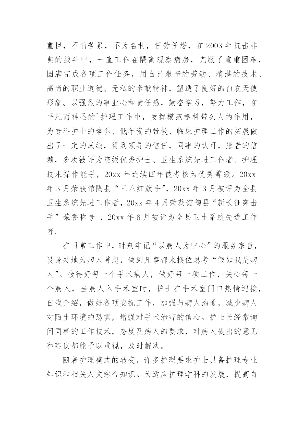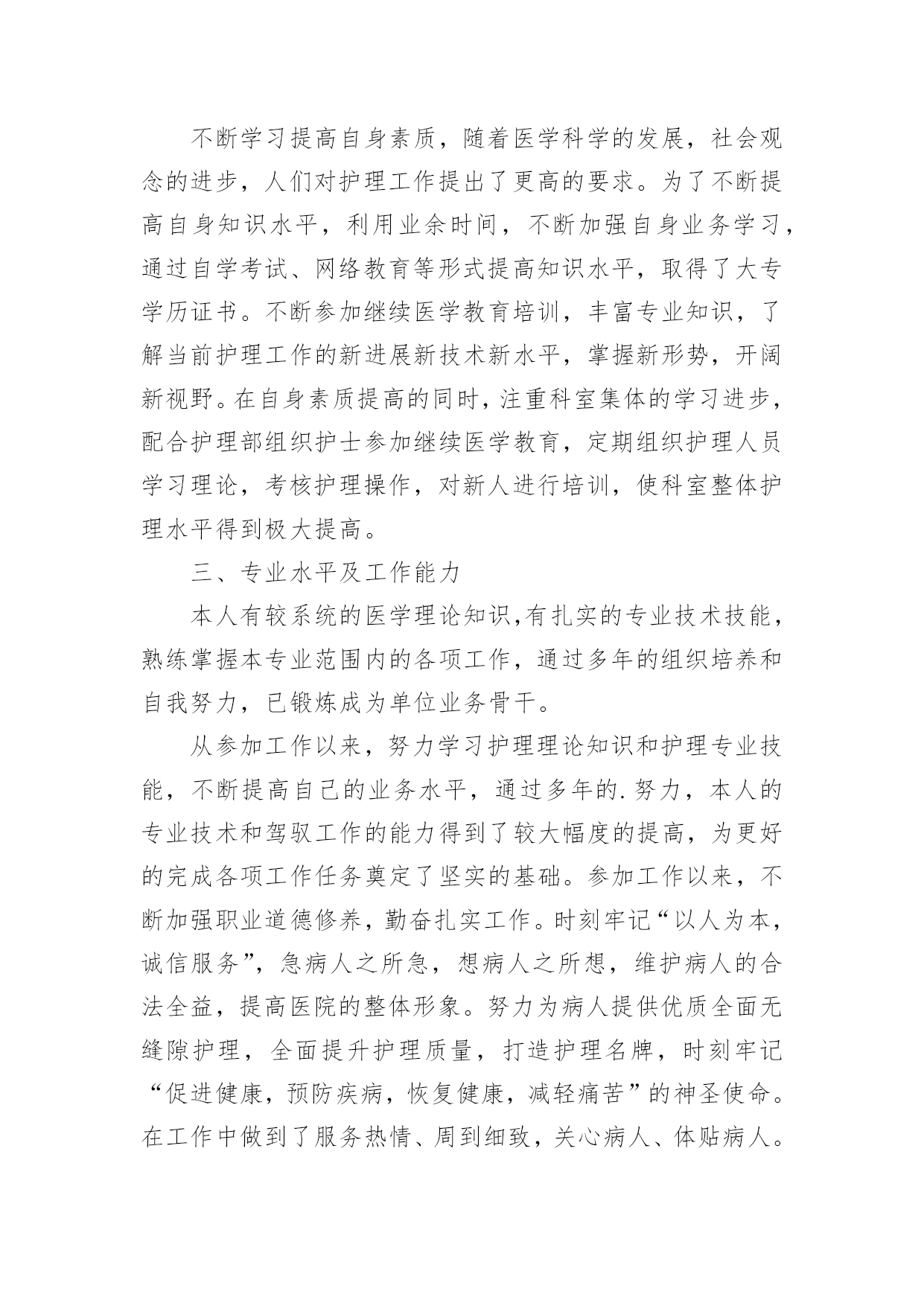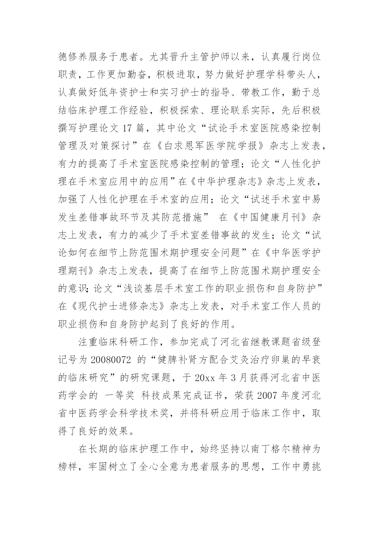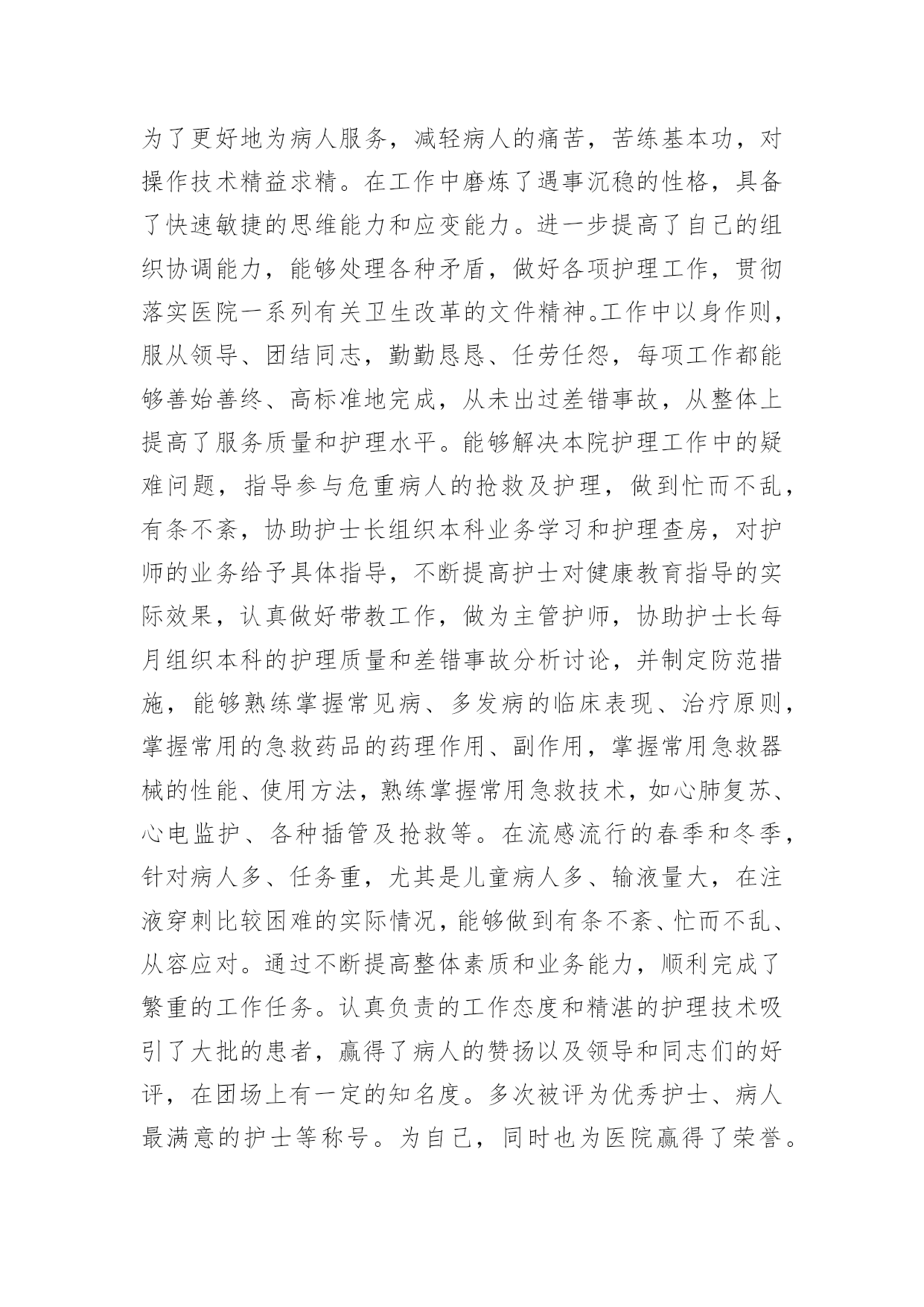 护理个人技术工作总结护理个人技术工作总结(通用5篇)时间是箭,去来迅疾,一段时间的工作已经告一段落,这段时间里,相信大家面临着许多挑战,也收获了许多成长,是时候仔细的写一份工作总结了。工作总结怎么写才能发挥它最大的作用呢?以下是小编收集整理的护理个人技术工作总结(通用5篇),希望能够帮助到大家。护理个人技术工作总结1本人1990年7月毕业于河北医学院邯郸分院护理专业,一直从事临床护理及管理工作至今,曾先后在外科和手术室做临床专业护士,为护理业务技术骨干,现在担任馆陶县人民医院手术室护士长。20xx年通过全国中级职称资格考试,20xx年3月晋升主管护师。20xx年6月获自学专科毕业证书,20xx年12月获自学本科毕业证书。现将本人任职以来工作情况总结如下:从事护理工作20年以来,热爱祖国,拥护共产党的领导,遵守国家法律法规,始终坚持党的路线、方针、政策,认真学习马列主义、毛泽东思想和邓小平理论以及“三个代表”重要思想,坚持以科学发展观为指导,不断提高自己的政治理论水平,积极参加各项政治活动,具有良好的职业道德和敬业精神。热爱护理专业,忠诚护理事业,勤于钻研护理业务,熟练掌握外科专科和手术室护理技术及各项护理技能,护理业务技术水平领先,业务技术年度多次考核优秀。坚持爱岗敬业,崇尚无私奉献,以良好的职业素质和道德修养服务于患者。尤其晋升主管护师以来,认真履行岗位职责,工作更加勤奋,积极进取,努力做好护理学科带头人,认真做好低年资护士和实习护士的指导、带教工作,勤于总结临床护理工作经验,积极探索、理论联系实际,先后积极撰写护理论文17篇,其中论文“试论手术室医院感染控制管理及对策探讨”在《白求恩军医学院学报》杂志上发表,有力的提高了手术室医院感染控制的管理;论文“人性化护理在手术室应用中的应用”在《中华护理杂志》杂志上发表,加强了人性化护理在手术室的应用;论文“试述手术室中易发生差错事故环节及其防范措施”在《中国健康月刊》杂志上发表,有力的减少了手术室差错事故的发生;论文“试论如何在细节上防范围术期护理安全问题”在《中华医学护理期刊》杂志上发表,提高了在细节上防范围术期护理安全的意识;论文“浅谈基层手术室工作的职业损伤和自身防护”在《现代护士进修杂志》杂志上发表,对手术室工作人员的职业损伤和自身防护起到了良好的作用。注重临床科研工作,参加完成了河北省继教课题省级登记号为20080072的“健脾补肾方配合艾灸治疗卵巢的早衰的临床研究”的研究课题,于20xx年3月获得河北省中医药学会的一等奖科技成果完成证书,荣获2007年度河北省中医药学会科学技术奖,并将科研应用于临床工作中,取得了良好的效果。在长期的临床护理工作中,始终坚持以南丁格尔精神为榜样,牢固树立了全心全意为患者服务的思想,工作中勇挑重担,不怕苦累,不为名利,任劳任怨,在2003年抗击非典的战斗中,一直工作在隔离观察病房,克服了重重困难,圆满完成各项工作任务,用自己艰辛的劳动、精湛的技术、高尚的职业道德、无私的奉献精神,塑造了良好的白衣天使形象。以强烈的事业心和责任感,勤奋学习,努力工作,在平凡而神圣的`护理工作中,发挥模范学科带头人的作用,为专科护士的培养、低年资的带教、临床护理工作的拓展做出了一定的成绩,得到领导的信任,同事的认可,患者的信赖,多次被评为院级优秀护士、卫生系统先进工作者、护理技术操作能手,20xx年连续四年被考核为优秀等级。20xx年3月荣获馆陶县“三八红旗手”,20xx年3月被评为全县卫生系统先进工作者,20xx年4月荣获馆陶县“新长征突击手”荣誉称号,20xx年6月被评为全县卫生系统先进工作者。在日常工作中,时刻牢记“以病人为中心”的服务宗旨,设身处地为病人着想,做到凡事都来换位思考“假如我是病人”。接待好每一个手术病人,做好每一项工作,关心每一个病人,当病人入手术室时,护士在手术室门口热情迎接,自我介绍,做好各项安抚工作,加强与病人沟通,减少病人对陌生环境的恐惧,增强对手术治疗的信心。护士长经常询问同事的工作技术,态度及病人的要求,对病人提出的意见和建议都能予以重视,及时解决。随着护理模式的转变,许多护理要求护士具备护理专业知识和相关人文综合知识。为适应护理学科的发展,提高自己的专业学术水平,在繁忙的工作之余,积极参加专科、本科自学考试,并顺利通过了全部课程考试。熟练掌握了计算机基本知识和技能操作,把学到的先进护理理论与临床相结合,并在护理工作中实践,充分发挥了学科带头人的作用。积极参加业务培训和继续教育,在业务知识上不断充实自己,20xx年5月参加了河北省组织的河北省手术室护士长管理培训班学习活动,取得了河北省手术室护士长管理培训证书。经常性参加创新能力培训,获得了河北省创新能力培训考核办公室的合格证书。总上所述,本人从政治表现、任职年限、业务技术