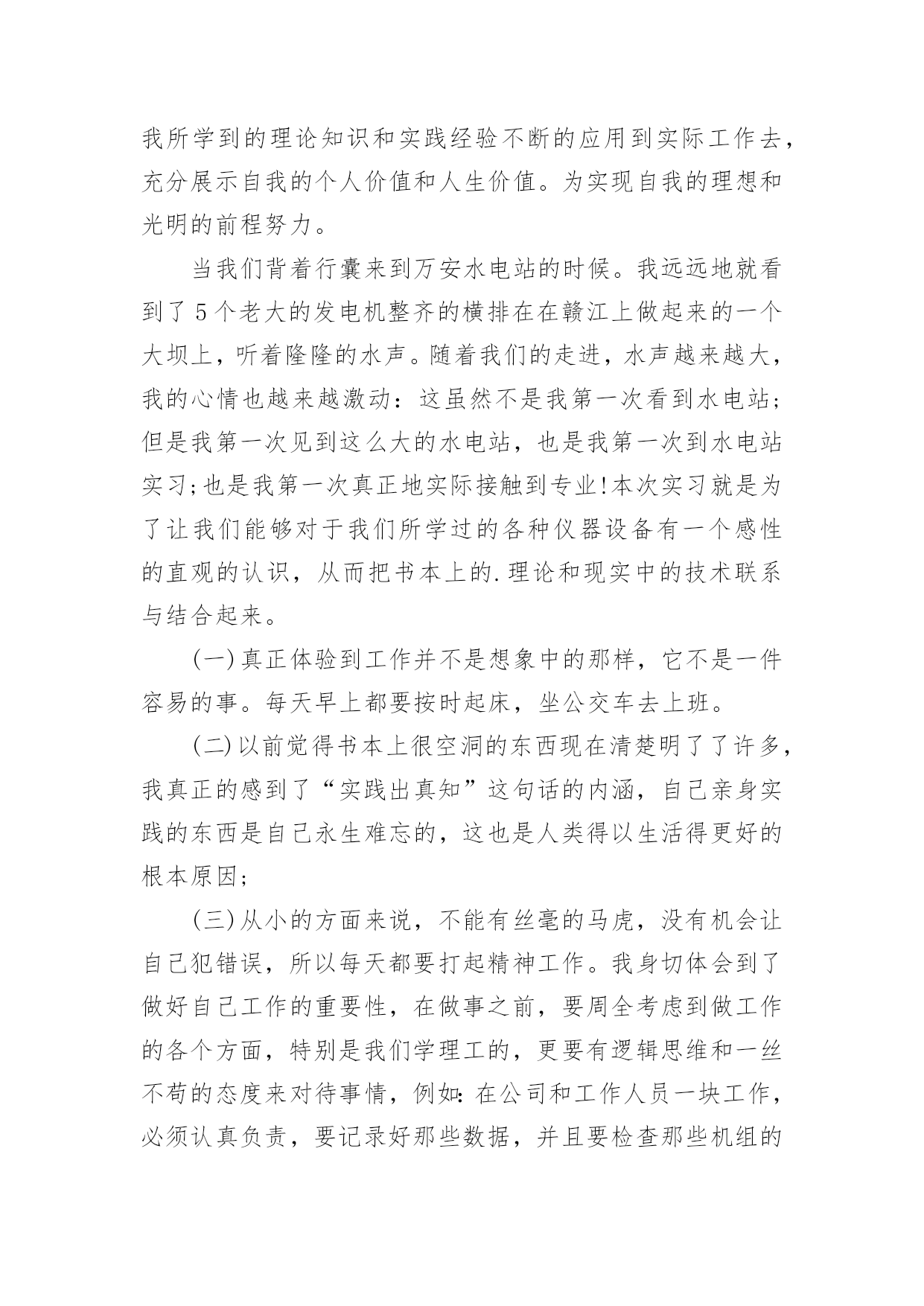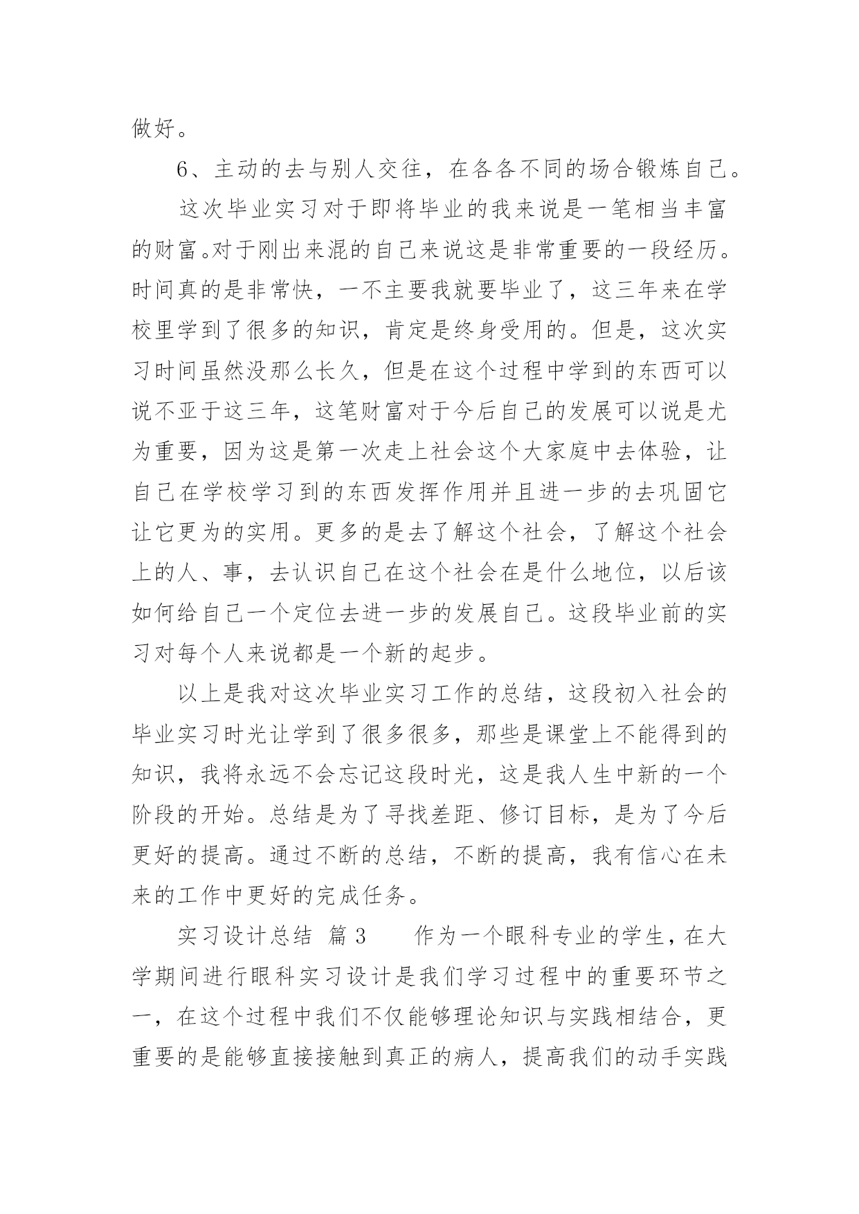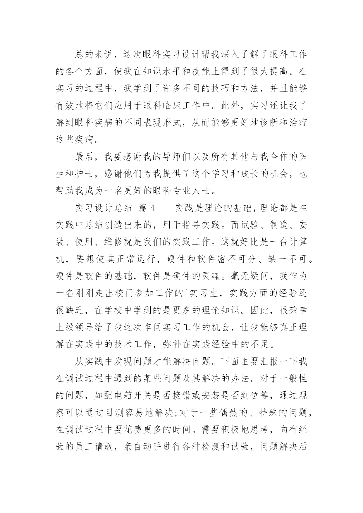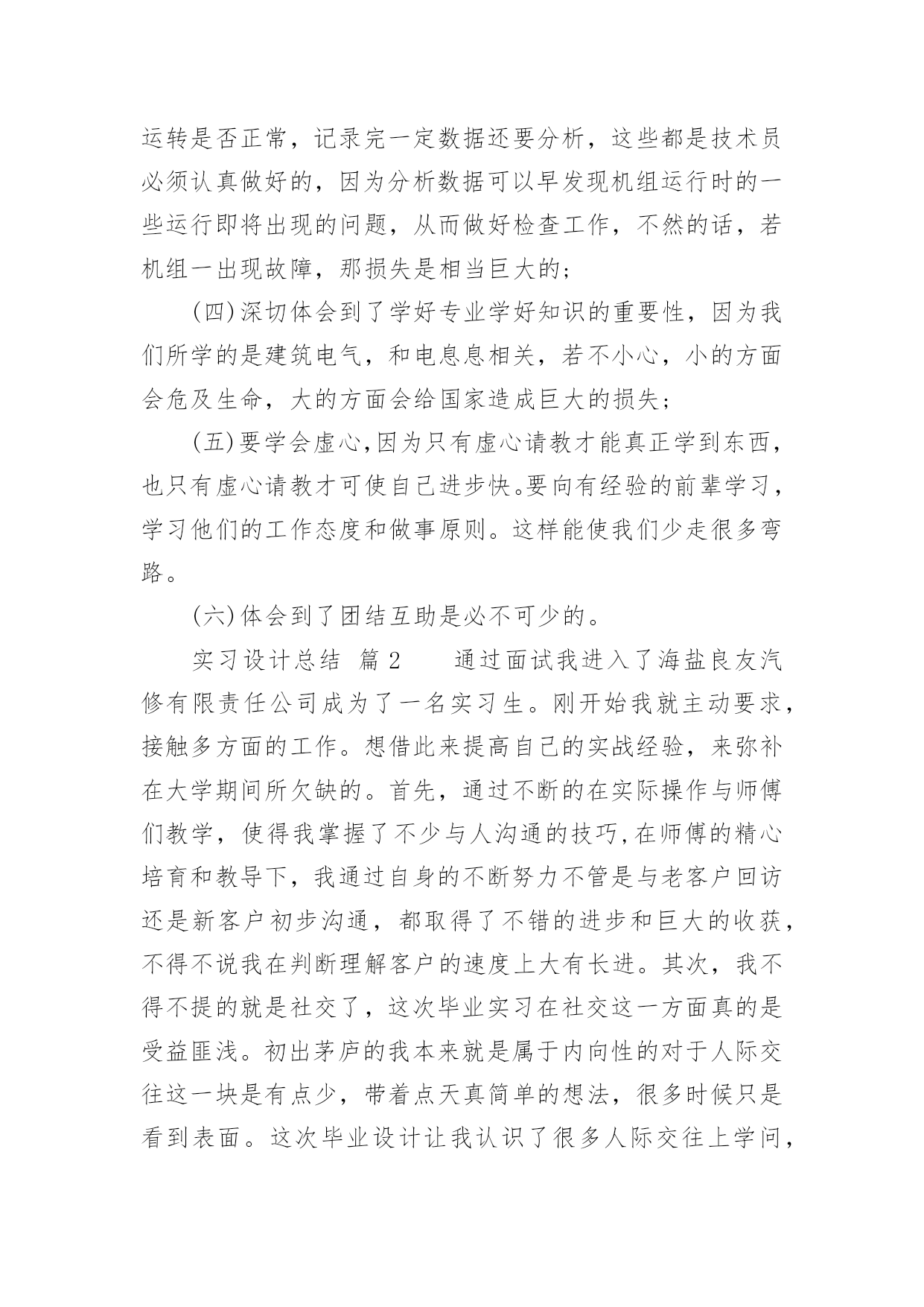 实习设计总结实习设计总结总结是对过去一定时期的工作、学习或思想情况进行回顾、分析,并做出客观评价的书面材料,它可以促使我们思考,因此好好准备一份总结吧。总结怎么写才是正确的呢?下面是小编帮大家整理的实习设计总结,欢迎大家借鉴与参考,希望对大家有所帮助。实习设计总结篇1通过这次实习,在自己热爱的专业知识方面我感觉有了一定的收获。实习对我们今后在工作及业务上能力的提高起到了促进的作用,增强了我们今后的在工作上的竞争力,为我们能在以后建筑行业激烈竞争下立足增添了一块基石。实习单位的工程师也给了我很多机会参观他们的设计,使我懂得了很多以前不会解决的问题和将来从事建筑电气设计工作所要面对的问题。这次实习丰富了我在这方面的知识,使我向更深的层次迈进,对我在今后的社会当中立足有一定的促进作用,但我也认识到,要想做好这方面的工作单靠这一年的工作实习是远远不够的,还需要我在平时的学习和在以后的工作中一点一点的积累,不断丰富自己的经验才行。我面前的路还是很漫长的,需要不断的努力和奋斗才能真正地走好。我相信通过这一年时间的工作实习,在工作的过程中所获得的实践经验对我终身受益,在我毕业后的实际工作中将不断的得到验证。在今后,我会不断的理解和体会实习中所学到的知识,在未来的工作中我将把我所学到的理论知识和实践经验不断的应用到实际工作去,充分展示自我的个人价值和人生价值。为实现自我的理想和光明的前程努力。当我们背着行囊来到万安水电站的时候。我远远地就看到了5个老大的发电机整齐的横排在在赣江上做起来的一个大坝上,听着隆隆的水声。随着我们的走进,水声越来越大,我的心情也越来越激动:这虽然不是我第一次看到水电站;但是我第一次见到这么大的水电站,也是我第一次到水电站实习;也是我第一次真正地实际接触到专业!本次实习就是为了让我们能够对于我们所学过的各种仪器设备有一个感性的直观的认识,从而把书本上的.理论和现实中的技术联系与结合起来。(一)真正体验到工作并不是想象中的那样,它不是一件容易的事。每天早上都要按时起床,坐公交车去上班。(二)以前觉得书本上很空洞的东西现在清楚明了了许多,我真正的感到了“实践出真知”这句话的内涵,自己亲身实践的东西是自己永生难忘的,这也是人类得以生活得更好的根本原因;(三)从小的方面来说,不能有丝毫的马虎,没有机会让自己犯错误,所以每天都要打起精神工作。我身切体会到了做好自己工作的重要性,在做事之前,要周全考虑到做工作的各个方面,特别是我们学理工的,更要有逻辑思维和一丝不苟的态度来对待事情,例如:在公司和工作人员一块工作,必须认真负责,要记录好那些数据,并且要检查那些机组的运转是否正常,记录完一定数据还要分析,这些都是技术员必须认真做好的,因为分析数据可以早发现机组运行时的一些运行即将出现的问题,从而做好检查工作,不然的话,若机组一出现故障,那损失是相当巨大的;(四)深切体会到了学好专业学好知识的重要性,因为我们所学的是建筑电气,和电息息相关,若不小心,小的方面会危及生命,大的方面会给国家造成巨大的损失;(五)要学会虚心,因为只有虚心请教才能真正学到东西,也只有虚心请教才可使自己进步快。要向有经验的前辈学习,学习他们的工作态度和做事原则。这样能使我们少走很多弯路。(六)体会到了团结互助是必不可少的。实习设计总结篇2通过面试我进入了海盐良友汽修有限责任公司成为了一名实习生。刚开始我就主动要求,接触多方面的工作。想借此来提高自己的实战经验,来弥补在大学期间所欠缺的。首先,通过不断的在实际操作与师傅们教学,使得我掌握了不少与人沟通的技巧,在师傅的精心培育和教导下,我通过自身的不断努力不管是与老客户回访还是新客户初步沟通,都取得了不错的进步和巨大的收获,不得不说我在判断理解客户的速度上大有长进。其次,我不得不提的就是社交了,这次毕业实习在社交这一方面真的是受益匪浅。初出茅庐的我本来就是属于内向性的对于人际交往这一块是有点少,带着点天真简单的想法,很多时候只是看到表面。这次毕业设计让我认识了很多人际交往上学问,学到很多为人处事。总结对我们来说其实非常重要,但很多时候我们都没有主要到。时不时的对自己最近的情况进行总结可以让你认识到这段时间自己在做些什么,那些地方做的好需要去保持的,哪些地方做的不好需要去改进的,自己又从这段时间里获得了什么。如果能有这个习惯那么你会不断的进步。我在这段毕业实习的时间中可以总结以下几点:一、实习目的重点锻炼了与他人沟通的能力,了解与陌生人的语言沟通,为日后与他人良好的沟通做下铺垫。实习期间,我通过电话跟各种各样的客户进行了沟通讲述,使我与人沟通的能力又长进了一大步。其实在我个人看来是这次实习首先学到的也是在以后生活中非常重要的就是为人处事,怎么去跟身边的人家人朋友还有同事的等等人去交往,这点我感触很深。其实社会和学校还