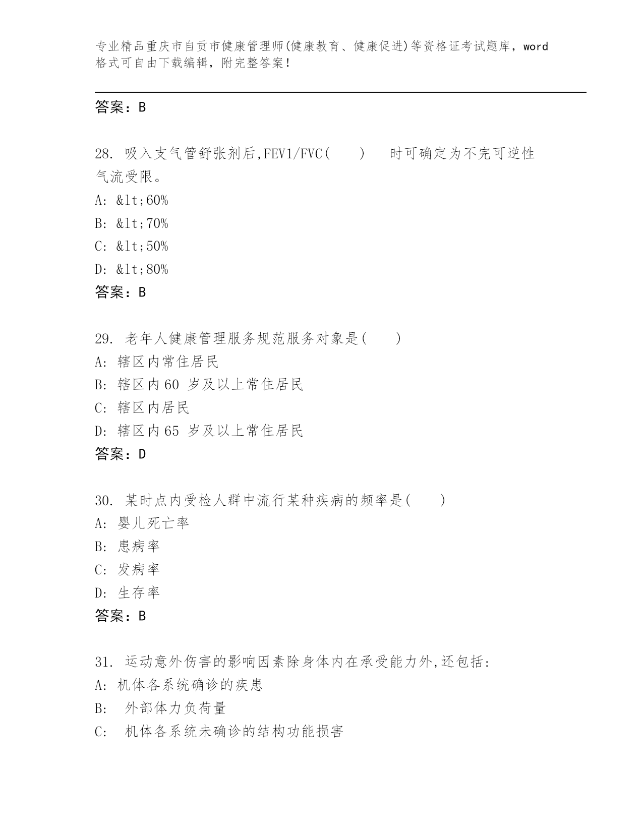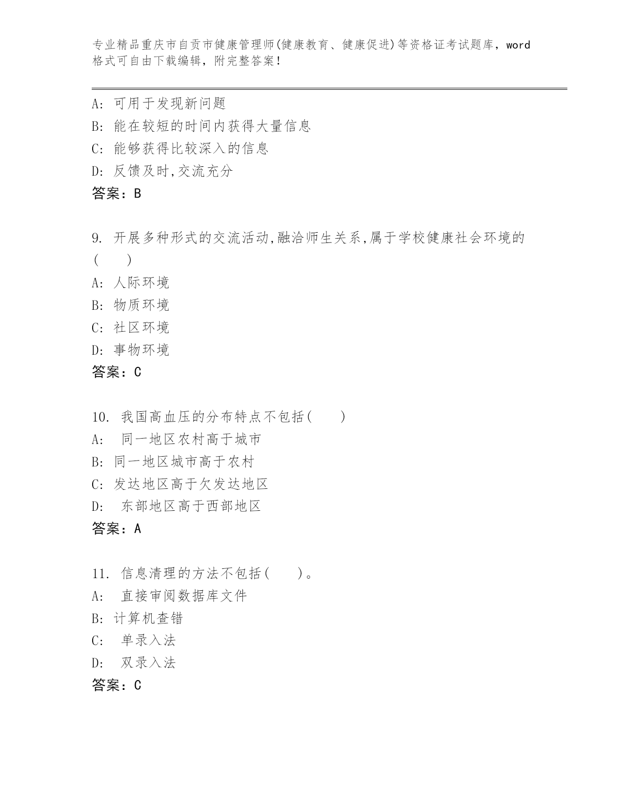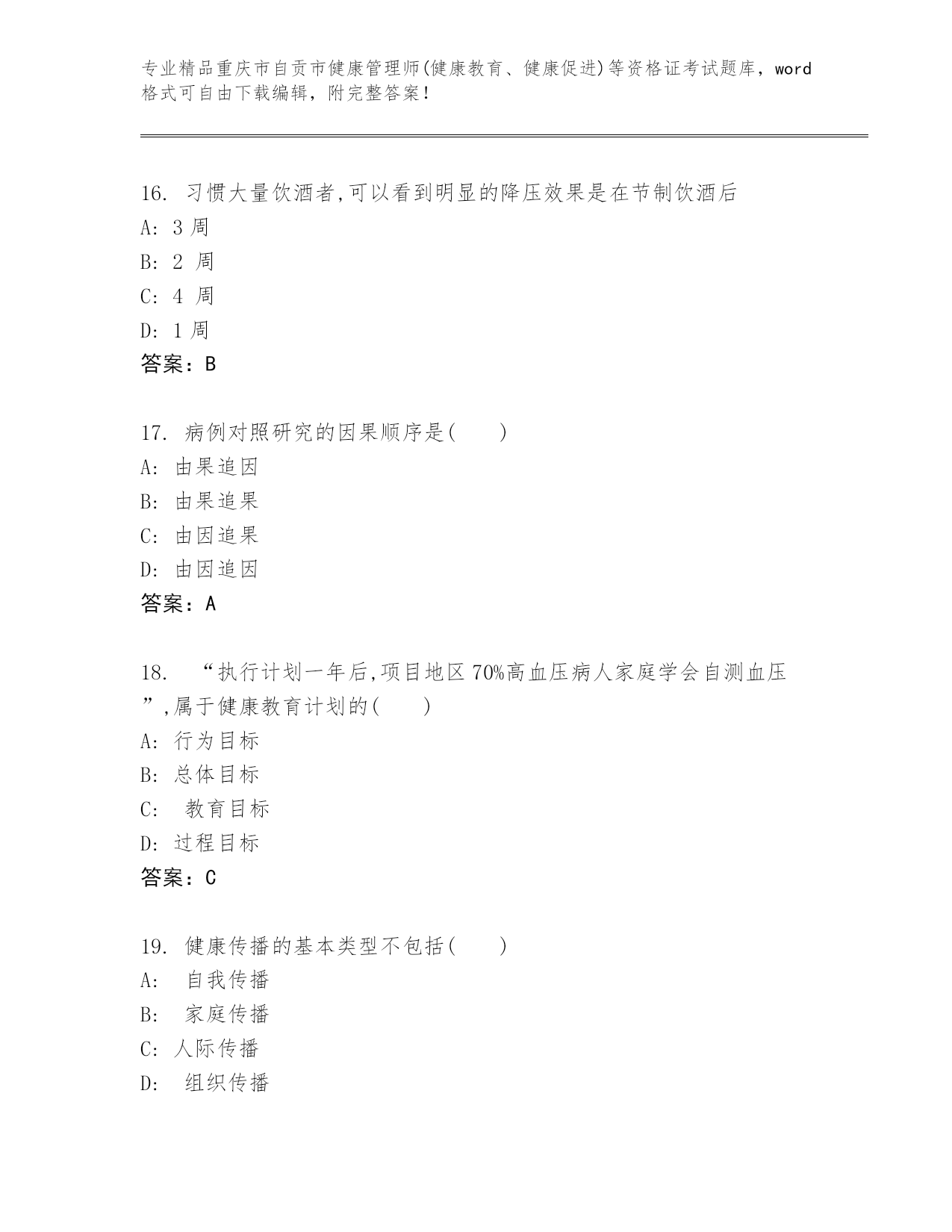 重庆市自贡市健康管理师(健康教育、健康促进)等资格证考试通用题库(精选题)