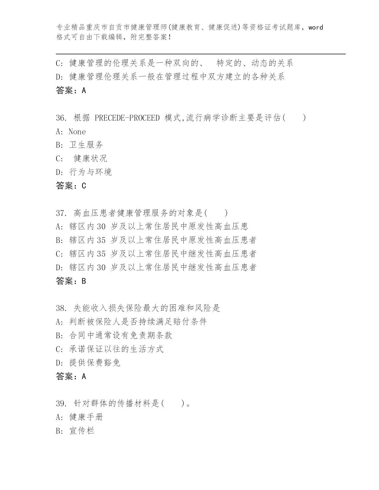 重庆市自贡市健康管理师(健康教育、健康促进)等资格证考试通用题库(精选题).docx