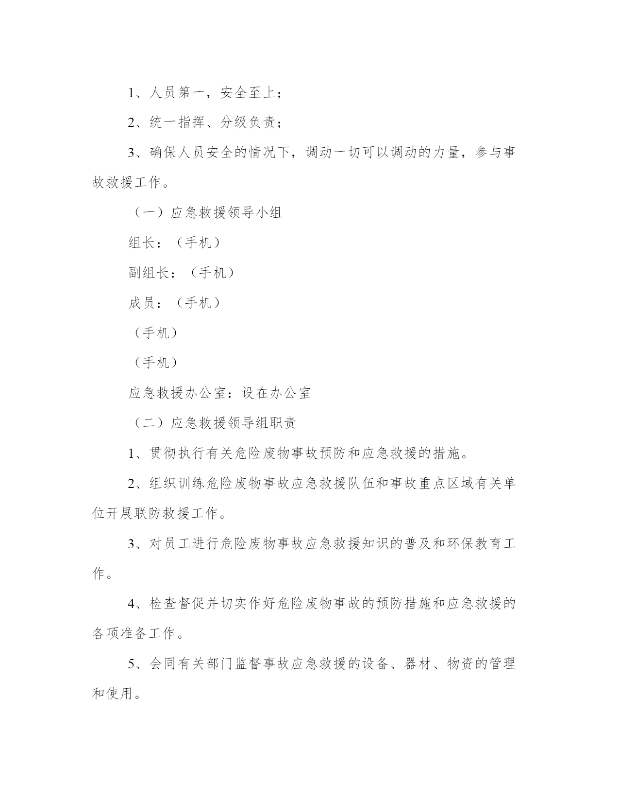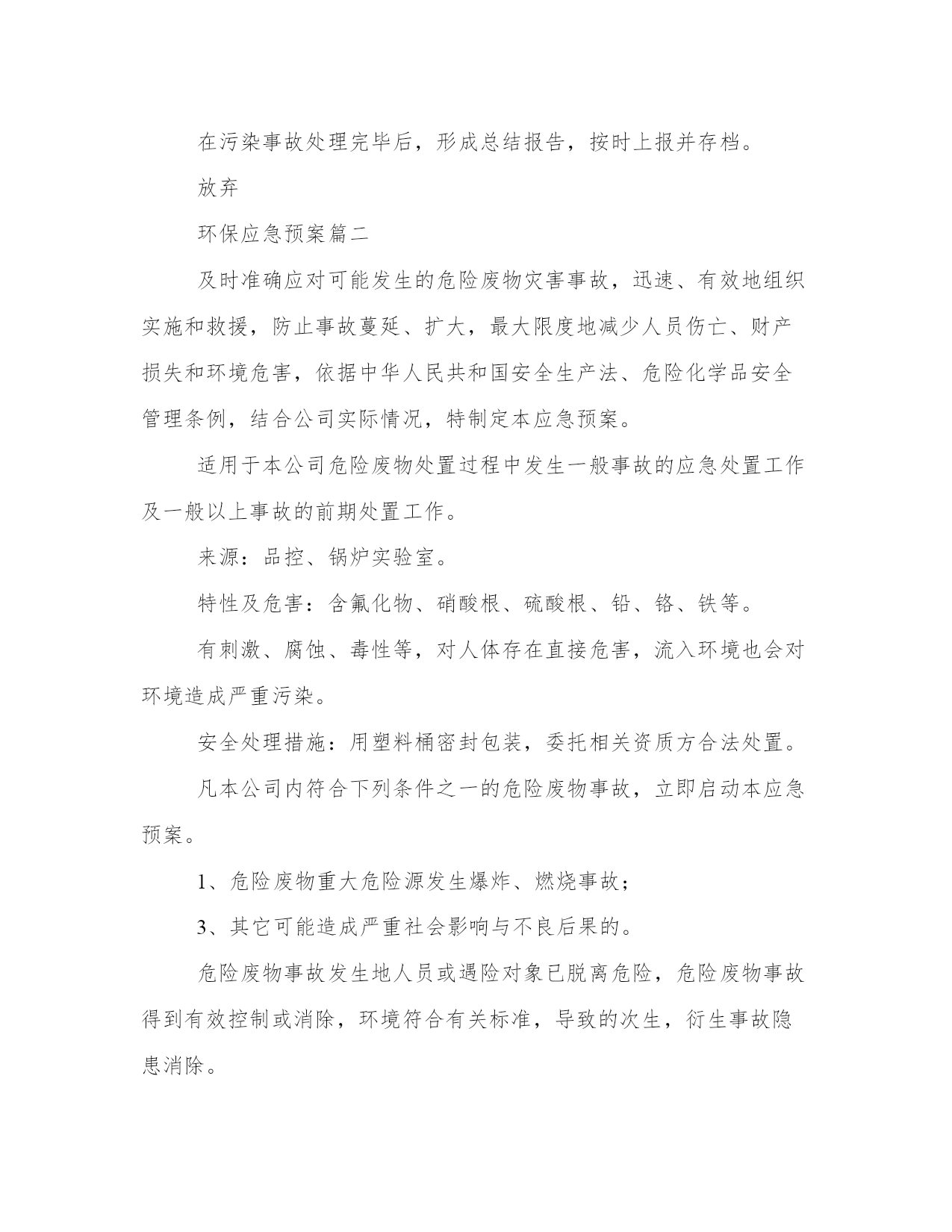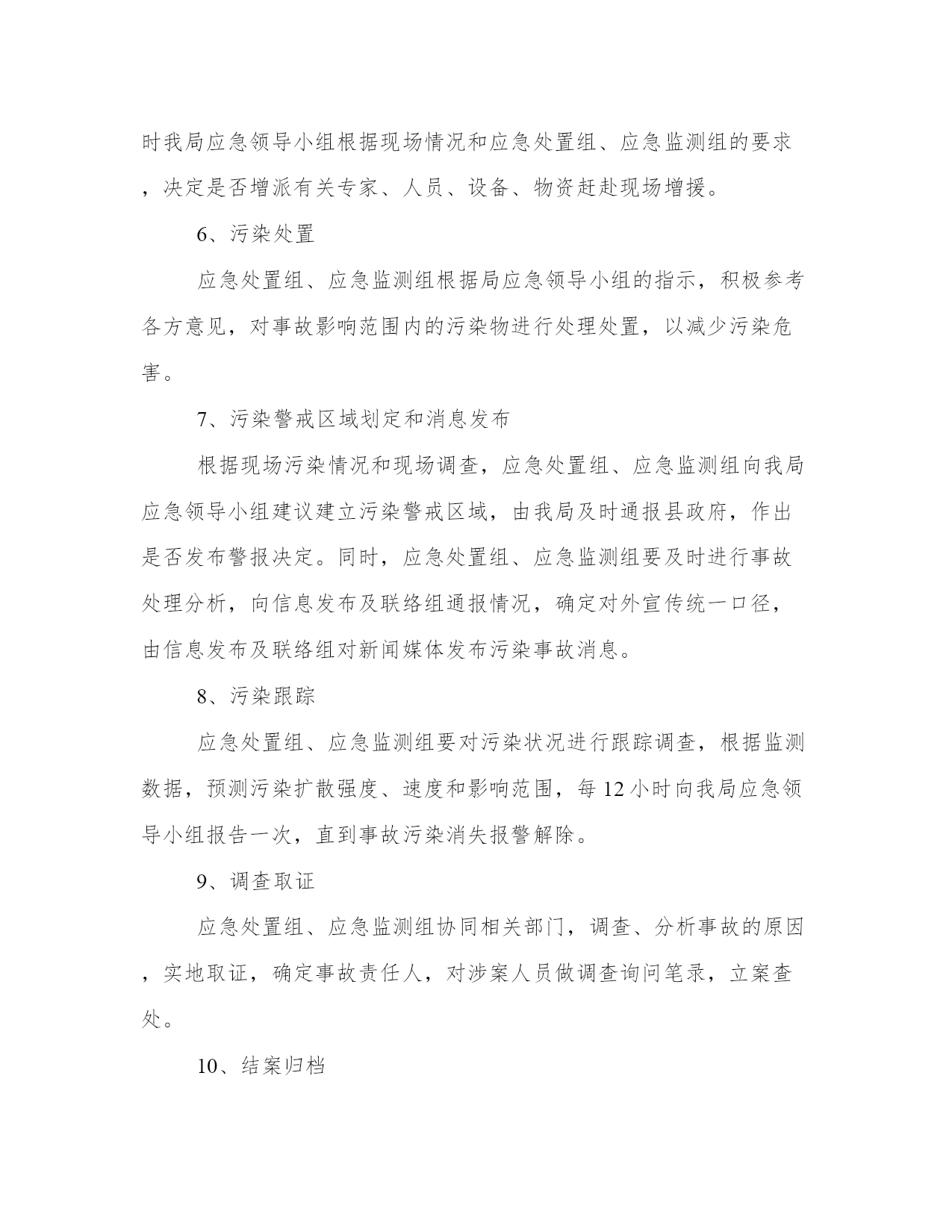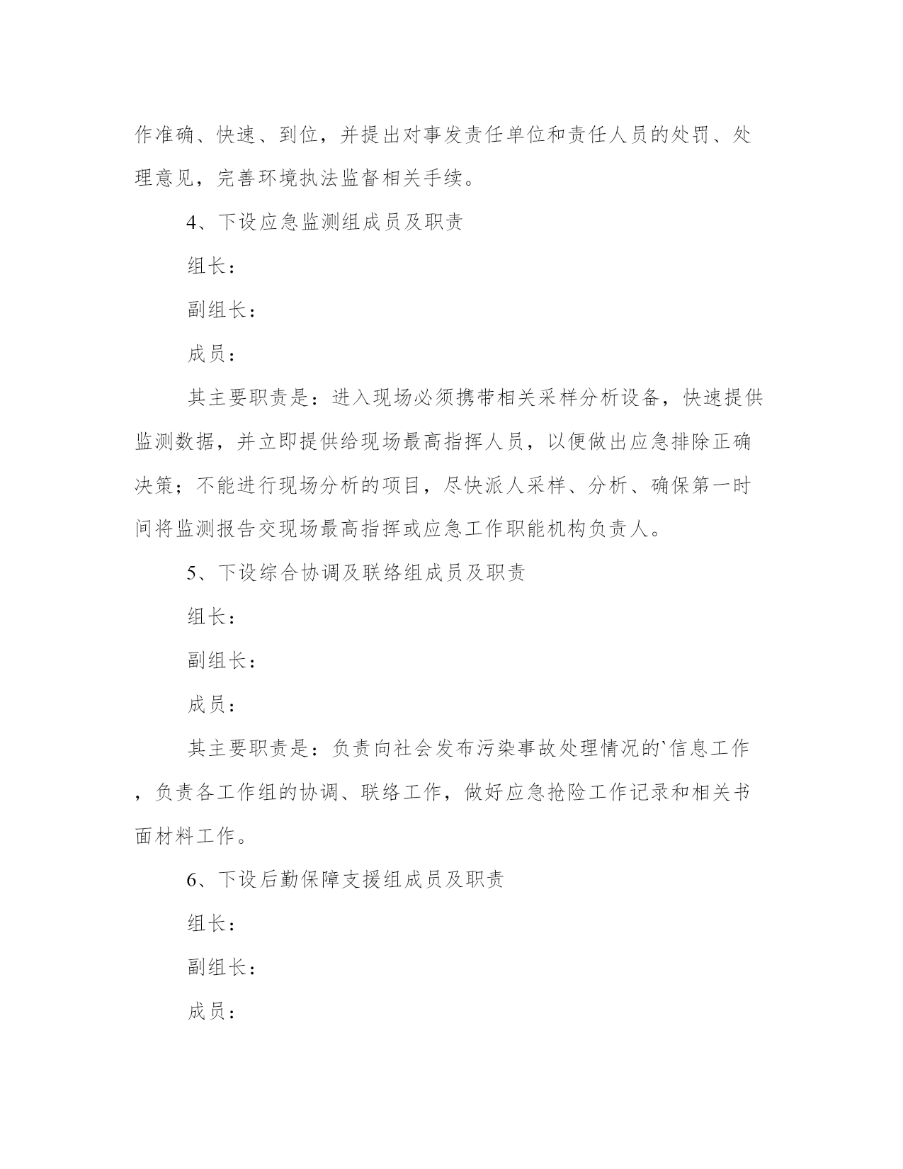 环保应急预案(汇总14篇)总结是一种思维的训练,通过不断总结经验和反思,我们可以提高自己的思考能力和判断能力。写一篇完美的总结要注意语句通顺,段落衔接自然,以提升总结的流畅度。这里有一些总结范文的例子,供大家参考写作时的思路和结构。环保应急预案篇一在平平淡淡的学习、工作、生活中,有时会出现一些意料之外的事件或事故,为了减小事故造成的危害,总不可避免地需要事先编制应急预案。那么你有了解过应急预案吗?下面是小编收集整理的厂环保应急预案范文,欢迎阅读,希望大家能够喜欢。贯彻落实“三个代表”重要思想,坚持“以人为本”、“预防为主”,规范和强化环境保护部门应对突发性污染事故、事件应急处置工作。使环境污染事故应急处置做到高起点、高标准、具有前瞻性、可操作性;建立与环境污染事故应急处置相适应的统一指挥、综合有力、规范有序、科学高效的应急救援队伍,有效地实施环境污染事故的应急处置。环境污染事故应急处置工作在政府统一领导下,贯彻以人为本、依法规范、资源共享、分工负责、快速高效、科学决策的原则。通过局应急指挥系统,整合现有污染事故应急处置资源。以机制优化、分工明确、责任到人、资源统一、优势互补、防患未然、常备不懈、科学处置体系为保障;在实施应急处置中,第一时间发挥事故单位及事故所在地的应急处置力量作用,尽最大努力控制事故的发展,同时局各有关单位按照本预案明确的职能,迅速赶赴现场,在保障人员安全的前提下,分工负责各项的应急处置工作,快速高效地实施事故处置,最大限度地减少污染损害。本预案适用于我县境内发生的突发性环境污染事故、事件的控制和处置。具体包括:1、危险化学品及其它有毒有害物品物品在生产、经营、贮存、运输、使用和处置过程中发生的爆炸、燃烧、大面积泄漏等事故、事件。2、工业企业生产过程中因生产装置、污染防治设施、设备等因素发生意外事故造成的突发性环境污染事故。3、影响饮用水源地水质的突发性严重污染事故、事件。4、因遭受自然灾害而造成的可能危及人体健康的环境污染事故、事件。5、其他突发性的环境污染事故、事件。1、泸溪县环保局应急领导小组成员:组长:副组长:成员:我局应急领导小组下设应急处置组、应急监测组,综合协调及联络组和后勤保障支援组、技术专家组。2、应急领导小组职责(1)组长主要负责:全面负责应急抢险工作;指挥应急抢险工作;负责分析制定切实可行的应急抢险技术方案。(2)副组长(王亚兵)主要负责:负责事故调查、处置及应急抢险工作。(3)副组长(许德胜)主要负责:组织应急抢险工作;负责监测及技术服务工作。(4)副组长(张显迟)主要负责:组织应急抢险工作;协调各部门工作;负责向社会发布污染事故处理情况的`信息工作,做好应急抢险工作记录。(5)副组长(刘红艳)主要负责:为所有应急参与人员提供物质、经费保障。3、下设应急处置组成员及职责组长:副组长:成员:其主要职责是:进入现场必须携带摄像、照相、录音设备和应急工作专用记录本,保证在第一时间内取得应急现场详细情况第一手资料和应急工作全程记录材料,分析、制定应急排除处置措施,确保工作准确、快速、到位,并提出对事发责任单位和责任人员的处罚、处理意见,完善环境执法监督相关手续。4、下设应急监测组成员及职责组长:副组长:成员:其主要职责是:进入现场必须携带相关采样分析设备,快速提供监测数据,并立即提供给现场最高指挥人员,以便做出应急排除正确决策;不能进行现场分析的项目,尽快派人采样、分析、确保第一时间将监测报告交现场最高指挥或应急工作职能机构负责人。5、下设综合协调及联络组成员及职责组长:副组长:成员:其主要职责是:负责向社会发布污染事故处理情况的`信息工作,负责各工作组的协调、联络工作,做好应急抢险工作记录和相关书面材料工作。6、下设后勤保障支援组成员及职责组长:副组长:成员:其主要职责是:为所有应急参与人员提供物质、经费保障。负责应急抢险中遭遇的人体损伤、财产损失的清理登记和紧急疏散人员等善后处置工作,防止损害、危害后果加重。7、下设技术专家组成员及职责组长:副组长:成员:其主要职责是:进入事发区域了解、掌握事故基本情况,分析制定切实可行的应急抢险技术方案,以便迅速采取应急抢险处置措施。1、对突发性污染事故的现场调查处理和处置以我局环境监察为主,环境监测站及其他有关科室要积极配合。2、预防为主,我局环境监察要采取积极措施,加大对各企业重点污染防治设施、污染隐患的现场监察力度,防患于未然。3、迅速查明事故原因,提出有关部门污染事故控制的建议措施,防止污染扩散,尽量减少污染范围。4、采取适当对策措施对事故引发的环境污染进行处理处置,同时避免造成二次污染。5、确保现场调查监测处置人员及周围群众的人身安全,进入