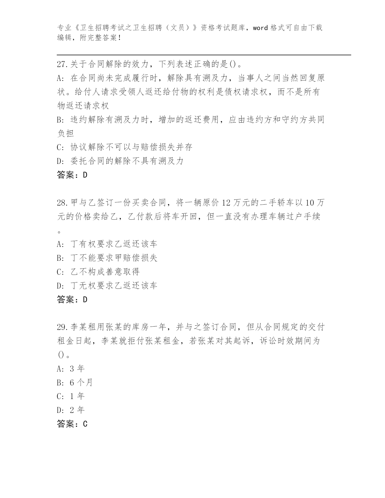 黑龙江省通河县2024《卫生招聘考试之卫生招聘(文员)》资格考试真题题库【达标题】