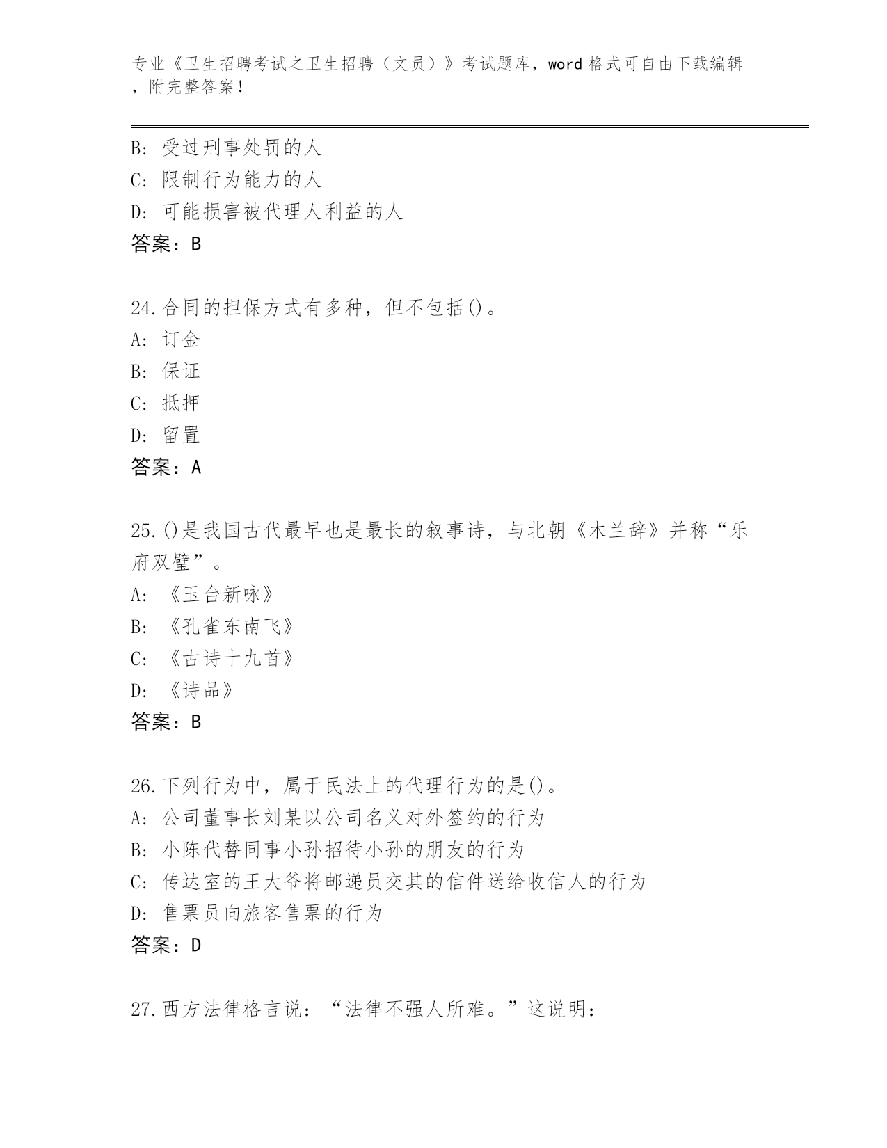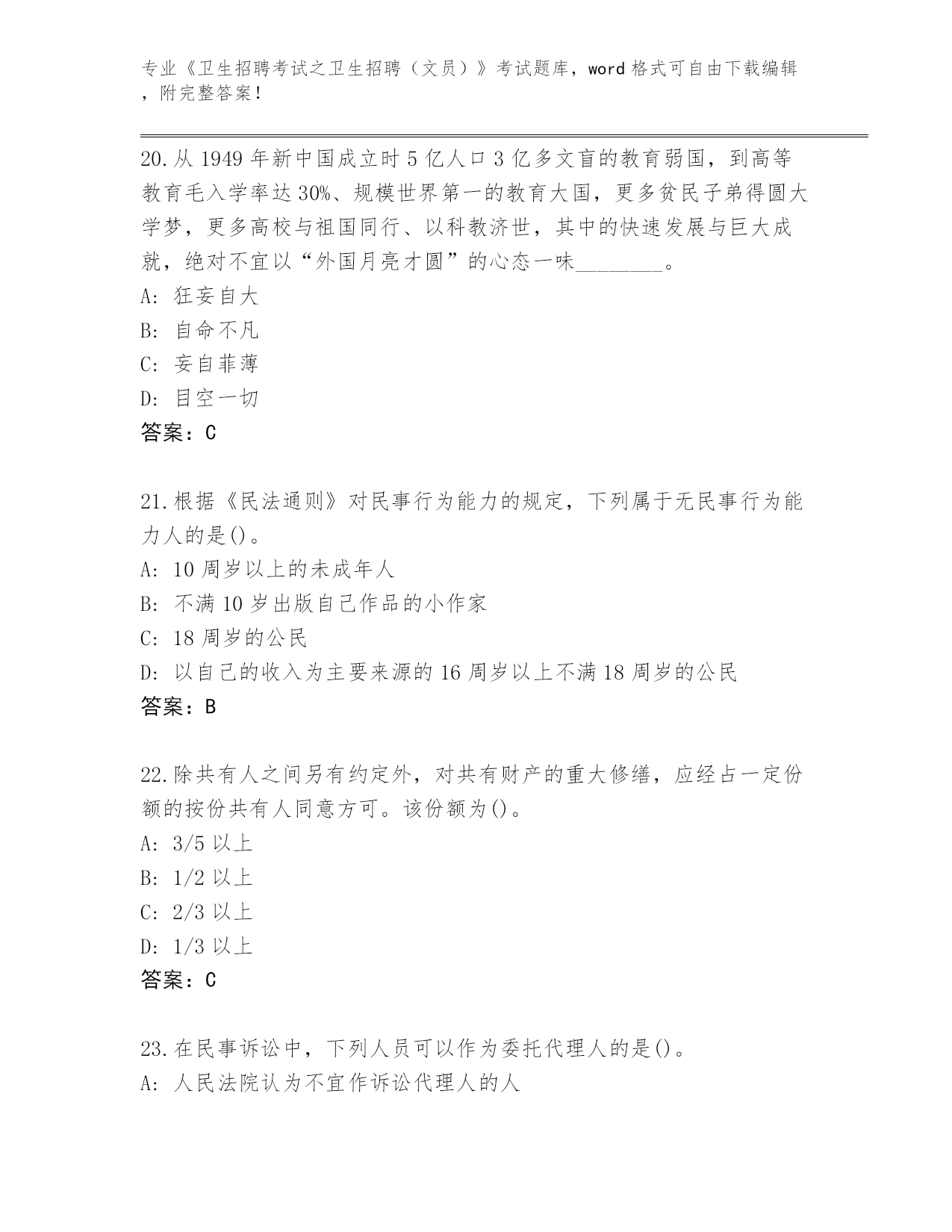 2023-24年四川省利州区《卫生招聘考试之卫生招聘(文员)》考试通关秘籍题库附答案【基础题】
