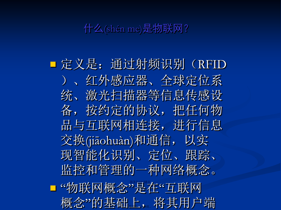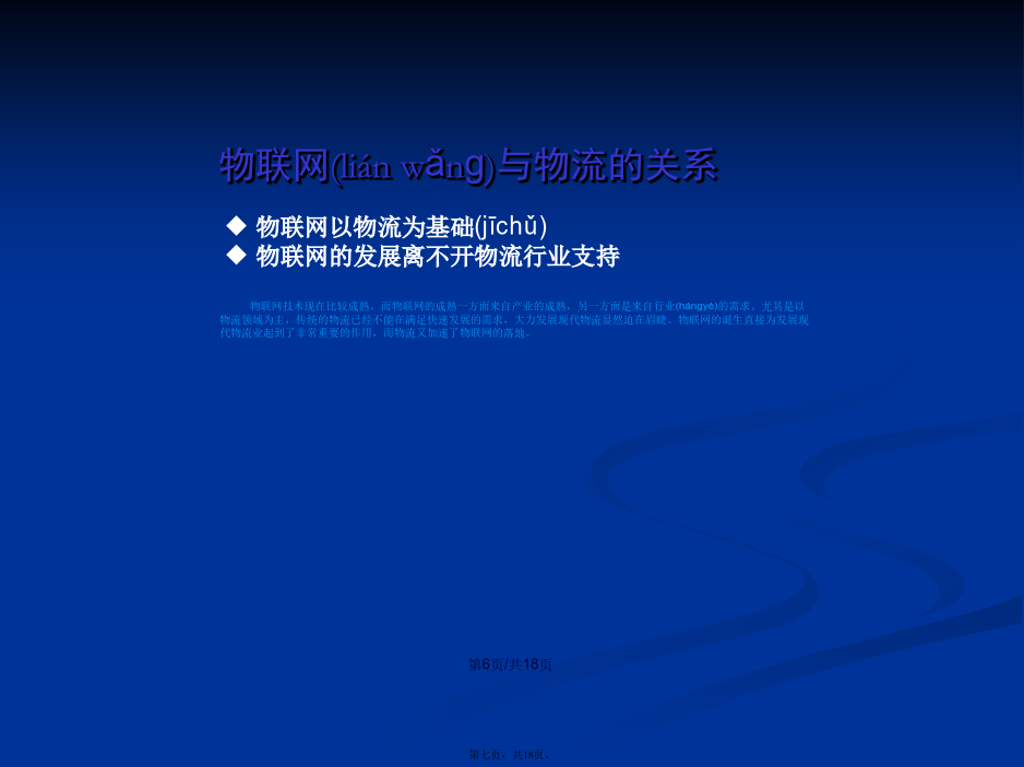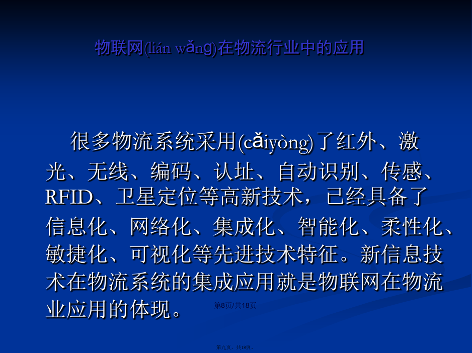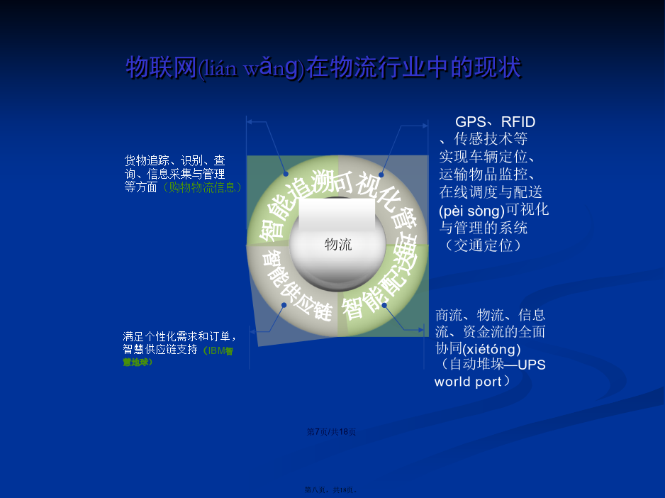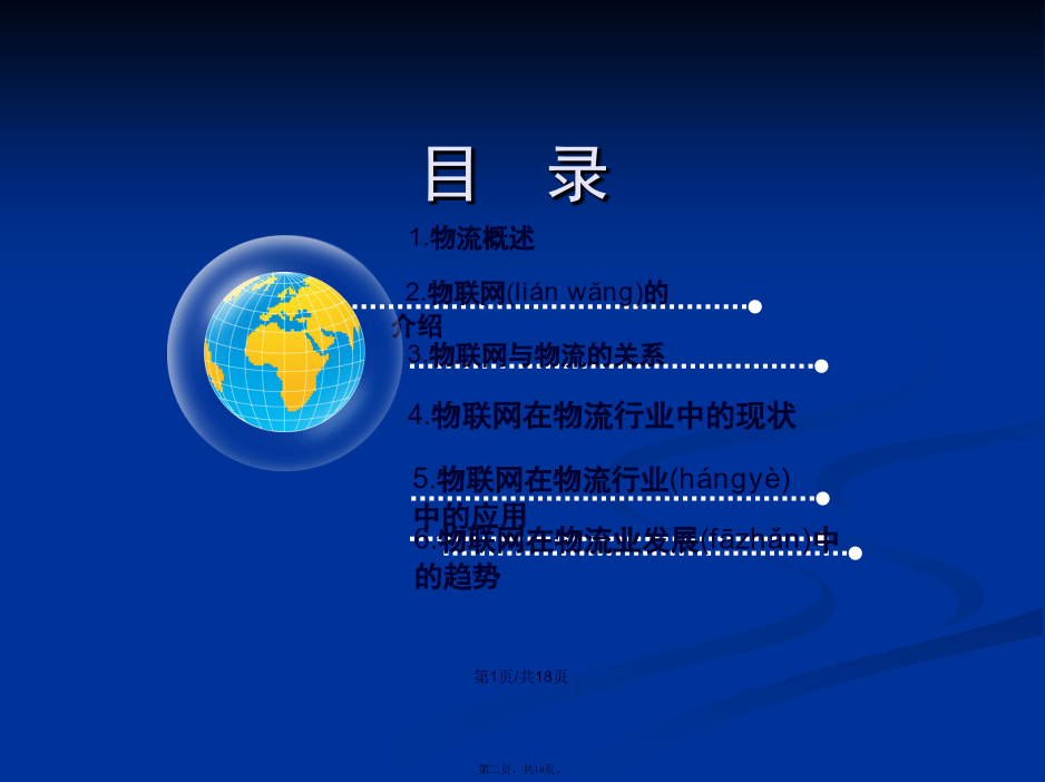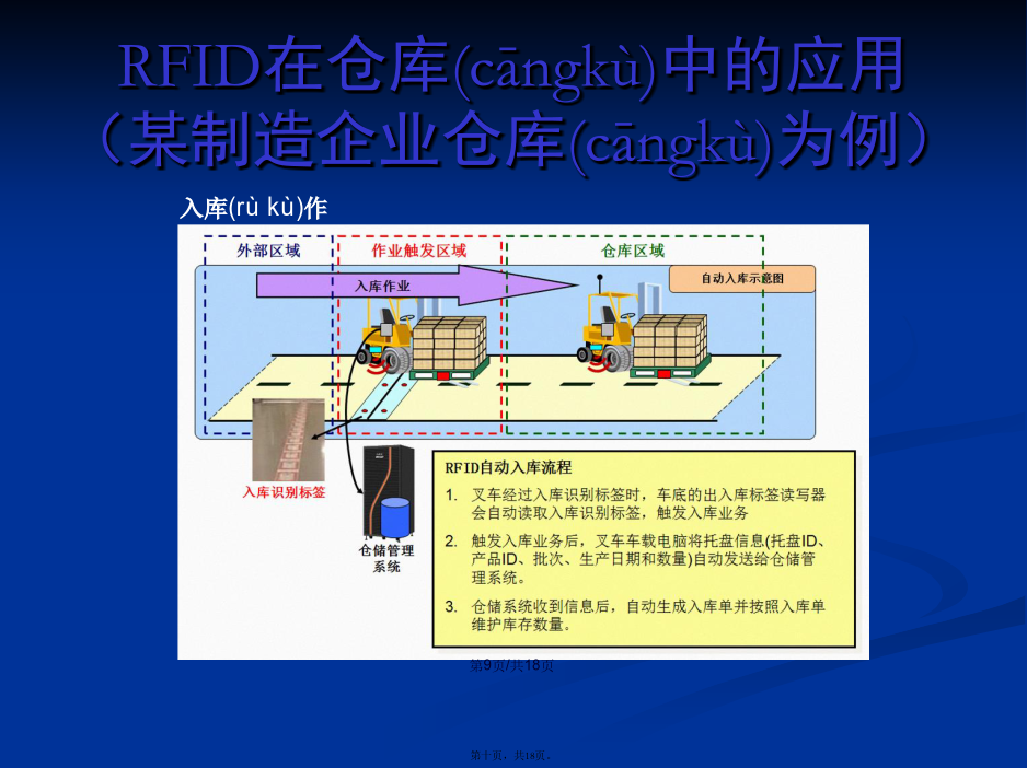 会计学目录物流概述(ɡàishù)什么(shénme)是物联网?物联网产业关注的核心(héxīn)要素物联网(liánwǎnɡ)与物流的关系物联网(liánwǎnɡ)在物流行业中的现状物联网(liánwǎnɡ)在物流行业中的应用RFID在仓库(cāngkù)中的应用(某制造企业仓库(cāngkù)为例)RFID在仓库中的应用(yìngyòng)(某制造企业仓库为例)RFID在仓库(cāngkù)中的应用(某制造企业仓库(cāngkù)为例)RFID在仓库中的应用(某制造(zhìzào)企业仓库为例)RFID在仓储中的应用(以某大型食品分销企业(qǐyè)自动仓为例典型案例(ànlì):奶制品溯源系统畅想(chàngxiǎng)物联网在物流发展中的趋势请老师(lǎoshī)指正!