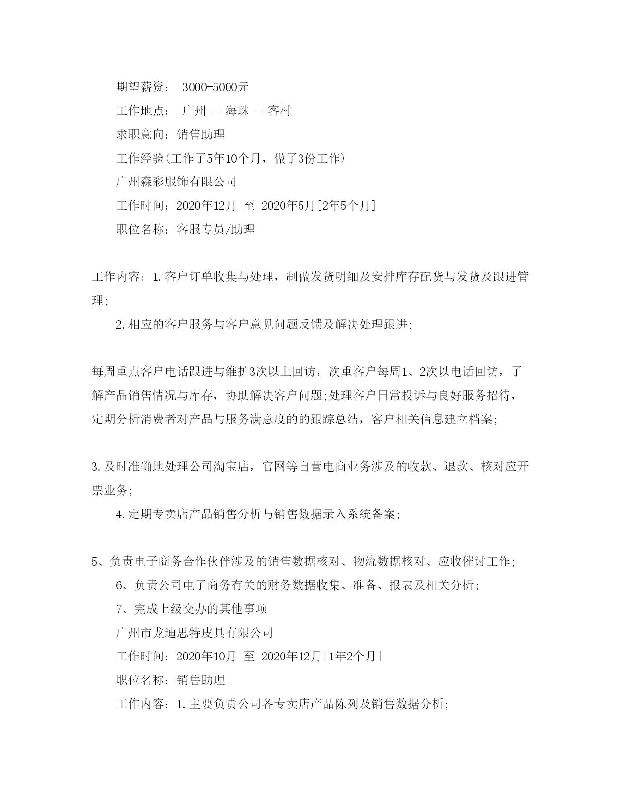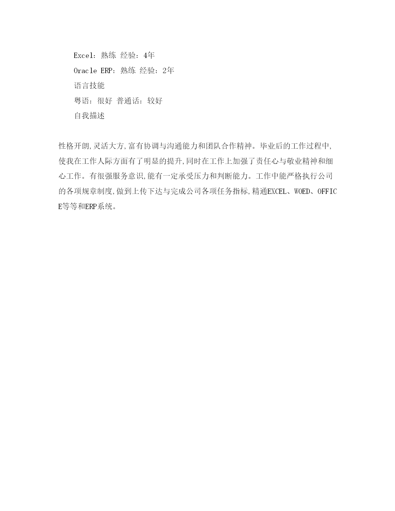 此资料由网络收集而来,如有侵权请告知上传者立即删除。资料共分享,我们负责传递知识。2020年工商管理专业简历简历的外表不一定要很华丽,但它至少要清楚醒目。审视一下简历的空白处,用这些空白处和边框来强调你的正文,或使用各种字体格式,如斜体、大写、下划线、首字突出、首行缩进或尖头等办法,要用电脑来打印你的简历。2020年工商管理专业简历篇一XXX女21岁学历:大专工作年限:应届毕业生期望薪资:3000-5000元工作地点:广州-白云-不限求职意向:行政专员/助理|培训专员/助理|薪资福利专员/助理教育经历至今在校江西工商学院工商企业管理自我描述个人评价:专业扎实组织协调超强适应教育背景江西工商学院经济管理系工商企业管理南昌大学自考本科工商企业管理主修课程:基础会计市场营销管理学原理经济学基础国际贸易与理论组织行为学财务管理生产运作管理统计学原理经济法人力资源管理现代企业管理概论质量管理学2020年工商管理专业简历篇二XXX女29岁广东人学历:大专工作年限:3-5年期望薪资:3000-5000元工作地点:广州-海珠-客村求职意向:销售助理工作经验(工作了5年10个月,做了3份工作)广州森彩服饰有限公司工作时间:2020年12月至2020年5月[2年5个月]职位名称:客服专员/助理工作内容:1.客户订单收集与处理,制做发货明细及安排库存配货与发货及跟进管理;2.相应的客户服务与客户意见问题反馈及解决处理跟进;每周重点客户电话跟进与维护3次以上回访,次重客户每周1、2次以电话回访,了解产品销售情况与库存,协助解决客户问题;处理客户日常投诉与良好服务招待,定期分析消费者对产品与服务满意度的的跟踪总结,客户相关信息建立档案;3.及时准确地处理公司淘宝店,官网等自营电商业务涉及的收款、退款、核对应开票业务;4.定期专卖店产品销售分析与销售数据录入系统备案;5、负责电子商务合作伙伴涉及的销售数据核对、物流数据核对、应收催讨工作;6、负责公司电子商务有关的财务数据收集、准备、报表及相关分析;7、完成上级交办的其他事项广州市龙迪思特皮具有限公司工作时间:2020年10月至2020年12月[1年2个月]职位名称:销售助理工作内容:1.主要负责公司各专卖店产品陈列及销售数据分析;2.处理公司跟厂家的合作文件来往,掌握市场行情,促销计划等;3.实时跟踪直营店铺的导购员沟通及消费者信息反馈及解决;4.根据财务数据以及ERP系统数据完成月度,完成年度专卖店所有对账数据及销售数据给到公司。广州市ASAN服饰店工作时间:2020年7月至2020年10月[2年3个月]职位名称:销售代表/客户经理工作内容:1.主要经营20-38年龄段的女装,兼营耳环,项链等小饰品;2.将到货品即时上架销售,按货品系列陈列要求整理好,跟踪衣服销售,并及时补货,负责办理衣服和饰品的进货验收;3.独立负责产品的陈列,收银,记账,进货的方向定位,时刻掌握市场行情,对流行趋势、市场需求敏感,并相应策划促销计划。不断了解商品知识,在与顾客交流中揣摩出客人的真正需求,秉承以客为先的理念;4.独立处理对账数据方面的工作。教育经历2020年3月毕业广东商学院工商管理项目/培训经验2020年2月-2020年2月电子商务对账知识项目/培训机构:广州森彩服饰有限公司项目/培训内容:有关电子商务的销售数据核对以及有关的财务数据报表及对账知识专业技能Word:熟练经验:4年Excel:熟练经验:4年OracleERP:熟练经验:2年语言技能粤语:很好普通话:较好自我描述性格开朗,灵活大方,富有协调与沟通能力和团队合作精神。毕业后的工作过程中,使我在工作人际方面有了明显的提升,同时在工作上加强了责任心与敬业精神和细心工作。有很强服务意识,能有一定承受压力和判断能力。工作中能严格执行公司的各项规章制度,做到上传下达与完成公司各项任务指标,精通EXCEL、WOED、OFFICE等等和ERP系统。