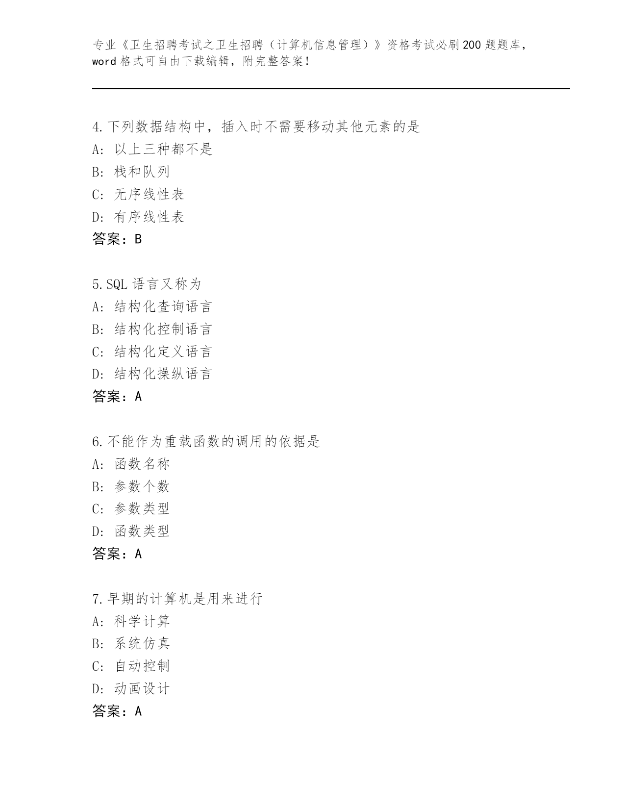山西省2024年《卫生招聘考试之卫生招聘(计算机信息管理)》资格考试必刷200题通关秘籍题库(典优)