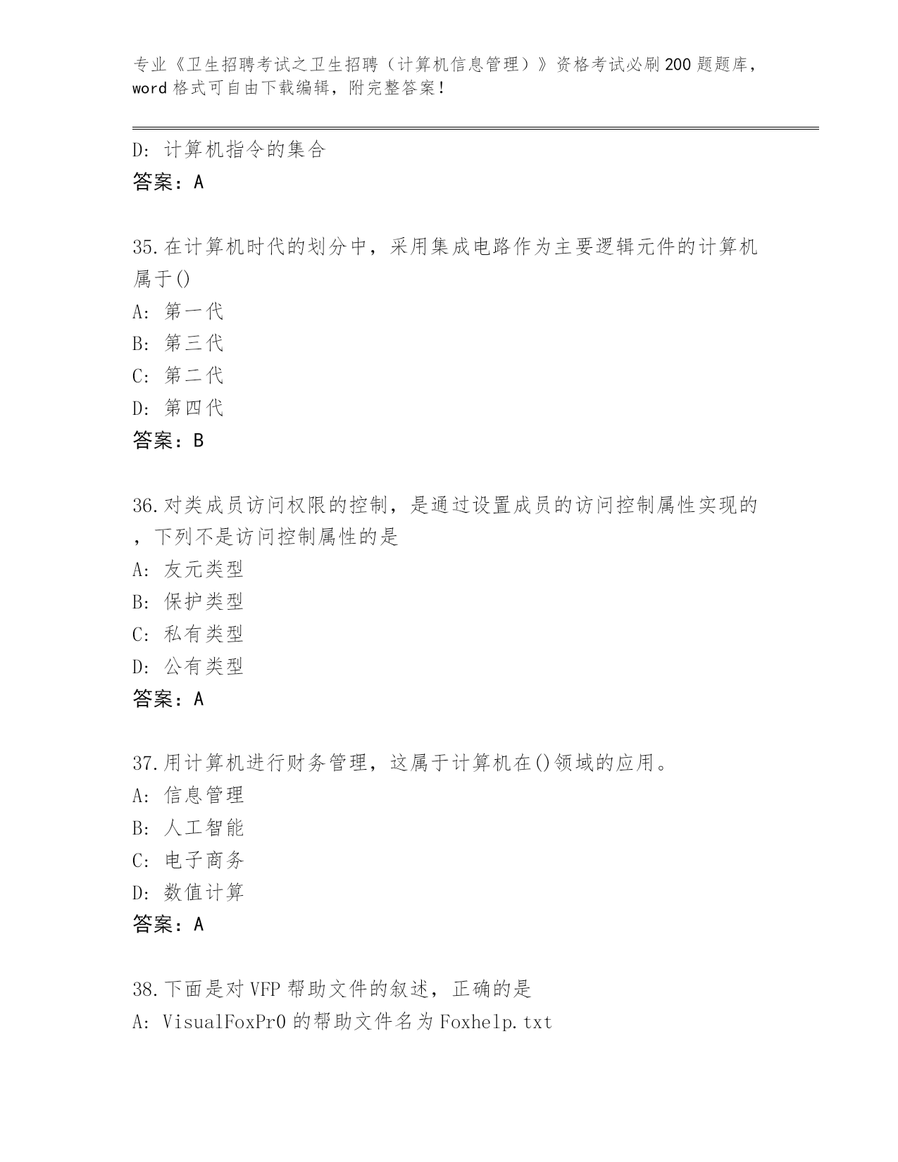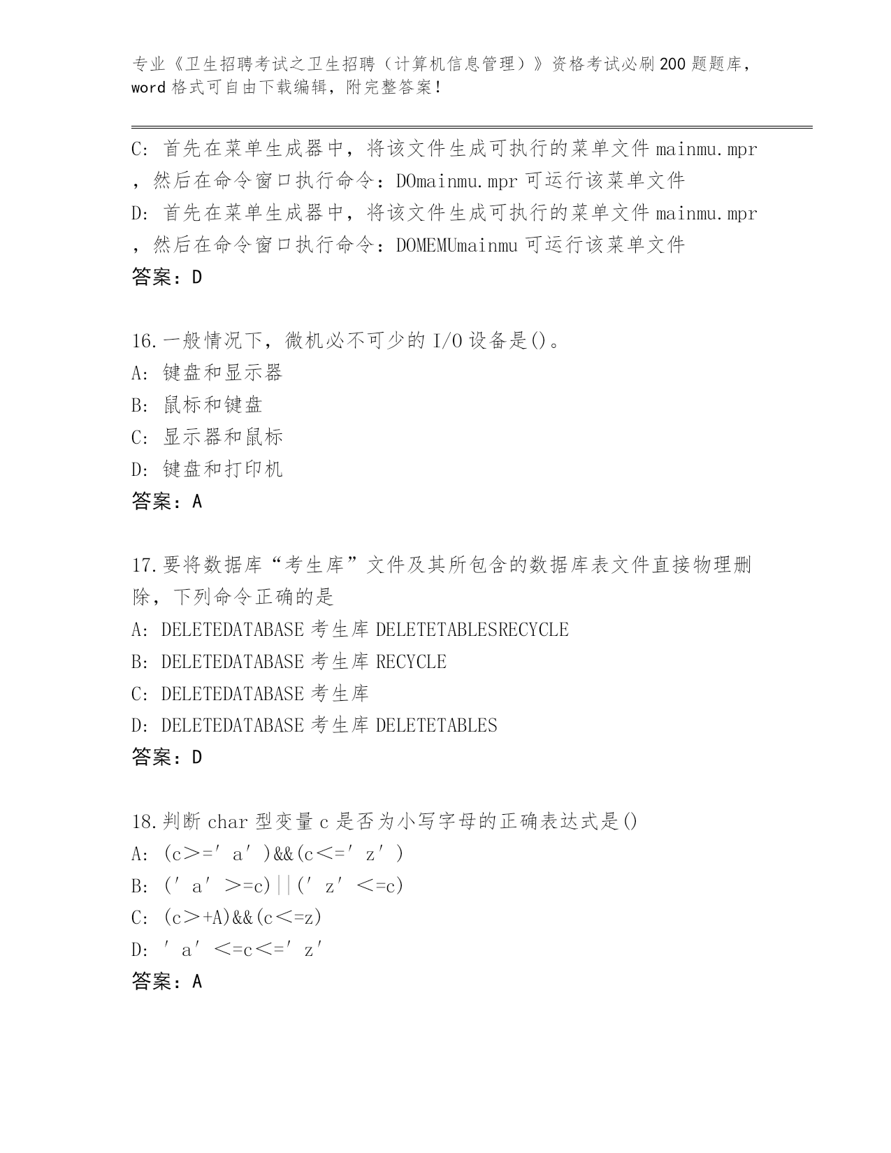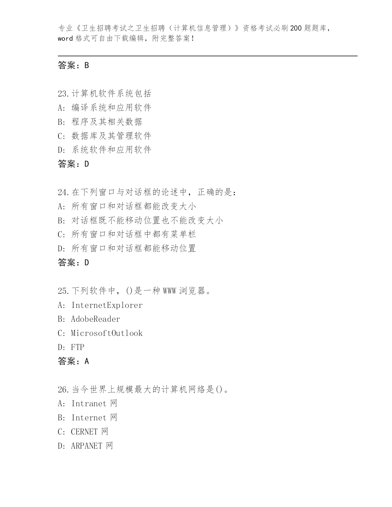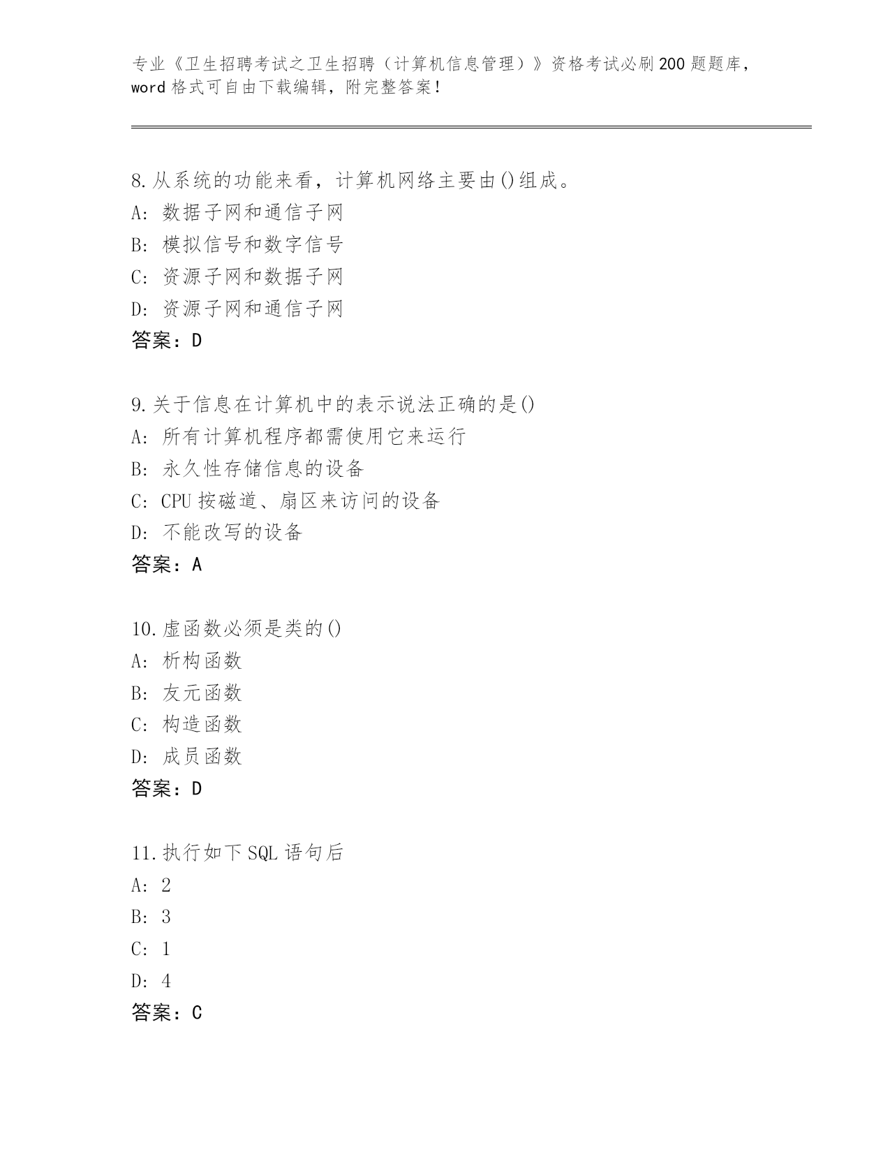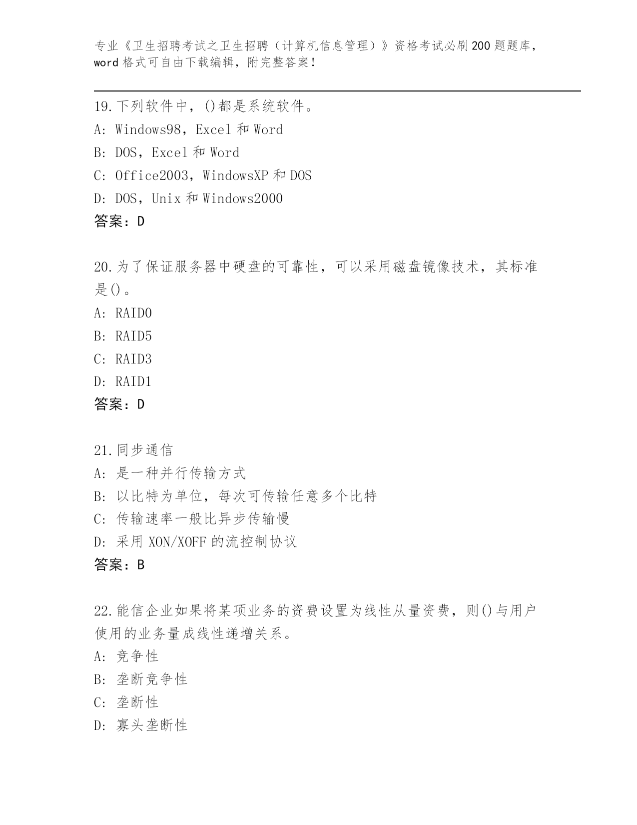山东省岱岳区整理《卫生招聘考试之卫生招聘(计算机信息管理)》资格考试必刷200题通关秘籍题库【典优】