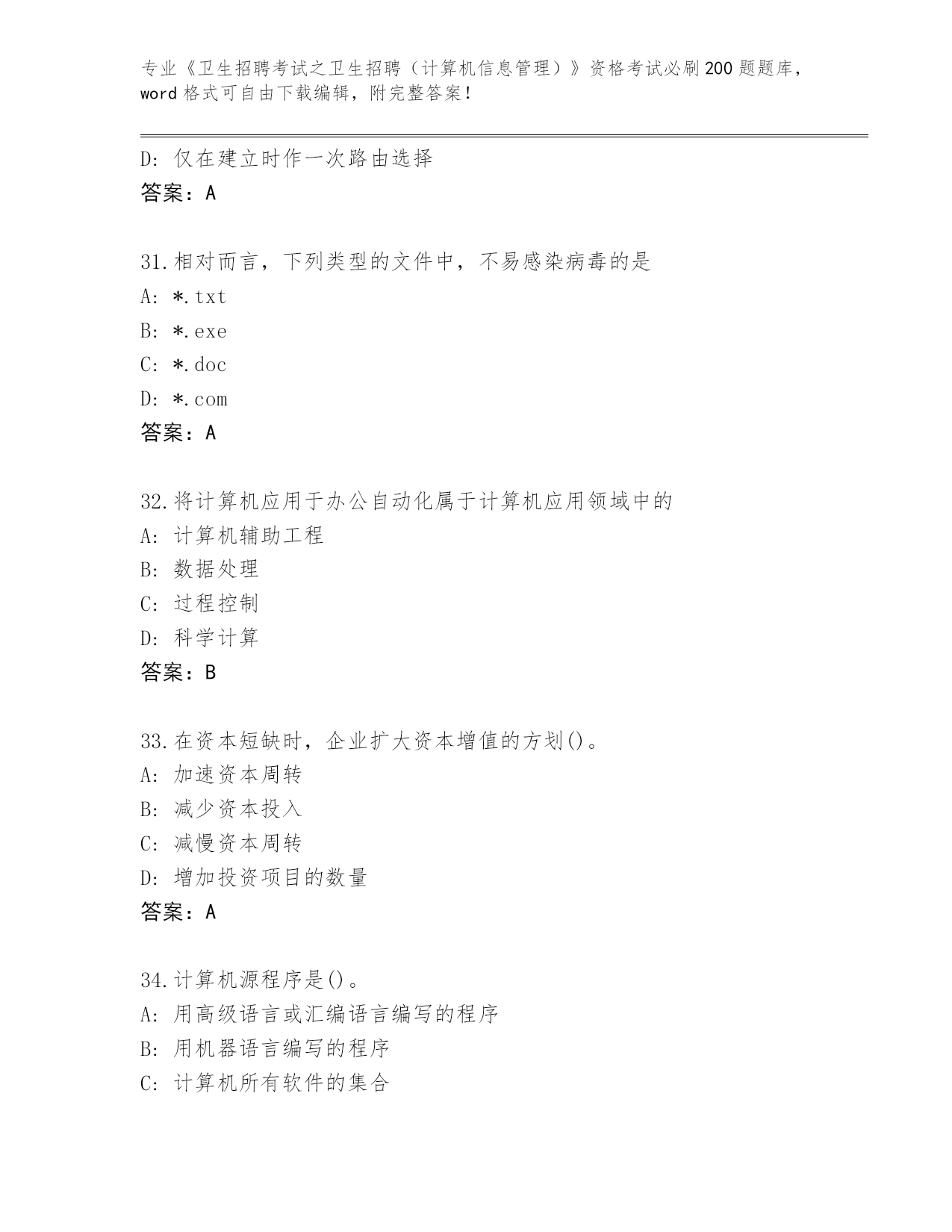 2024年浙江省缙云县《卫生招聘考试之卫生招聘(计算机信息管理)》资格考试必刷200题通关秘籍题库(典优)