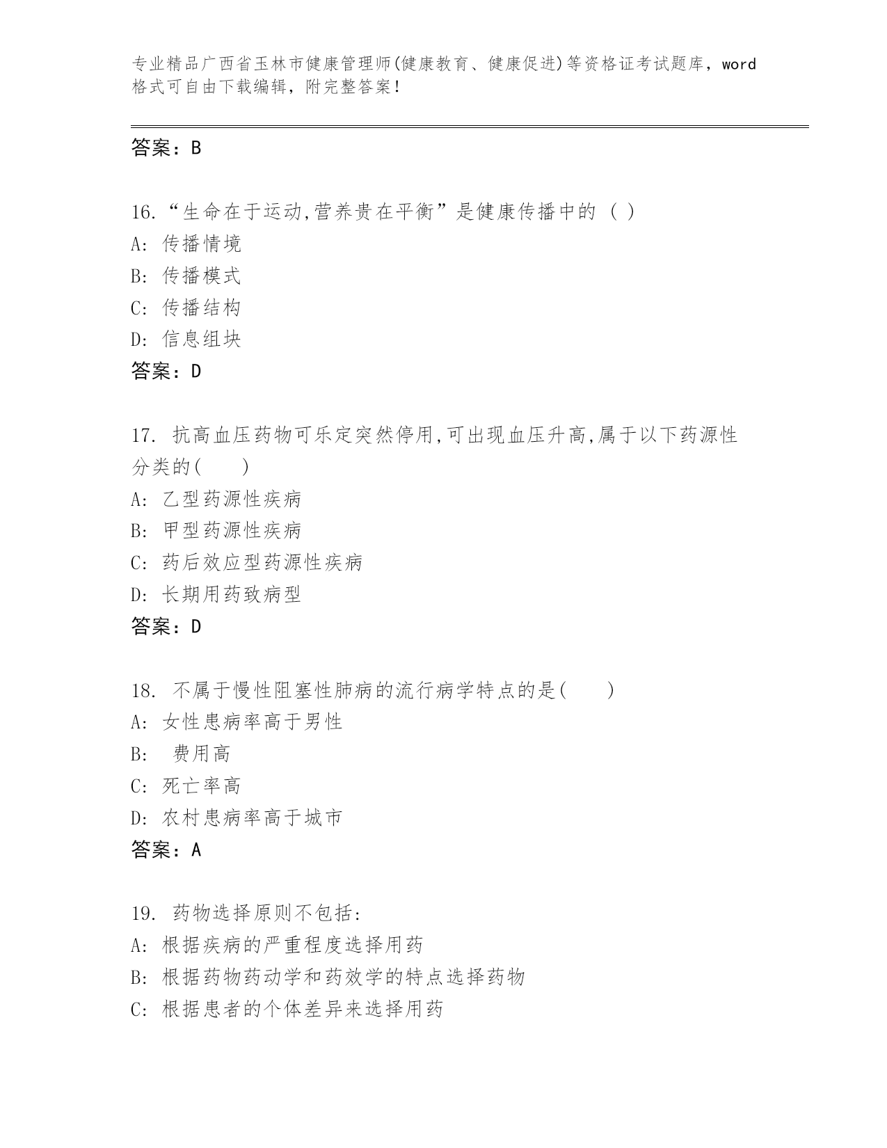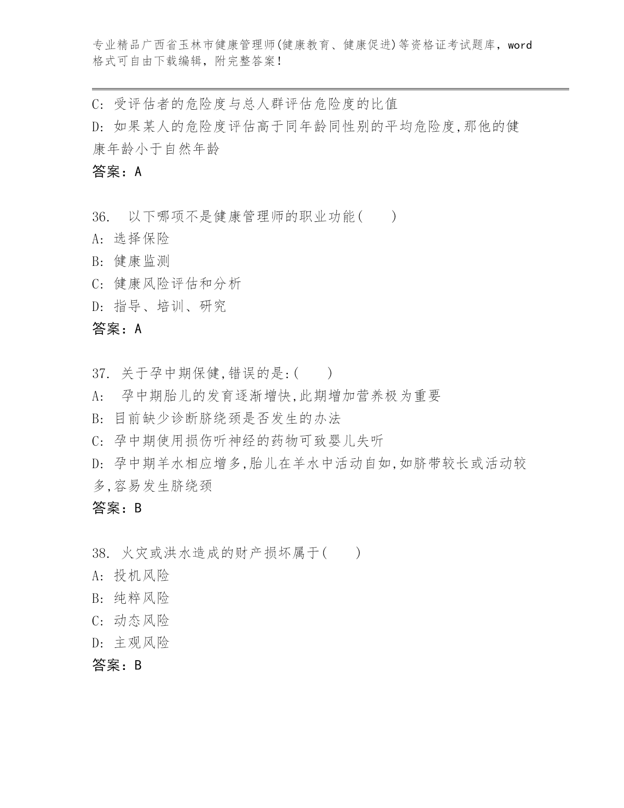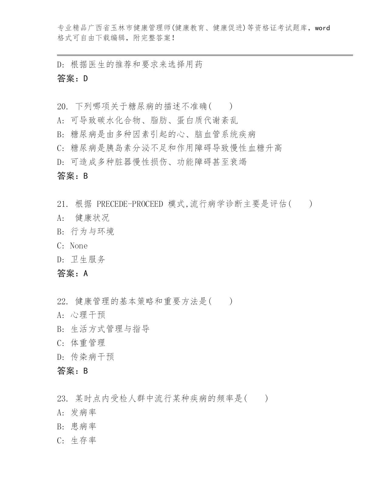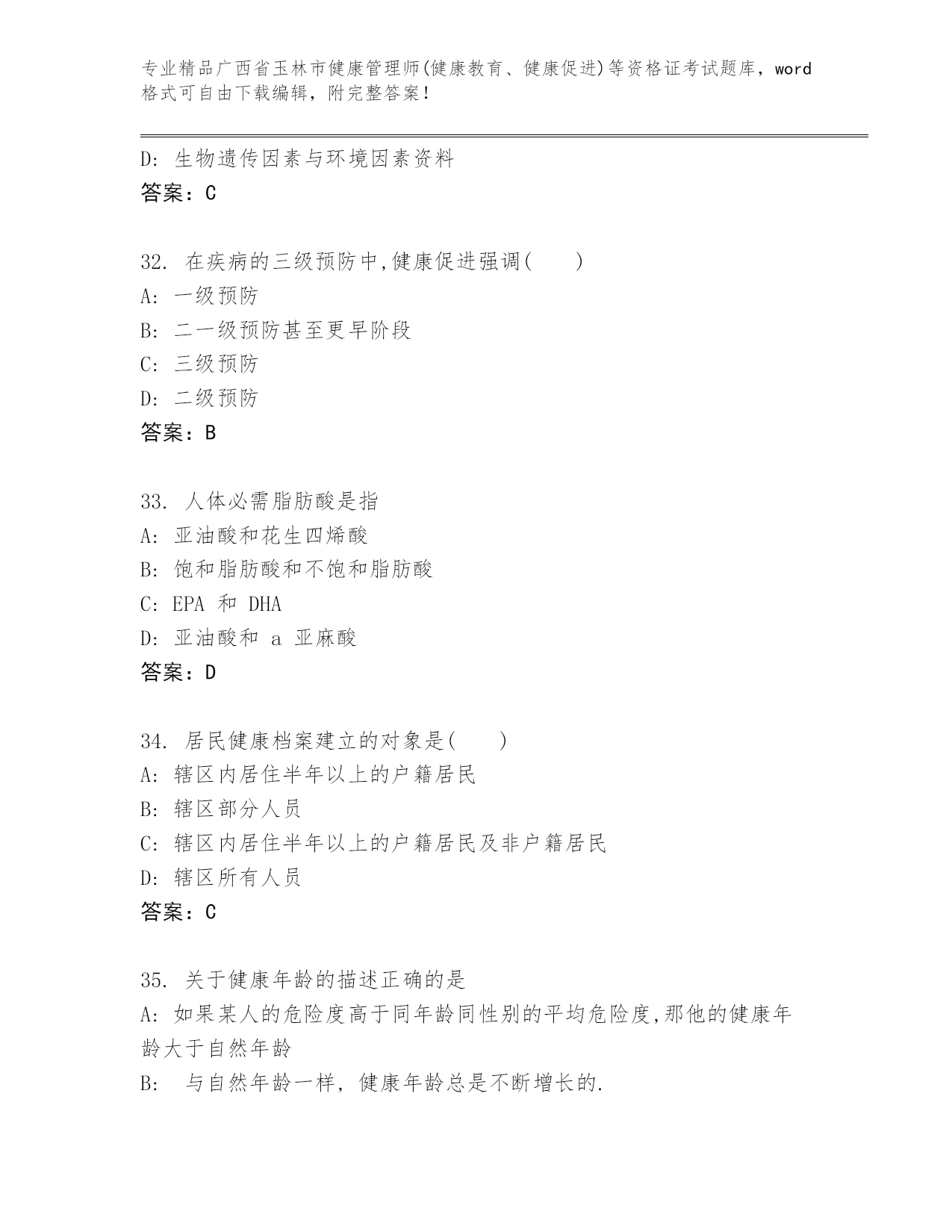 广西省玉林市健康管理师(健康教育、健康促进)等资格证考试通用题库附答案【精练】