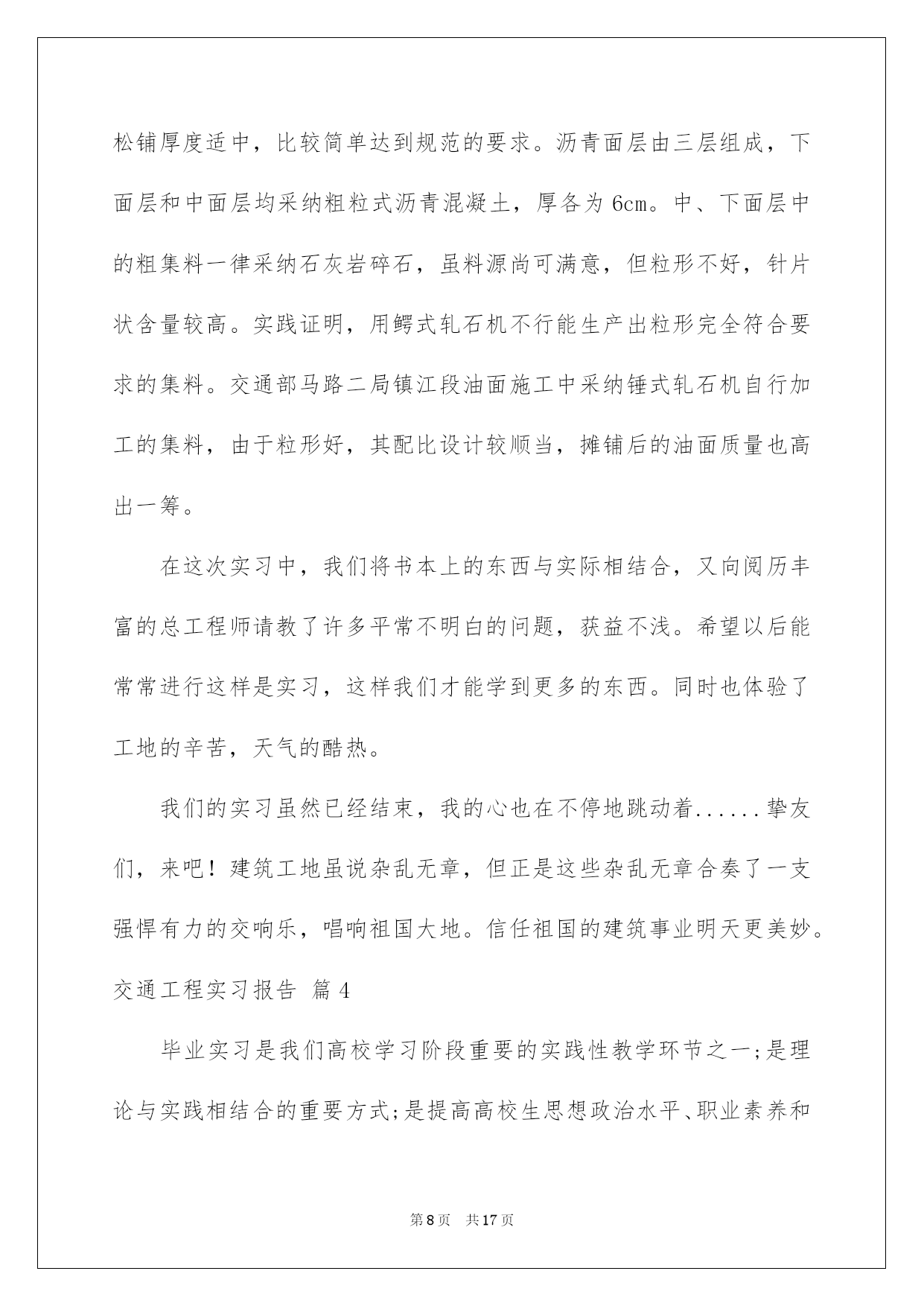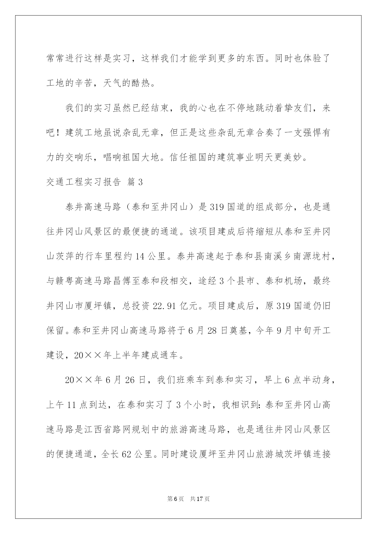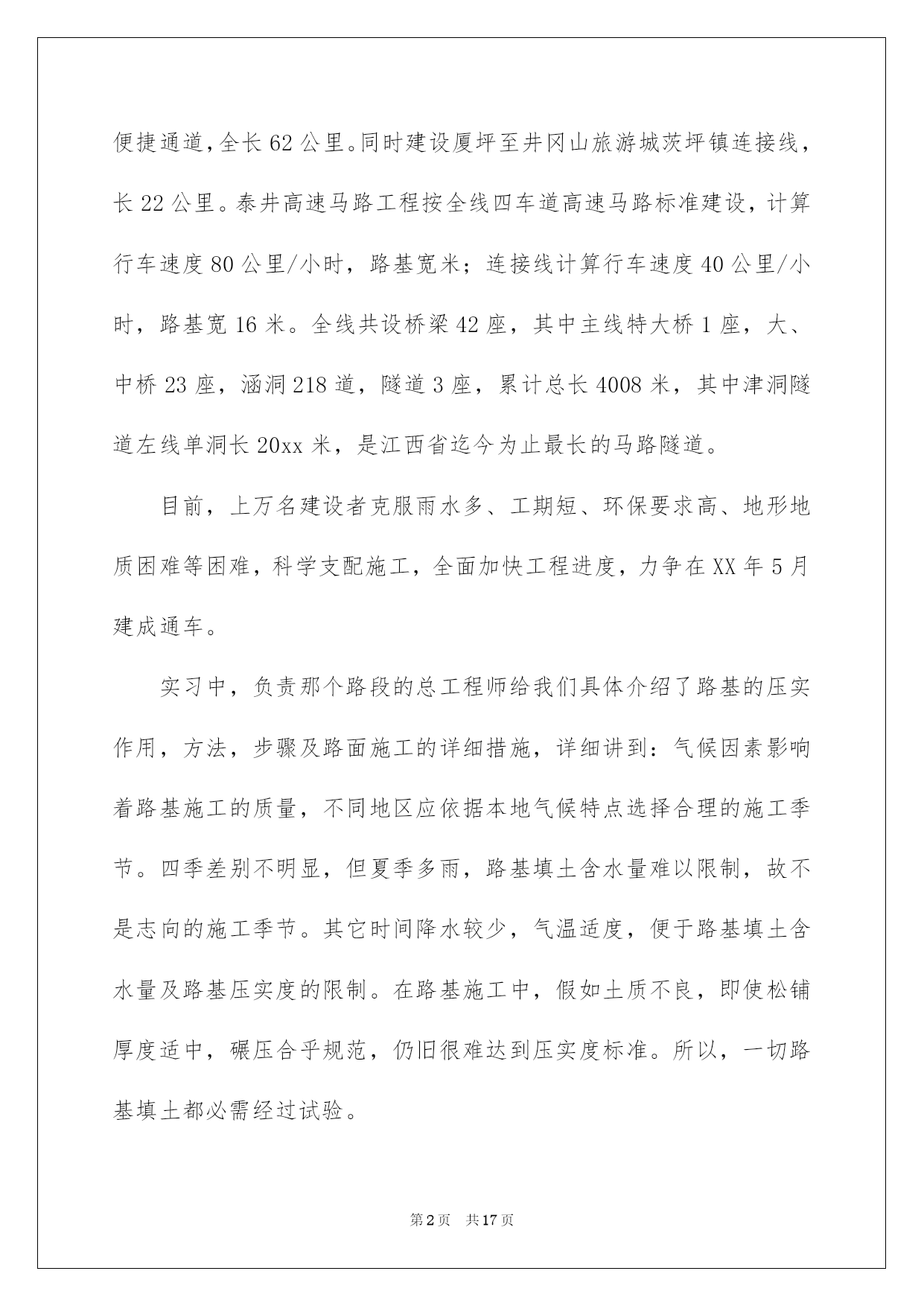 第PAGE\*Arabic\*MERGEFORMAT17页共NUMPAGES\*Arabic\*MERGEFORMAT17页第PAGE\*MERGEFORMAT17页共NUMPAGES\*MERGEFORMAT17页第PAGE\*MERGEFORMAT17页共NUMPAGES\*MERGEFORMAT17页第PAGE\*MERGEFORMAT17页共NUMPAGES\*MERGEFORMAT17页第PAGE\*MERGEFORMAT17页共NUMPAGES\*MERGEFORMAT17页第PAGE\*MERGEFORMAT17页共NUMPAGES\*MERGEFORMAT17页第PAGE\*MERGEFORMAT17页共NUMPAGES\*MERGEFORMAT17页第PAGE\*MERGEFORMAT17页共NUMPAGES\*MERGEFORMAT17页第PAGE\*MERGEFORMAT17页共NUMPAGES\*MERGEFORMAT17页第PAGE\*MERGEFORMAT17页共NUMPAGES\*MERGEFORMAT17页第PAGE\*MERGEFORMAT17页共NUMPAGES\*MERGEFORMAT17页2022交通工程实习报告交通工程实习报告锦集五篇在生活中,越来越多人会去运用报告,报告具有成文事后性的特点。我敢确定,大部分人都对写报告很是头疼的,下面是我收集整理的交通工程实习报告5篇,仅供参考,希望能够帮助到大家。交通工程实习报告篇1泰井高速马路(泰和至井冈山)是319国道的组成部分,也是通往井冈山风景区的最便捷的通道。该项目建成后将缩短从泰和至井冈山茨萍的行车里程约14公里。泰井高速起于泰和县南溪乡南源垅村,与赣粤高速马路昌傅至泰和段相交,途经3个县市、泰和机场,最终井冈山市厦坪镇,总投资亿元。项目建成后,原319国道仍旧保留。泰和至井冈山高速马路将于6月28日奠基,今年9月中旬开工建设,XX年上半年建成通车。XX年6月26日,我们班乘车到泰和实习,早上6点半动身,上午11点到达,在泰和实习了3个小时,我相识到:泰和至井冈山高速马路是江西省路网规划中的旅游高速马路,也是通往井冈山风景区的便捷通道,全长62公里。同时建设厦坪至井冈山旅游城茨坪镇连接线,长22公里。泰井高速马路工程按全线四车道高速马路标准建设,计算行车速度80公里/小时,路基宽米;连接线计算行车速度40公里/小时,路基宽16米。全线共设桥梁42座,其中主线特大桥1座,大、中桥23座,涵洞218道,隧道3座,累计总长4008米,其中津洞隧道左线单洞长20xx米,是江西省迄今为止最长的马路隧道。目前,上万名建设者克服雨水多、工期短、环保要求高、地形地质困难等困难,科学支配施工,全面加快工程进度,力争在XX年5月建成通车。实习中,负责那个路段的总工程师给我们具体介绍了路基的压实作用,方法,步骤及路面施工的详细措施,详细讲到:气候因素影响着路基施工的质量,不同地区应依据本地气候特点选择合理的施工季节。四季差别不明显,但夏季多雨,路基填土含水量难以限制,故不是志向的施工季节。其它时间降水较少,气温适度,便于路基填土含水量及路基压实度的限制。在路基施工中,假如土质不良,即使松铺厚度适中,碾压合乎规范,仍旧很难达到压实度标准。所以,一切路基填土都必需经过试验。在高速马路的施工中,路基填土普遍采纳粗粒土,这种土的级配良好,加之本身的性质,一般只要机械碾压合理、松铺厚度适中,比较简单达到规范的要求。沥青面层由三层组成,下面层和中面层均采纳粗粒式沥青混凝土,厚各为6cm。中、下面层中的粗集料一律采纳石灰岩碎石,虽料源尚可满意,但粒形不好,针片状含量较高。实践证明,用鳄式轧石机不行能生产出粒形完全符合要求的集料。交通部马路二局镇江段油面施工中采纳锤式轧石机自行加工的集料,由于粒形好,其配比设计较顺当,摊铺后的油面质量也高出一筹。在这次实习中,我们将书本上的东西与实际相结合,又向阅历丰富的总工程师请教了许多平常不明白的问题,获益不浅。希望以后能常常进行这样是实习,这样我们才能学到更多的东西。同时也体验了工地的辛苦,天气的酷热。我们的实习虽然已经结束,我的心也在不停地跳动着......挚友们,来吧!建筑工地虽说杂乱无章,但正是这些杂乱无章合奏了一支强悍有力的交响乐,唱响祖国大地。信任祖国的建筑事业明天更美妙。交通工程实习报告篇2泰井高速马路(泰和至×××)是国道的组成部分,也是通往×××风景区的最便捷的通道。该项目建成后将缩短从泰和至×××茨萍的行车里程约公里。泰井高速起于泰×××南溪乡南源垅村,与赣粤高
