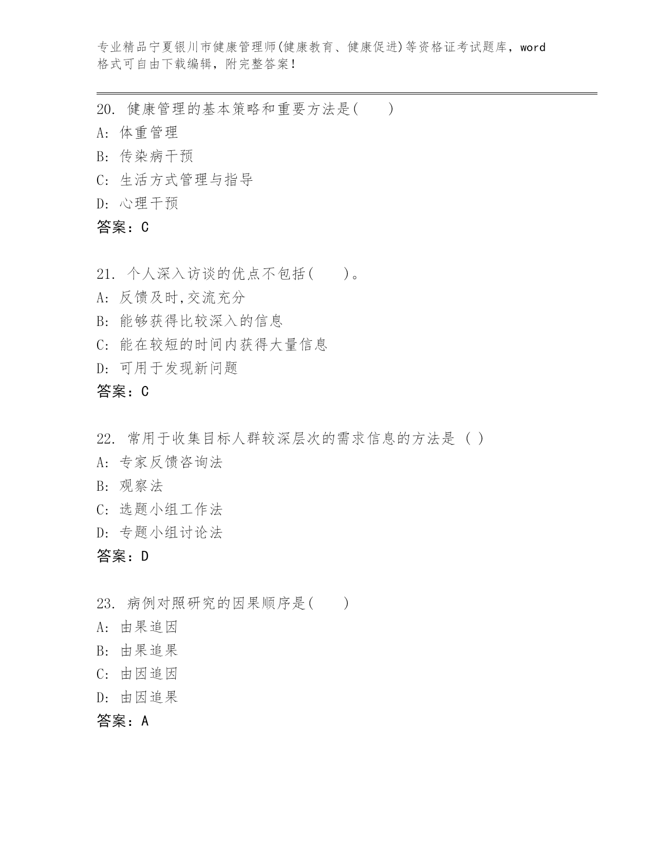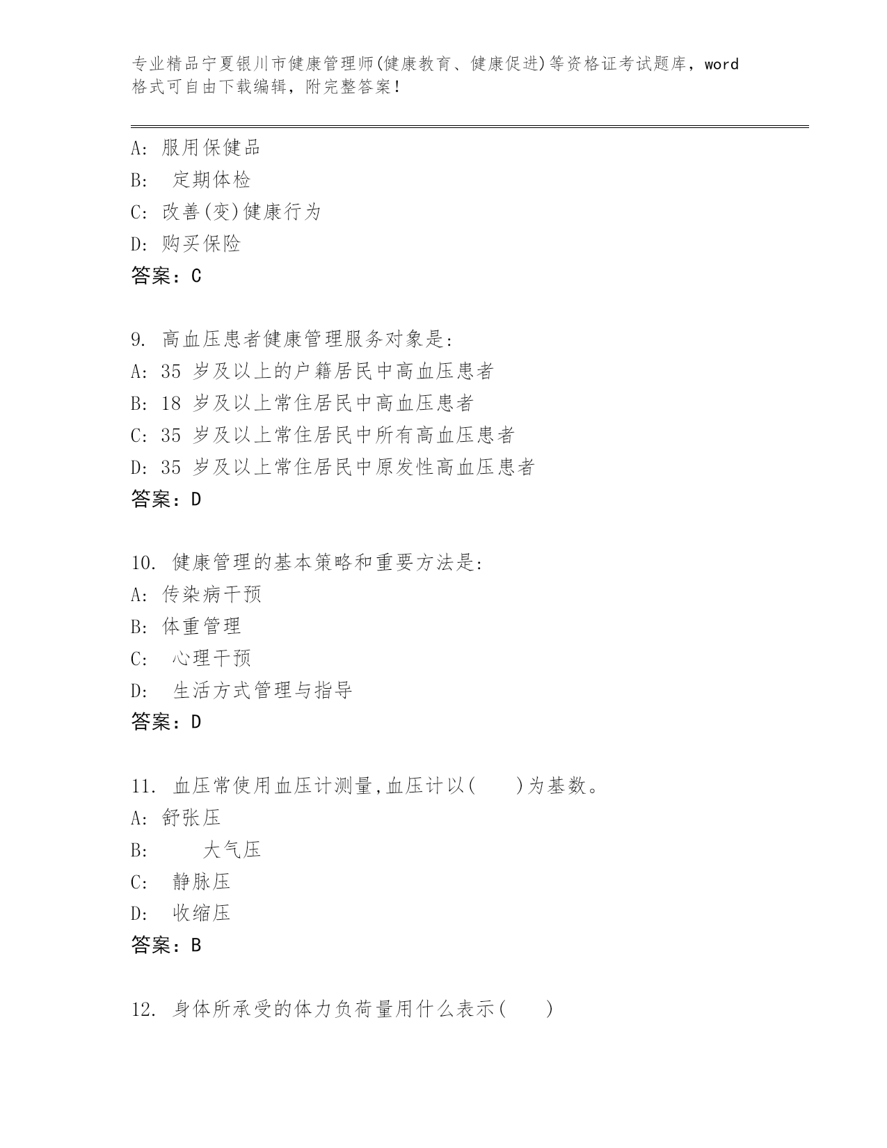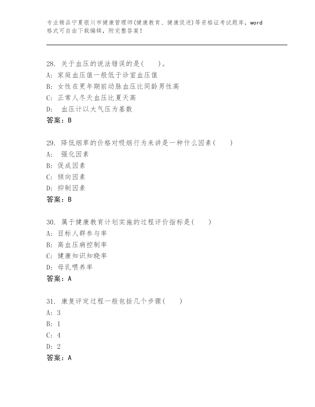 宁夏银川市健康管理师(健康教育、健康促进)等资格证考试真题附答案