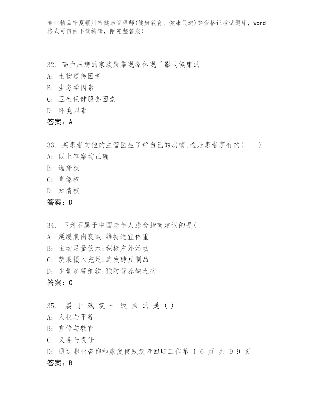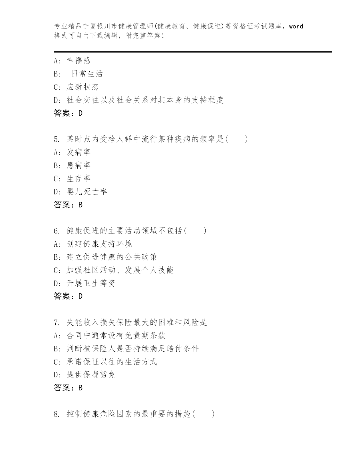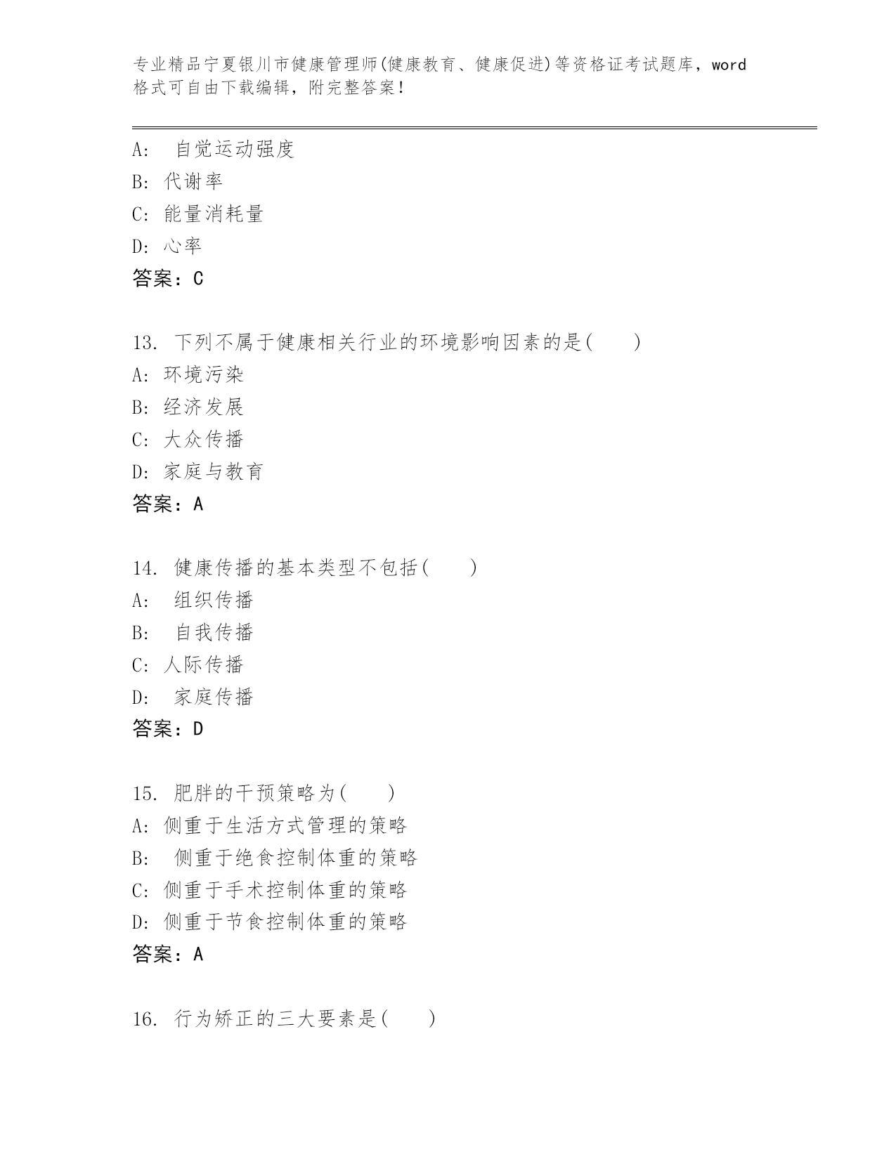宁夏银川市健康管理师(健康教育、健康促进)等资格证考试真题附答案
