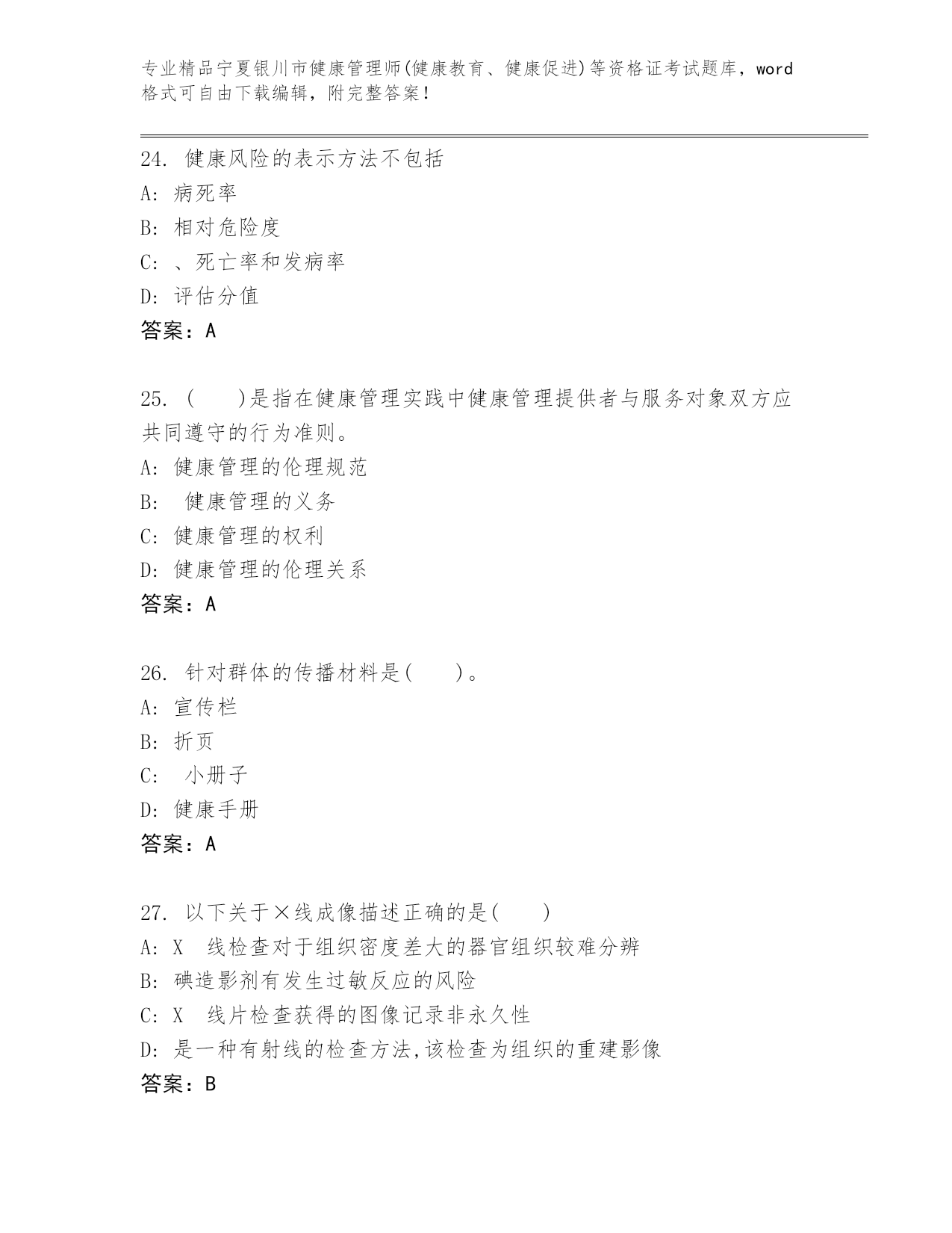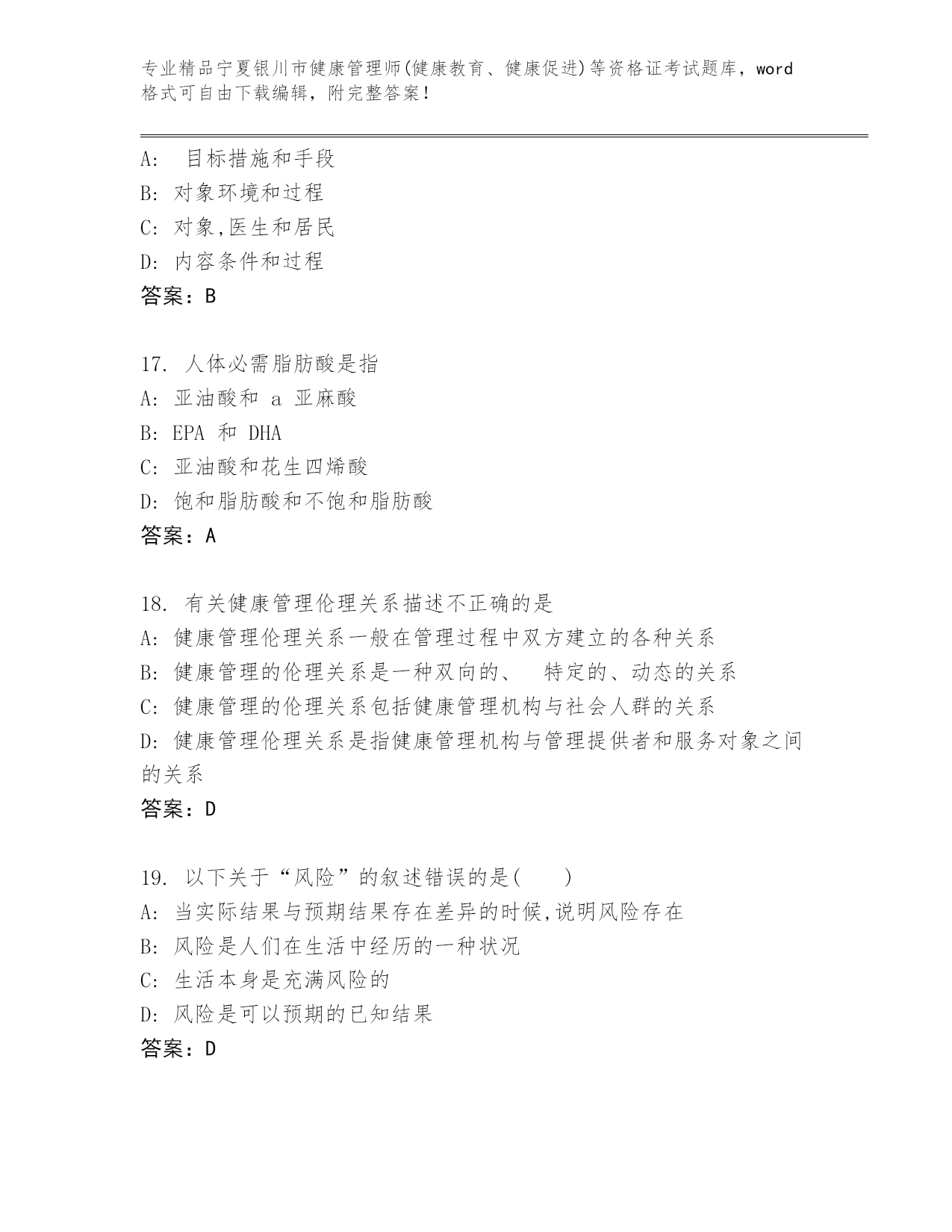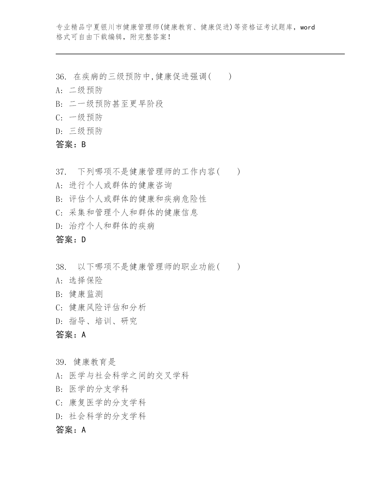 宁夏银川市健康管理师(健康教育、健康促进)等资格证考试真题附答案.docx