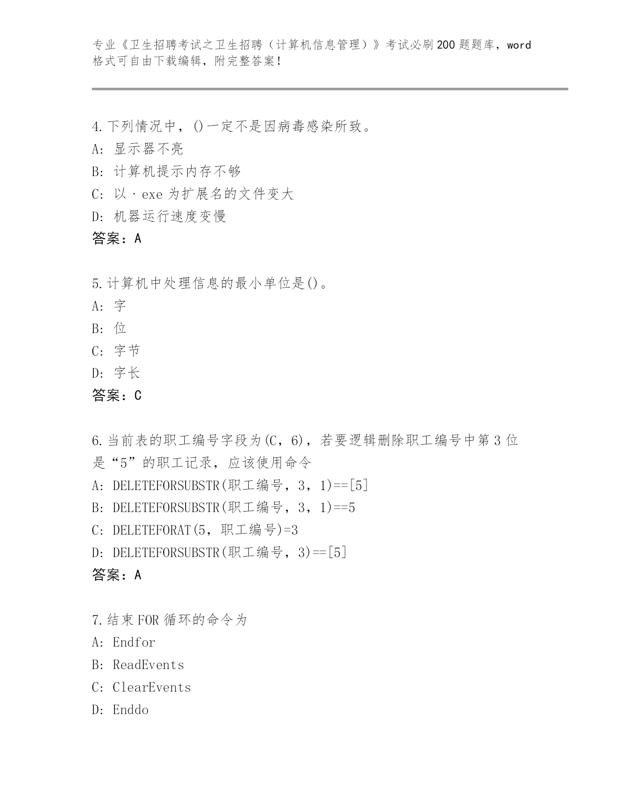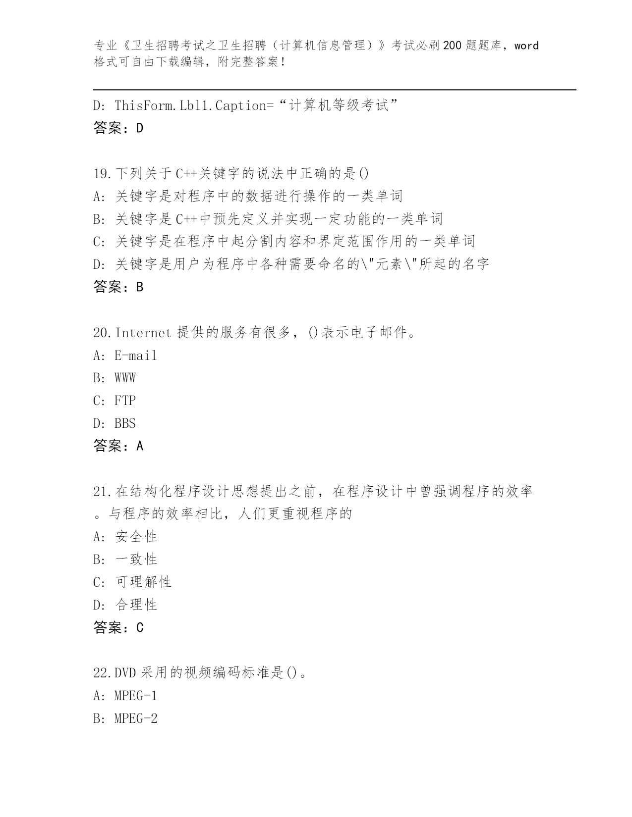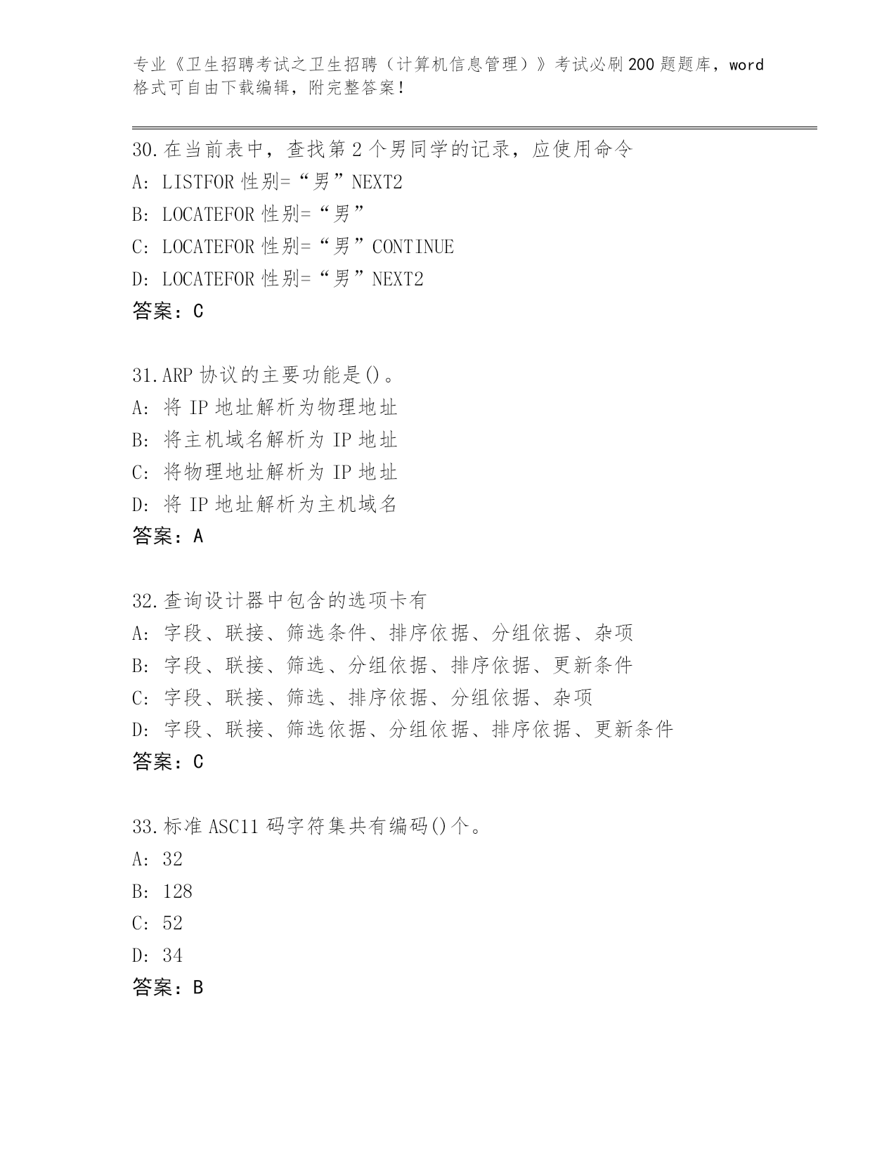 江苏省秦淮区内部使用《卫生招聘考试之卫生招聘(计算机信息管理)》考试必刷200题【预热题】