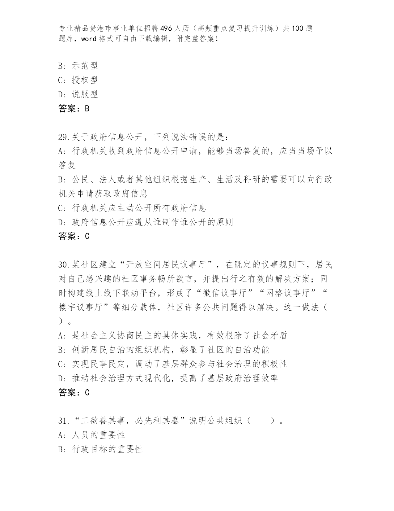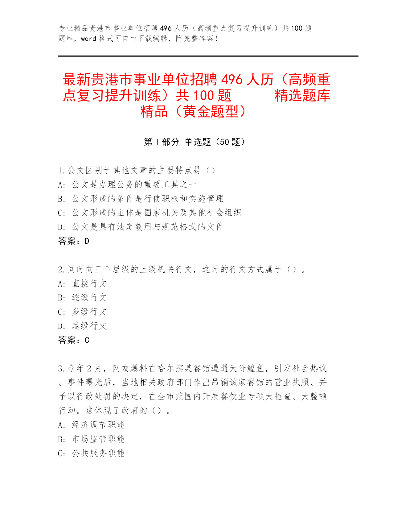 最新贵港市事业单位招聘496人历(高频重点复习提升训练)共100题精选题库精品(黄金题型).docx