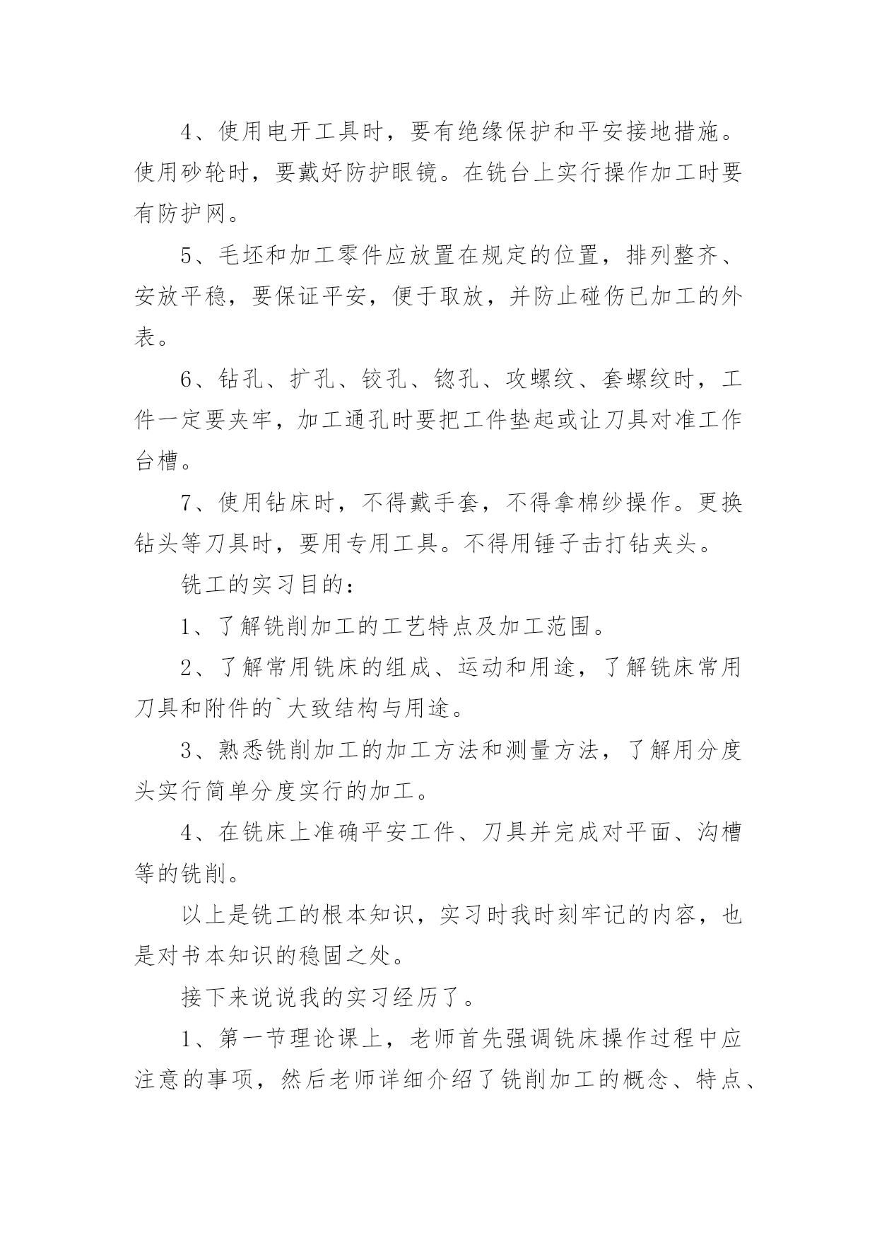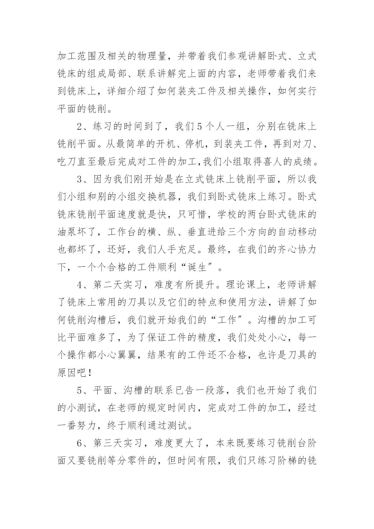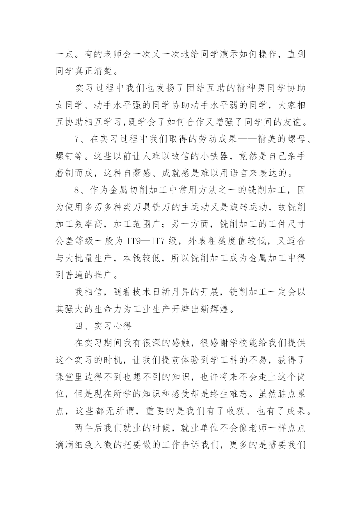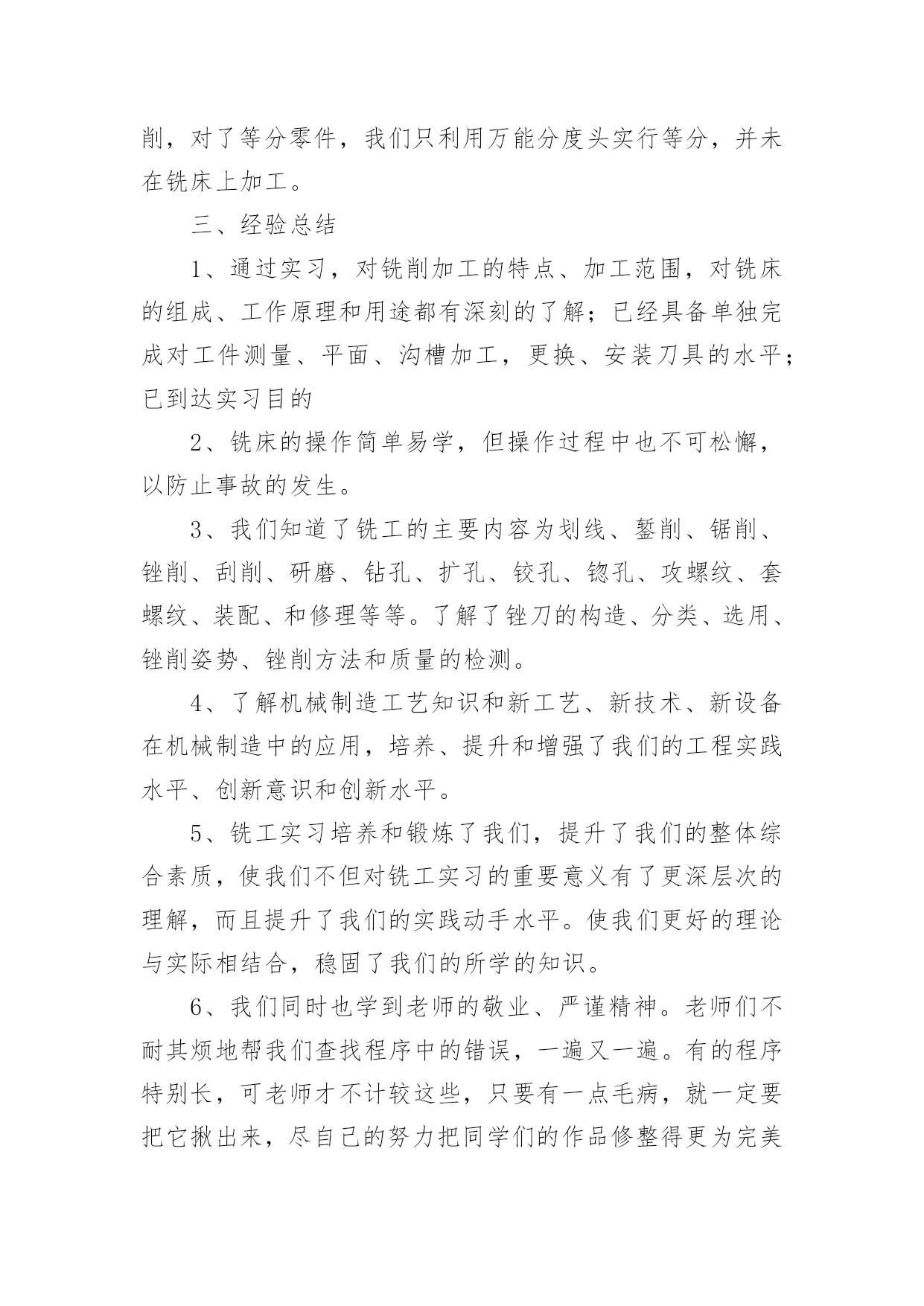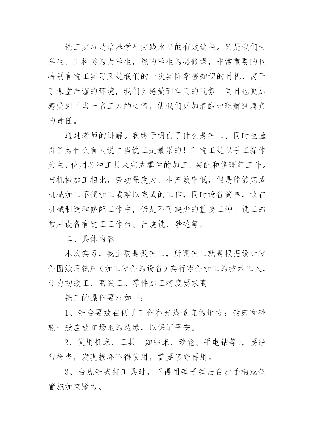机械设计实习报告机械设计实习报告在日常生活和工作中,大家逐渐认识到报告的重要性,报告具有成文事后性的特点。为了让您不再为写报告头疼,下面是小编精心整理的机械设计实习报告,仅供参考,希望能够帮助到大家。机械设计实习报告篇1机械设计专业金工实习报告金工实习是高等院校学生进行工程训练、培养工程意识、学习工艺知识、提高综合素质的一门实践性的基础课。短暂的一个月时间,我们经历了铸造、锻压、气焊、电焊、钳工、车工这几个工种,也算是把基础工业的几个工种过了一遍。我觉得实习生活和以前想象的不一样了,实习不是一件简单的事,并不是我们的假期,不是一件轻松的事,而是一件劳心劳力的事。在这个短暂的四个星期内,我学到许多在课堂里无法学到的东西,并在意志品质上得到了锻炼。在实习期间虽然很累、很苦,但我却感到很快乐!因为我们在学到了作为一名技工所必备的基本知识的同时还锻炼了自己的动手能力。前期的实习地点在大工工程训练中心,学习锻压,消失模,沙型铸造等方面的知识。我组设计的消失模是一个创意的小便池,上书“来也匆匆,去也冲冲”背后框住一个安踏的logo,和keepmoving,在制作泡沫模型的过程中,初步熟悉了各种工具的使用,例如用电烙铁笔给模型上花纹,用切割机切割泡沫小部件,用通电电热丝切割整片泡沫等等。沙型铸造分两步,先是简单的做一个模型,然后在接触一个比较复杂的,并以这个作为考试件。由浅入深,循序渐进。中后期的实习在学校轮机学院工程训练中心进行,分别进行焊接,钳工,车工,数控车床方面的实习。焊接是通过加热或加压(或两者并用),并且用(或不用)填充材料,使焊体形成原子间结合的一种加工方法。听了老师的介绍,我才知道目前60%-70%的金属出厂后还要经过焊接(再加工)才能使用。由此可见焊接在工业生产中应用之广泛。焊接方法种类很多,而我们要学习的仅仅是熔化焊中使用最广泛的两种--电焊和气焊。气焊,首先将铁板融化,然后再往里添焊丝。焊枪与焊丝分别以月牙形向前推进,但是必须慢且均匀,感觉有点像写毛笔字。电焊,有了气焊的'基础,再进行气焊就显得比较驾轻就熟了。而且只要一只手用钳子夹住焊条就可以了,比气焊还要好控制一些。所以在电焊的时候,我焊出来的药皮一敲就一长条都掉下来了,这和老师要求的标准一致,令我很高兴,但就是焊不直,让我很郁闷,看来每一个工种不是那么好掌握的,但是几天下来,我感觉对焊接有了比较好的理解与实践基础,实习的目的也就达到了。钳工,作为几个工种中最必不可少的工种,负责对金属进行初步的加工。我们实习的内容包括凿方铁,打磨平面,划线,锯掉多余部分,钻孔等等。钳工的工作就是要求要不怕累不怕苦,粗中有细,严谨认真。把面锉平的时候,必须一下一下来,把平面基本锉平之后(将1.金工实习让久在课堂的我切身的感受到作为一名工人的苦与乐,同时检验了自己所学的知识。2.了解机械制造工艺知识和新工艺、新技术、新设备在机械制造中的应用,培养、提高和加强了我们的工程实践能力、创新意识和创新能力。3.我们同时也学到老师的敬业、严谨精神。有的老师会一次又一次地给同学演示如何操作,直到同学真正清楚。实习过程中我们也发扬了团结互助的精神男同学帮助女同学、动手能力强的同学帮助动手能力弱的同学,大家相互帮助相互学习,既学会了如何合作又增强了同学间的友谊。4.金工实习培养和锻炼了我们,提高了我们的整体综合素质,使我们不但对金工实习的重要意义有了更深层次的认识,而且提高了我们的实践动手能力。使我们更好的理论与实际相结合,巩固了我们的所学的知识。金工实习时间并不长,但是在这四周中我从对基础工业的一点感性认识,通过自己的亲手实践,慢慢升华为理性的认识。时间虽然不长,但是收获很大,对我以后的理论学习有了很好的实践基础,我想以后各方面更加会得心应手吧!机械设计实习报告篇2一、实习目的终于等到了实习的时候了,很早以前就从师兄那里打听到了有实习,那时候能够说是急迫地期盼着这个天的到来,因为大家再也无法满足于课堂教学,即使从同学朋友那里了解到实习并非像想象中的那样是一件快乐的事情。蓦然回首,转眼为期一周的铣工实习结束了。在实习期间虽然很累、很苦,但我却感到很快乐!因为我们在学到了作为一名铣工所必备的知识的同时还锻炼了自己的动手水平。而且也让我更深刻地体会到伟大的诗人李白那一名言:只要功夫深,铁杵磨成针的真正内涵!我们实习的第一天看了关于铣工实习的相关的知识与我铣工实习过程中的考前须知的碟片。看到那飞转的机器、飞溅的铁花,令我既担忧又冲动。担忧的是,如果那飞转的机器隆隆声让人心惊肉跳和那鲜红的铁花四处飞溅的发出耀眼的的光辉令人眼花缭乱;冲动的是,等待了将近一年的铣工实习就要开始了。这是作为学生的我们第一次进入工厂当令人尊敬的工人,也是第一次到每一个工科学子一试身手的实习基地。其实,对我们这些工科的学生来说这是