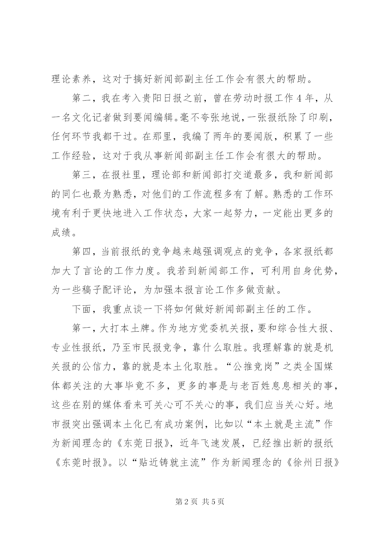 新闻部主任竞聘演讲稿:信心院报,接力前行 (2)