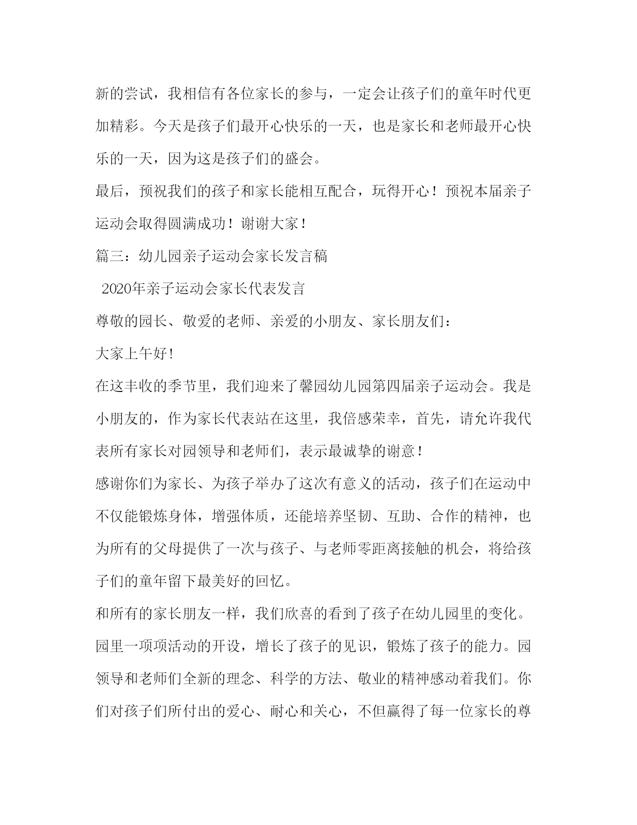 2022幼儿园亲子运动会讲话关于亲子运动会的发言稿.docx