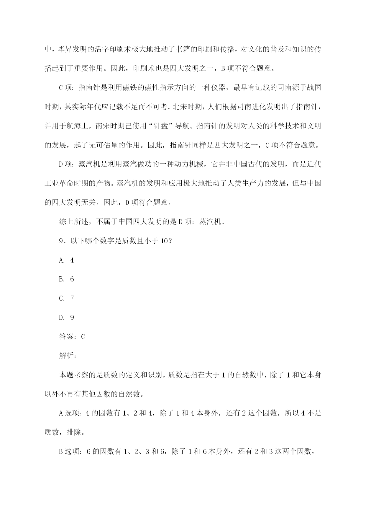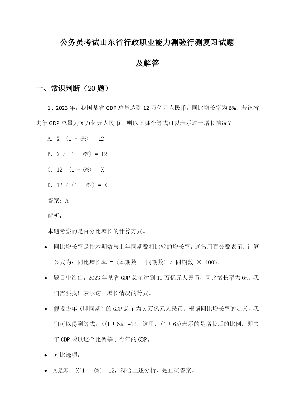 公务员考试山东省行政职业能力测验行测复习试题及解答