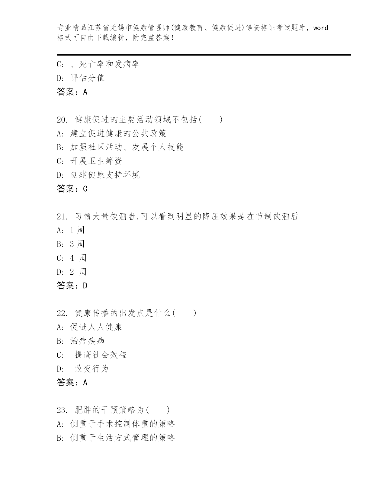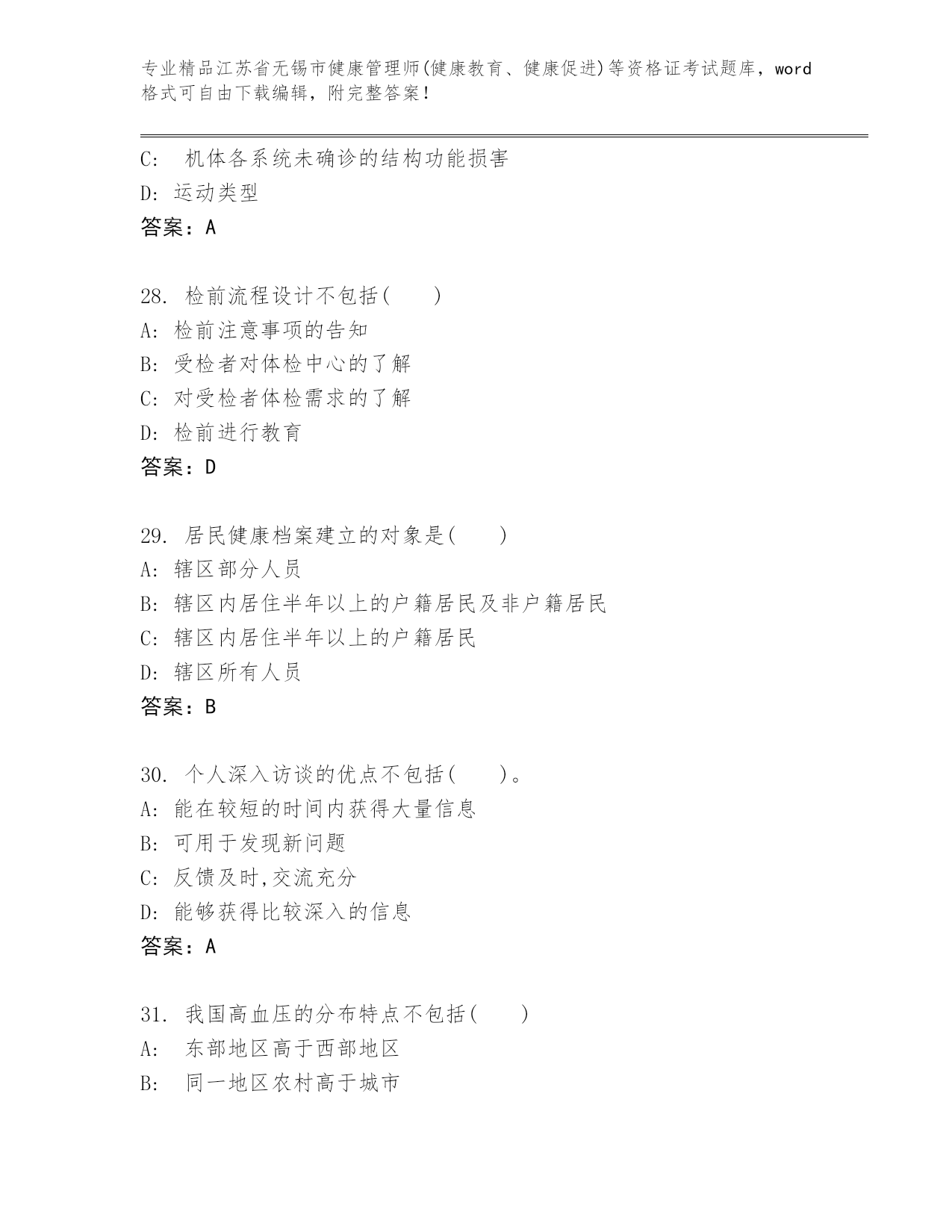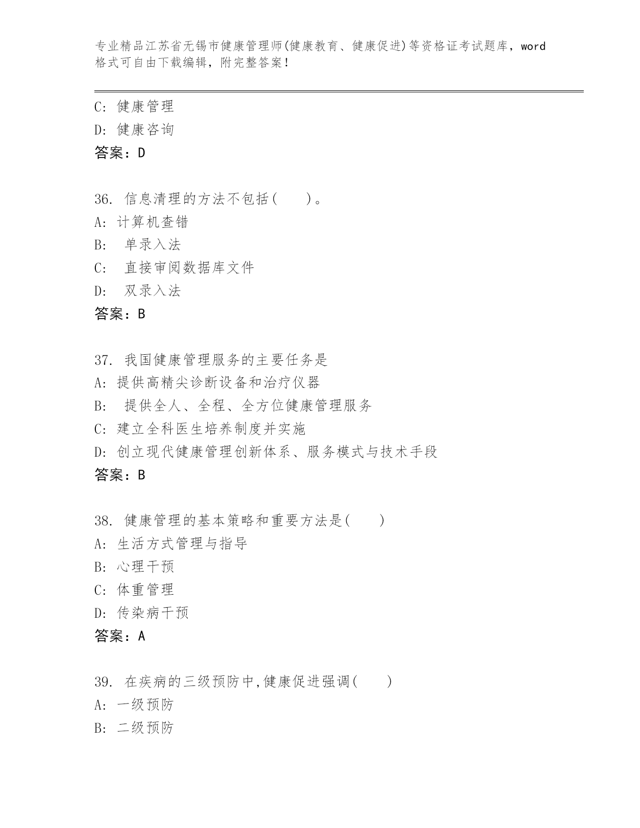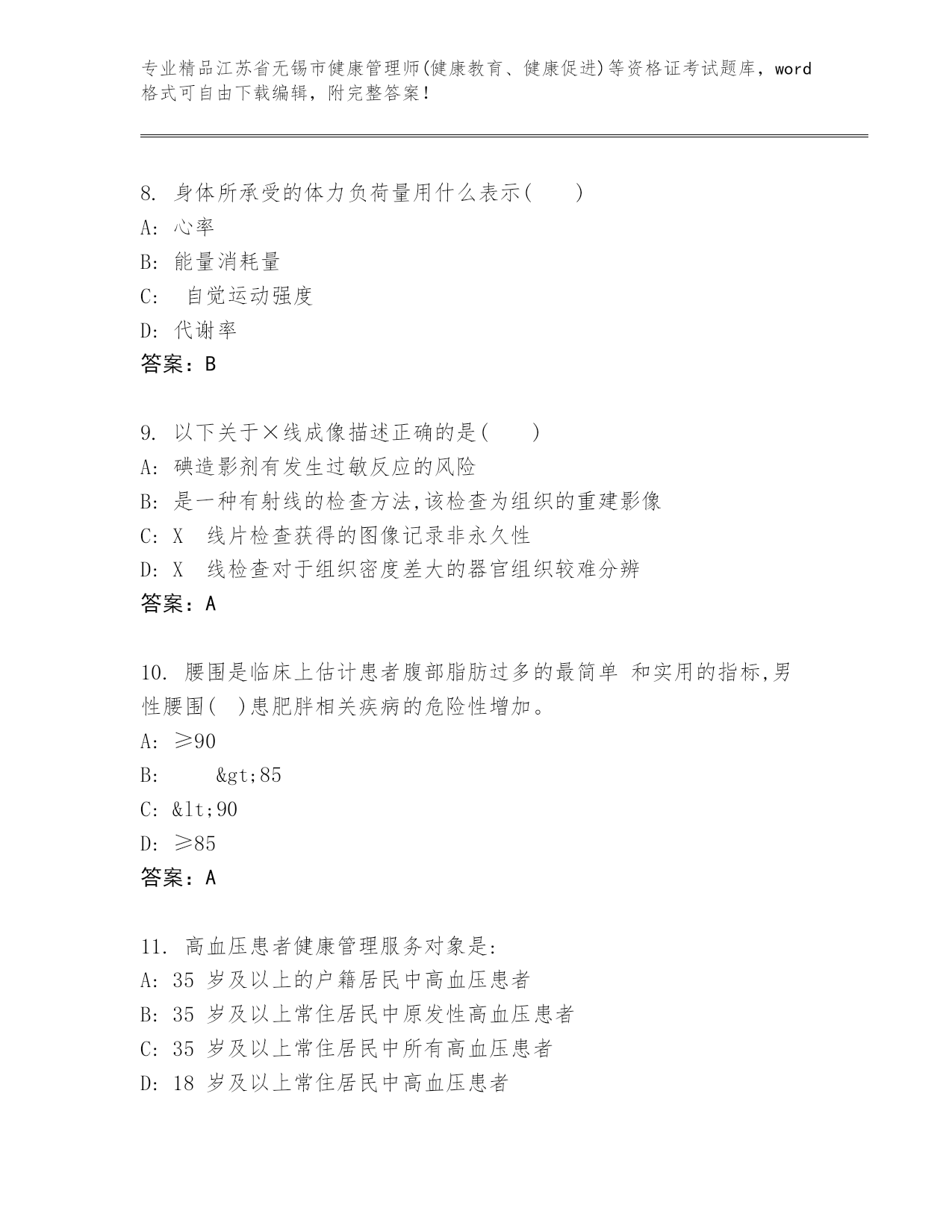 江苏省无锡市健康管理师(健康教育、健康促进)等资格证考试大全答案免费.docx