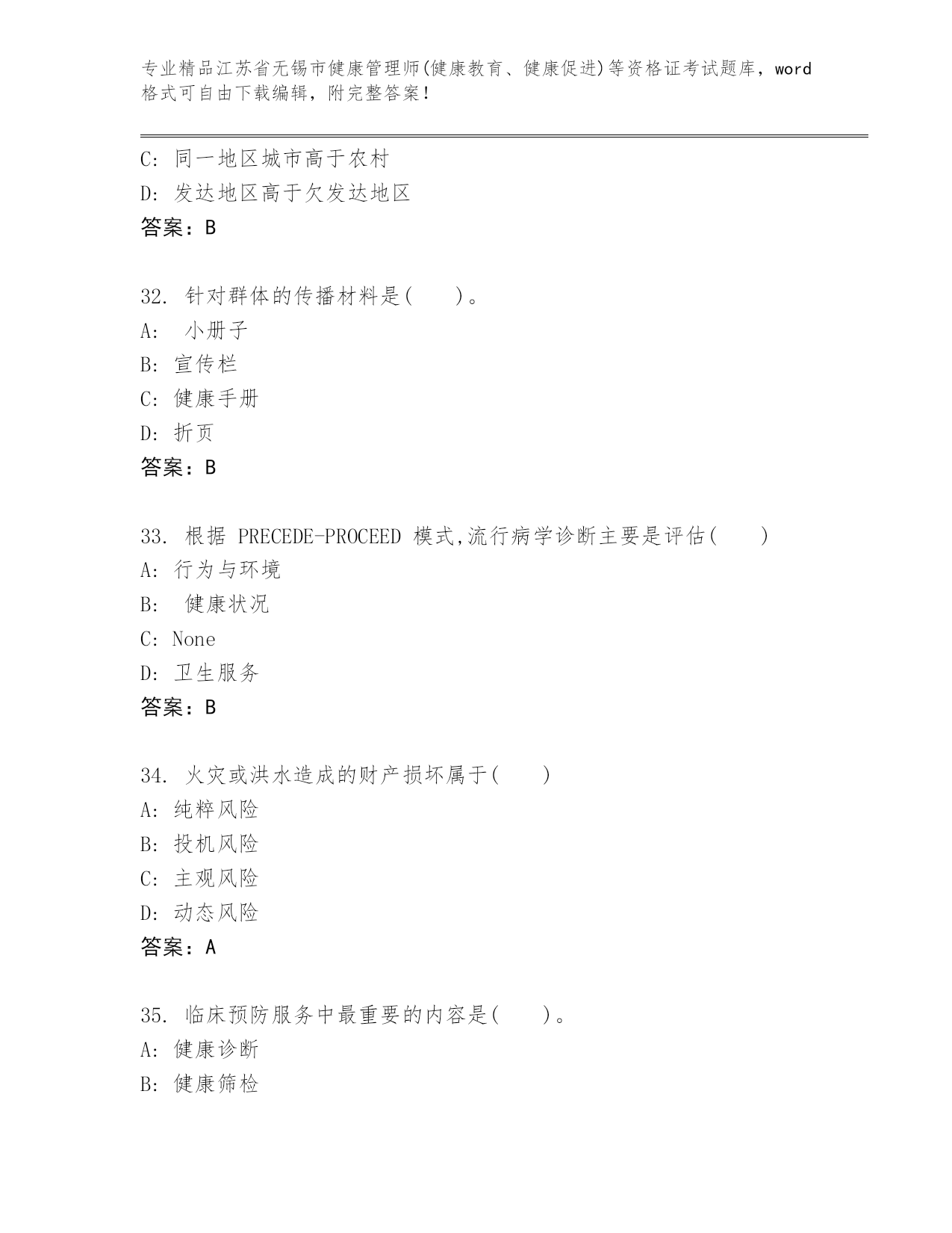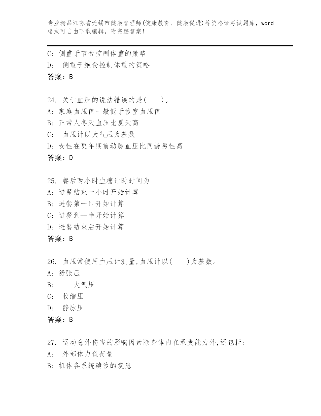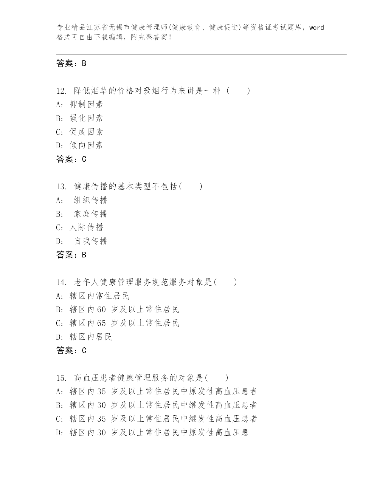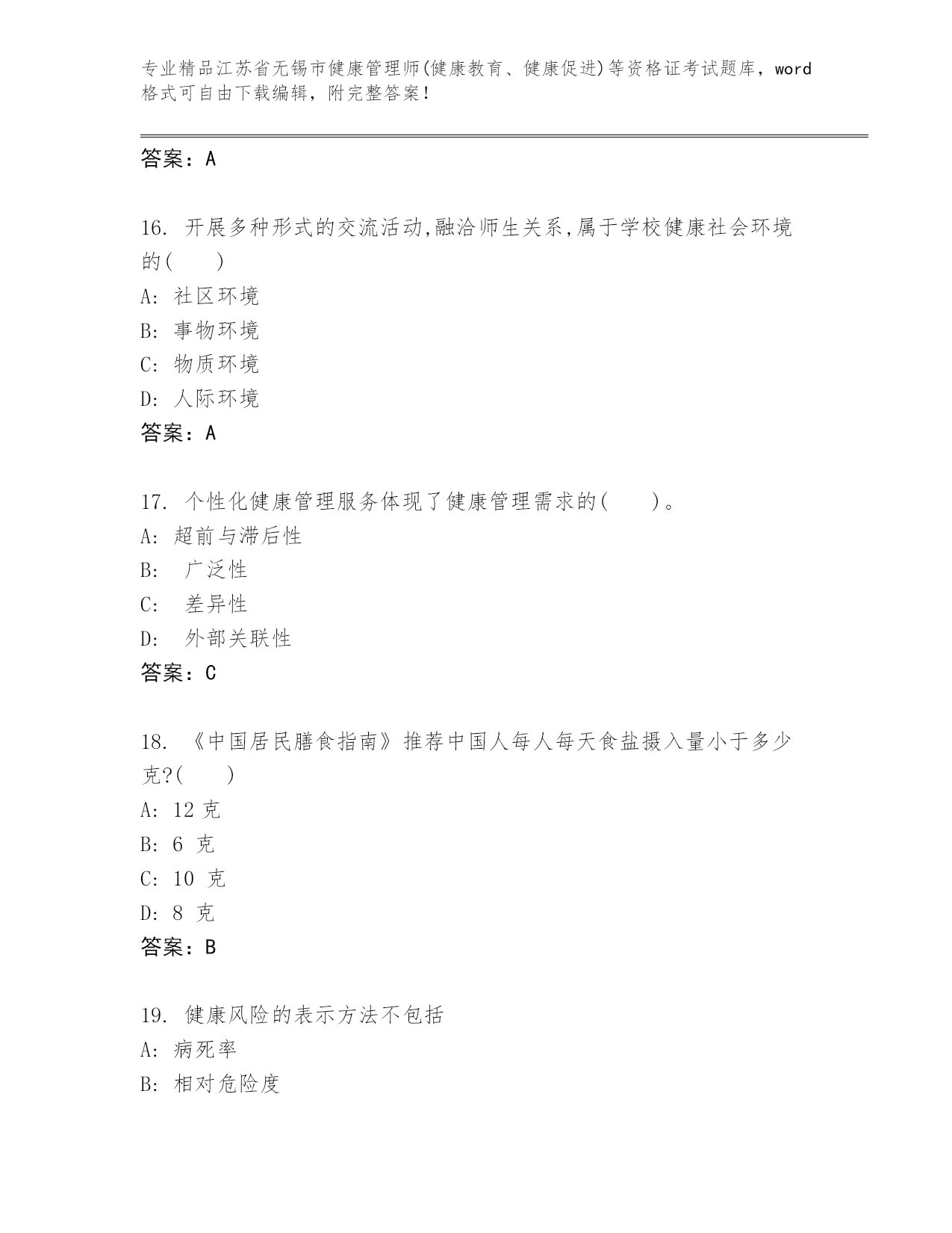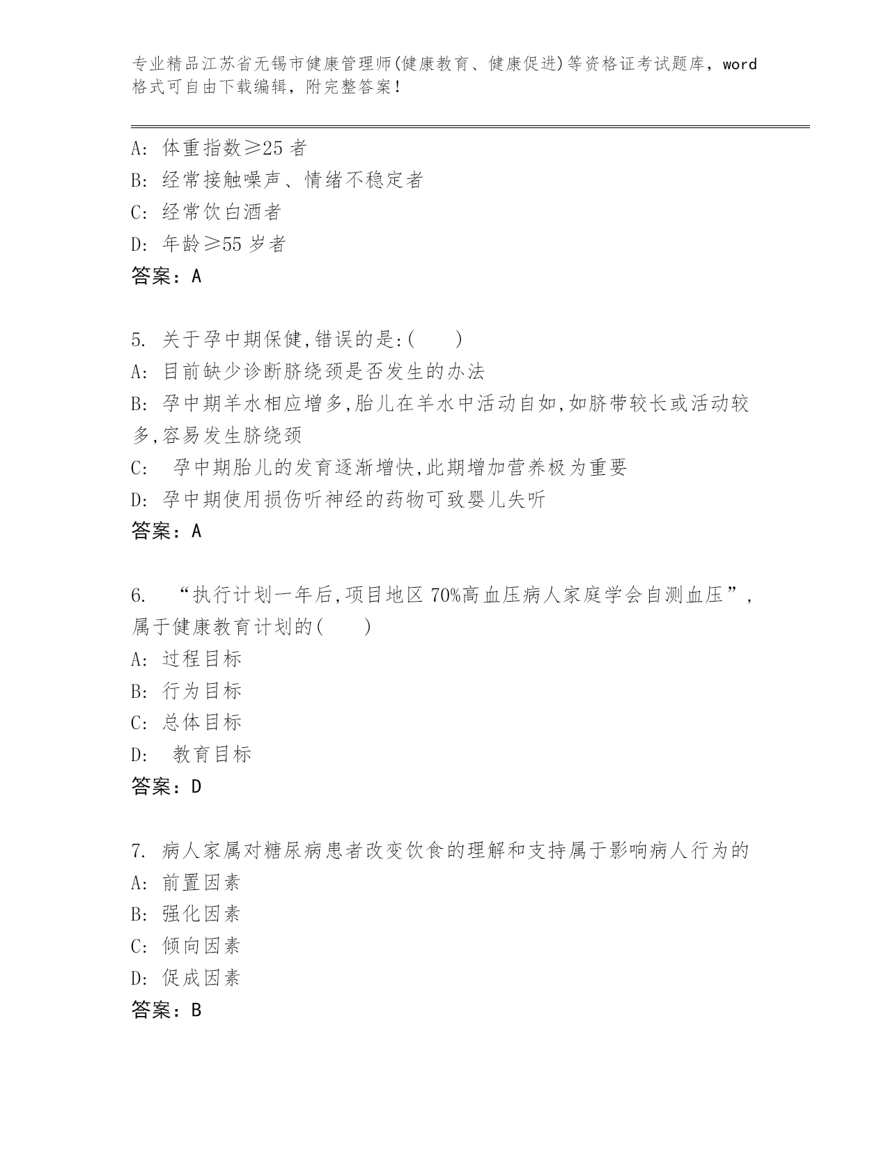 江苏省无锡市健康管理师(健康教育、健康促进)等资格证考试大全答案免费.docx