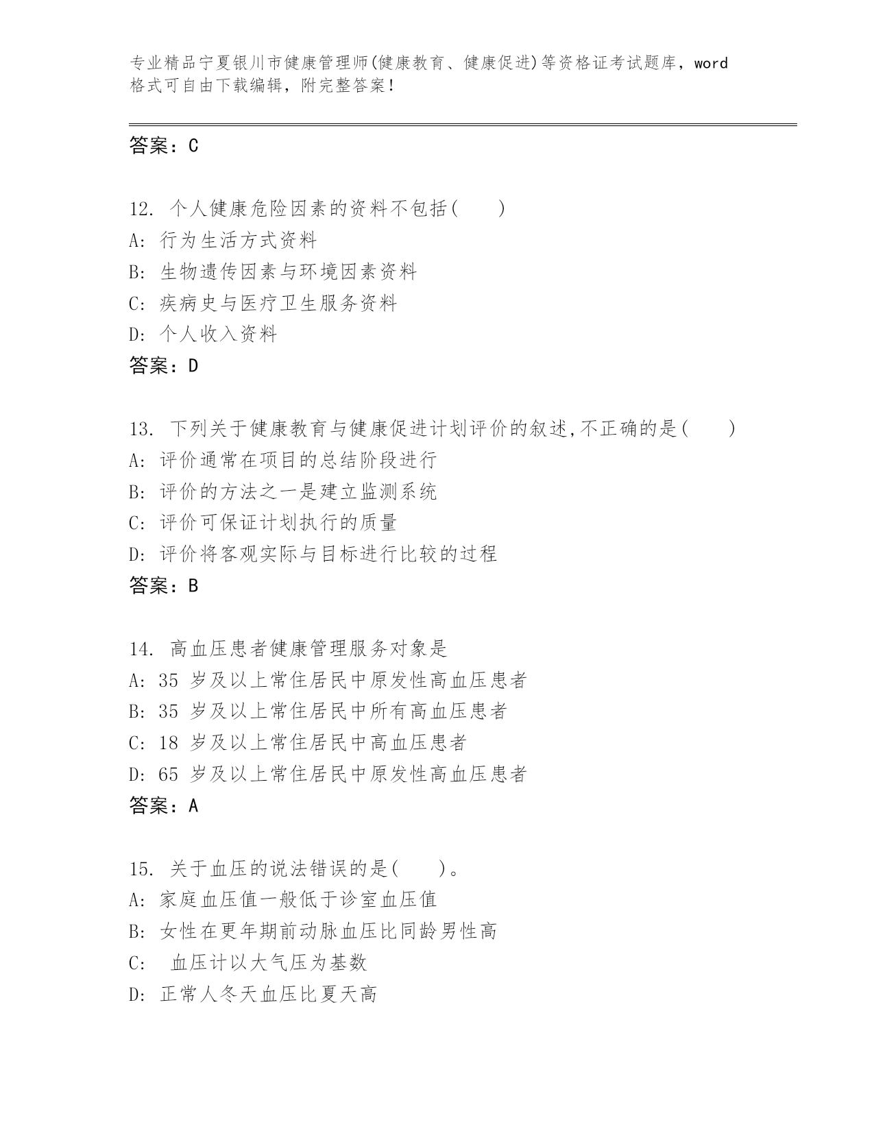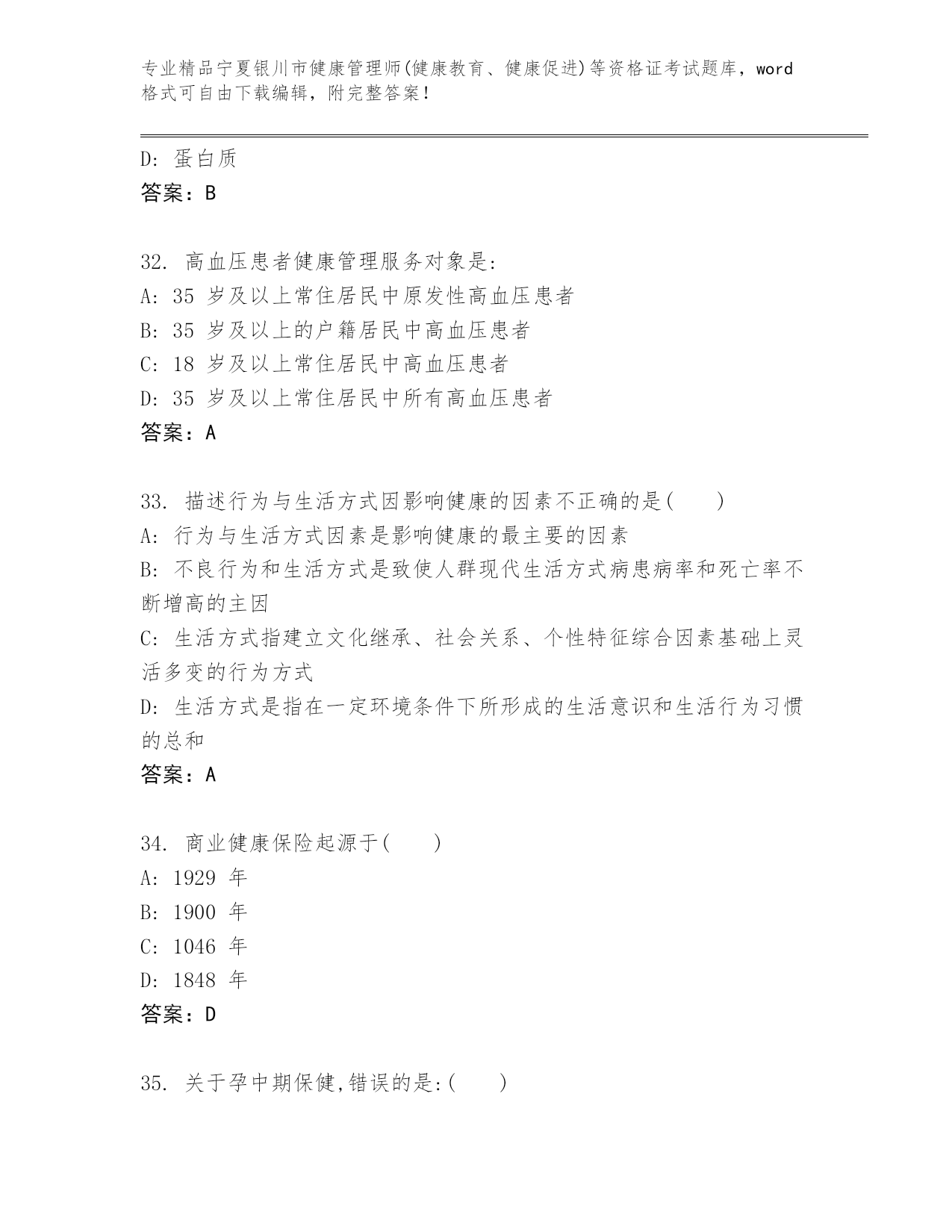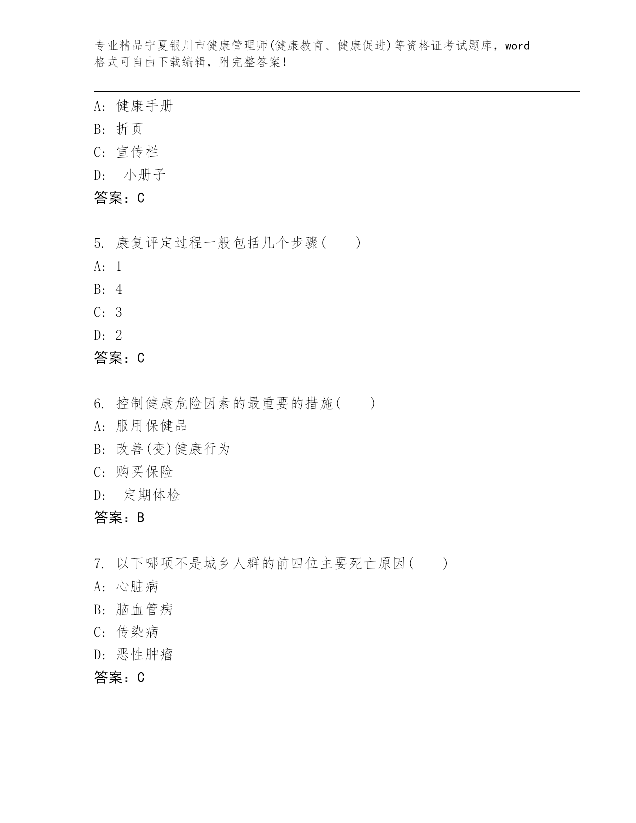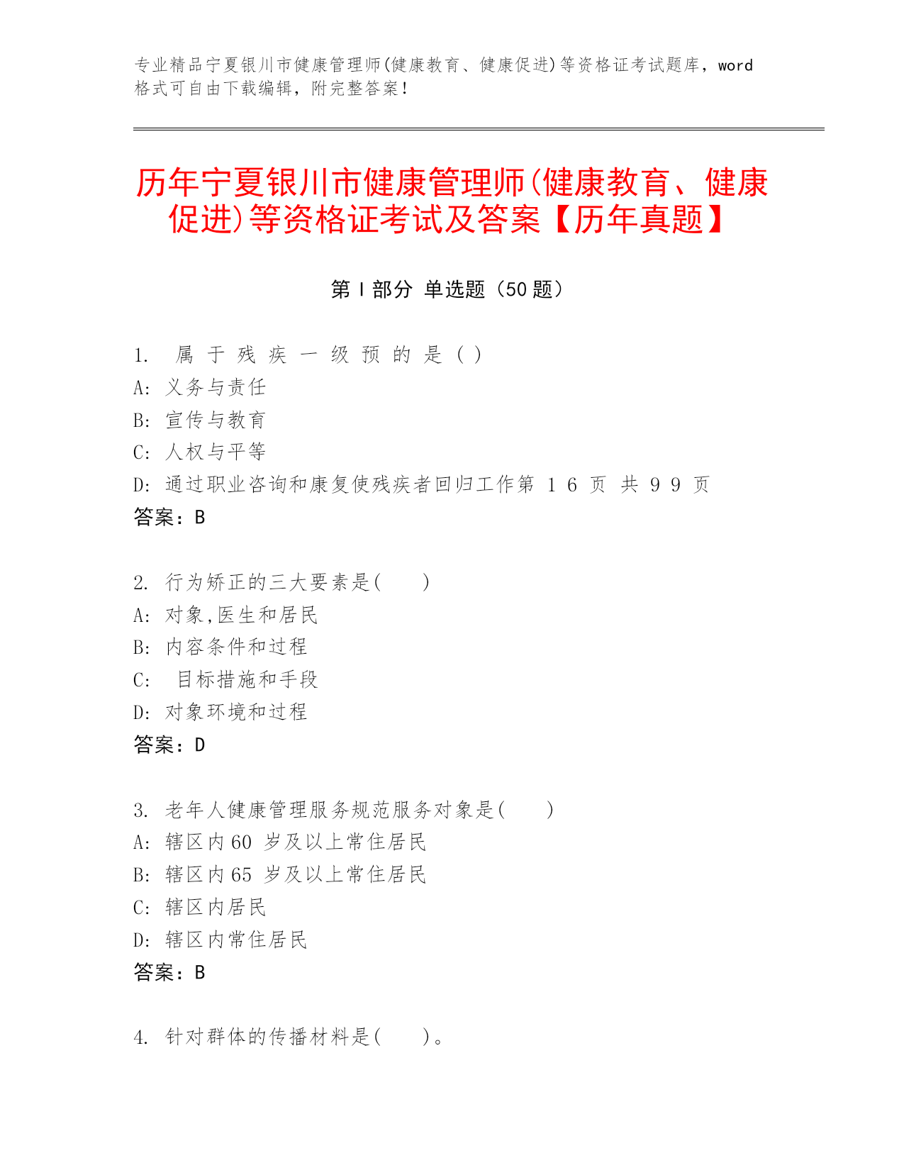 历年宁夏银川市健康管理师(健康教育、健康促进)等资格证考试及答案【历年真题】.docx