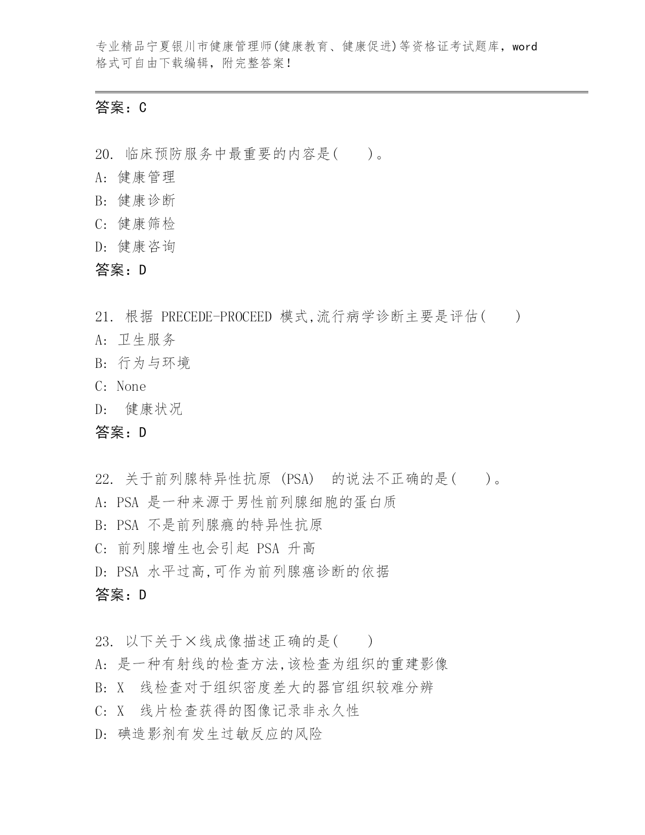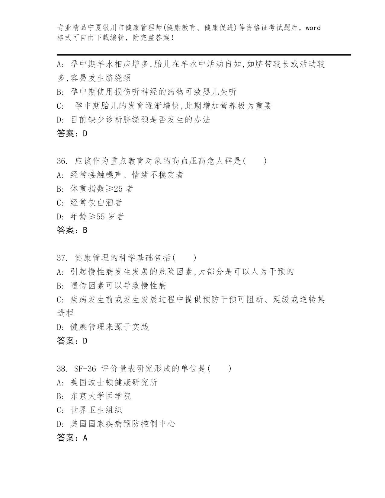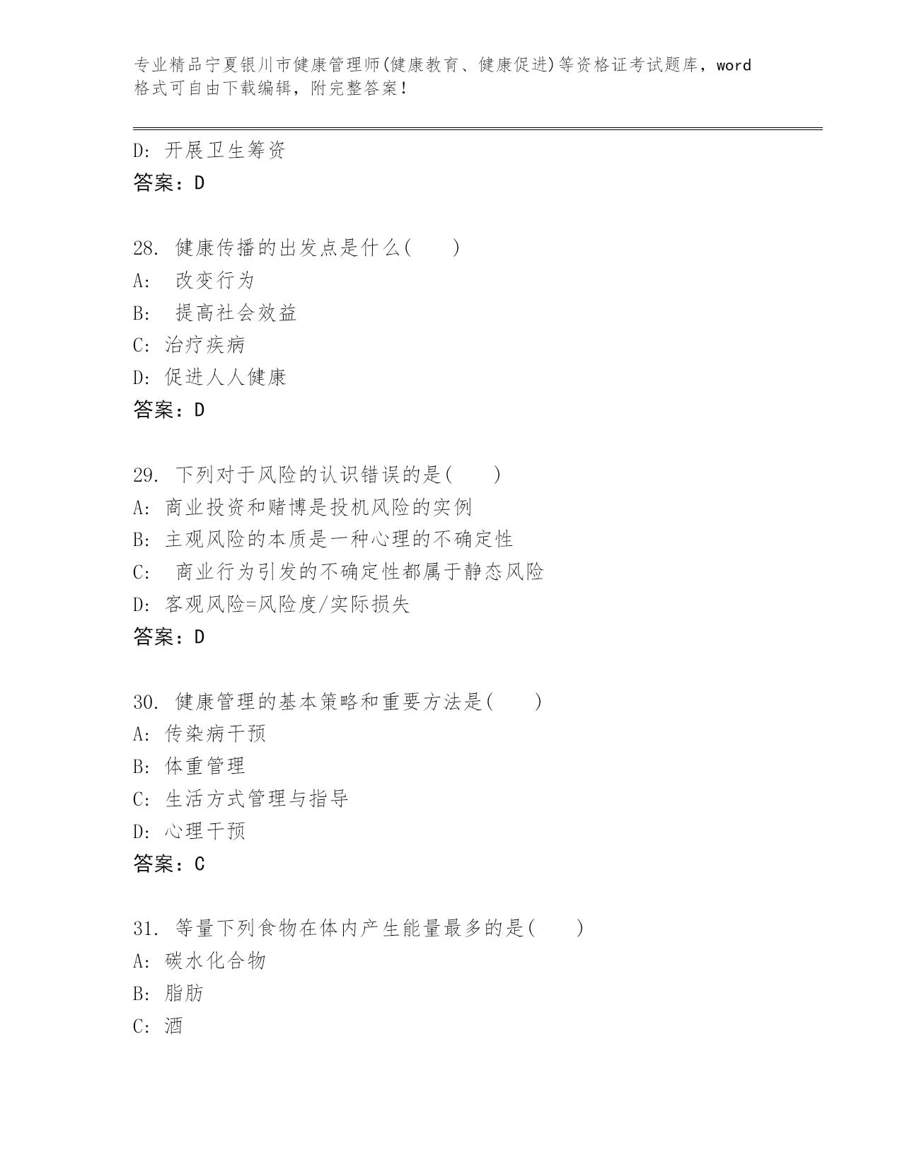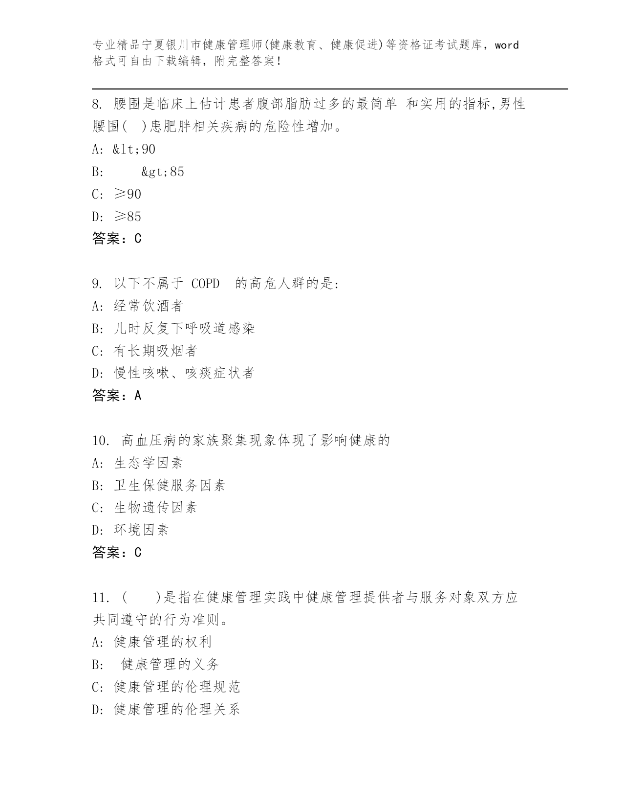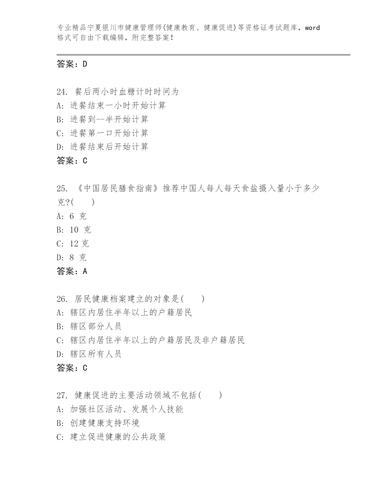 历年宁夏银川市健康管理师(健康教育、健康促进)等资格证考试及答案【历年真题】.docx