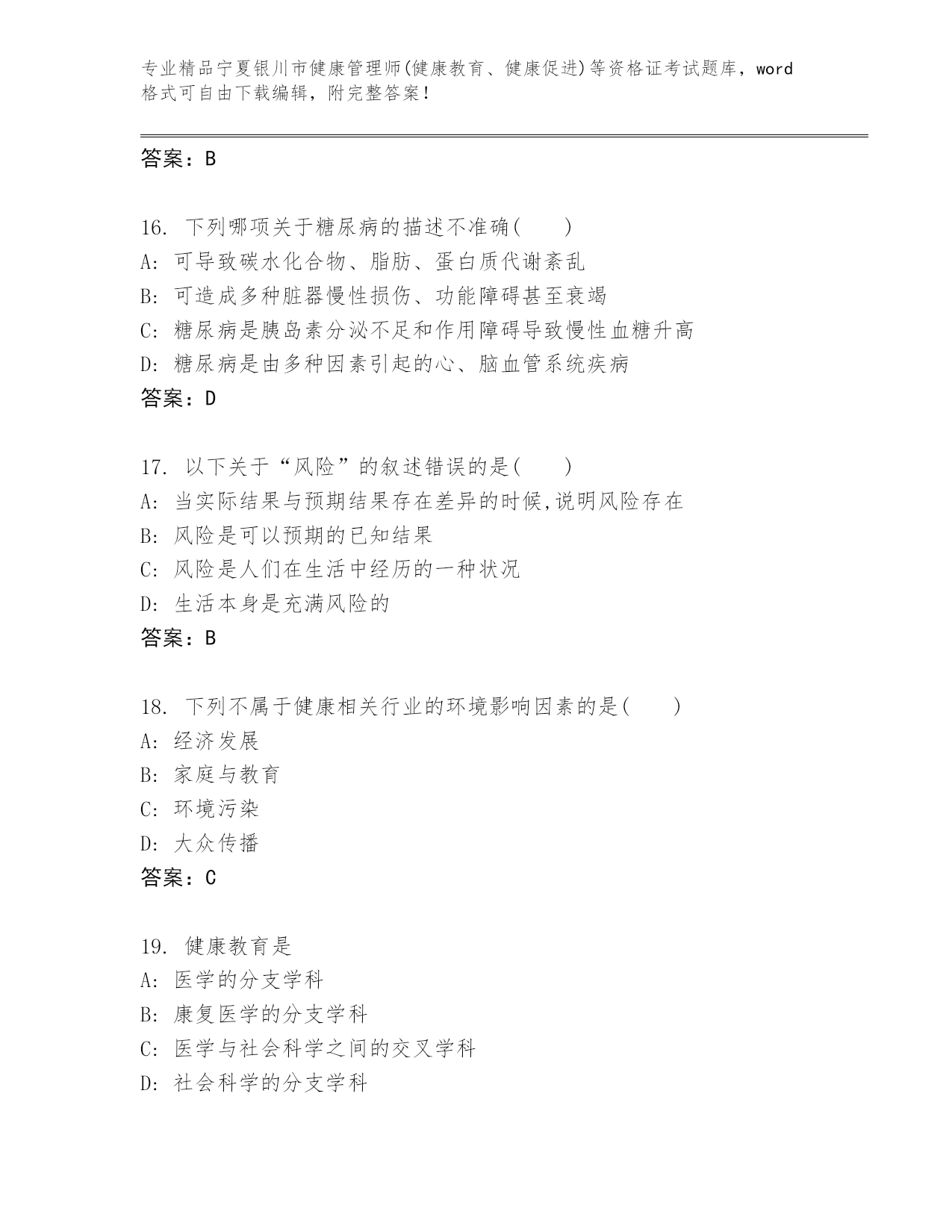 历年宁夏银川市健康管理师(健康教育、健康促进)等资格证考试及答案【历年真题】