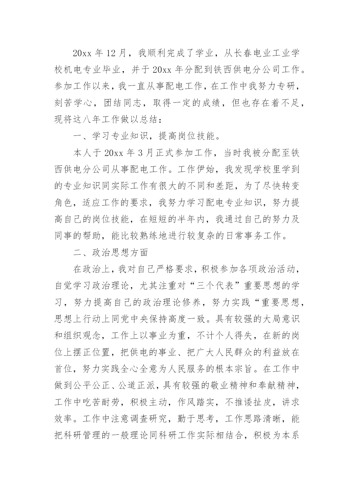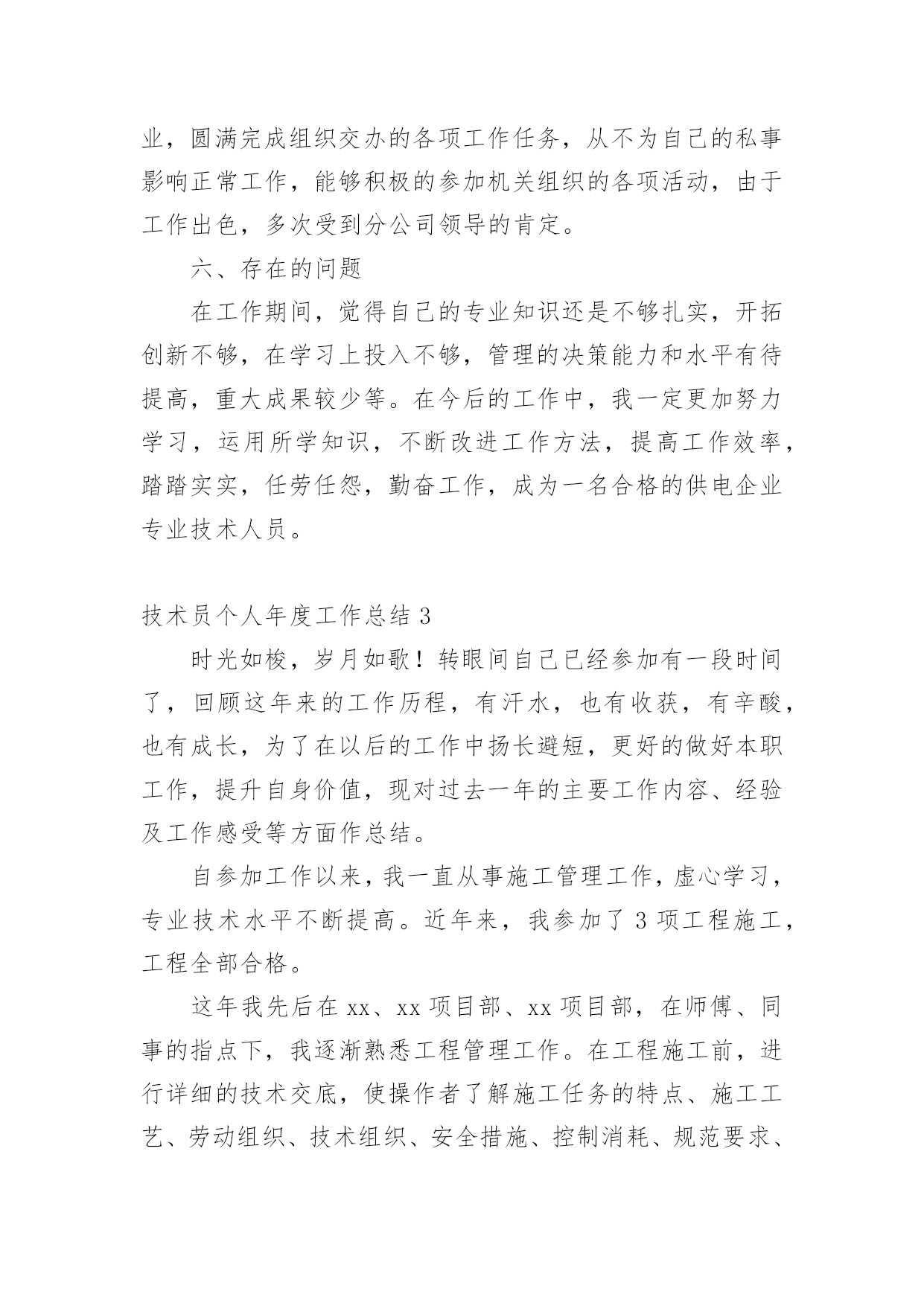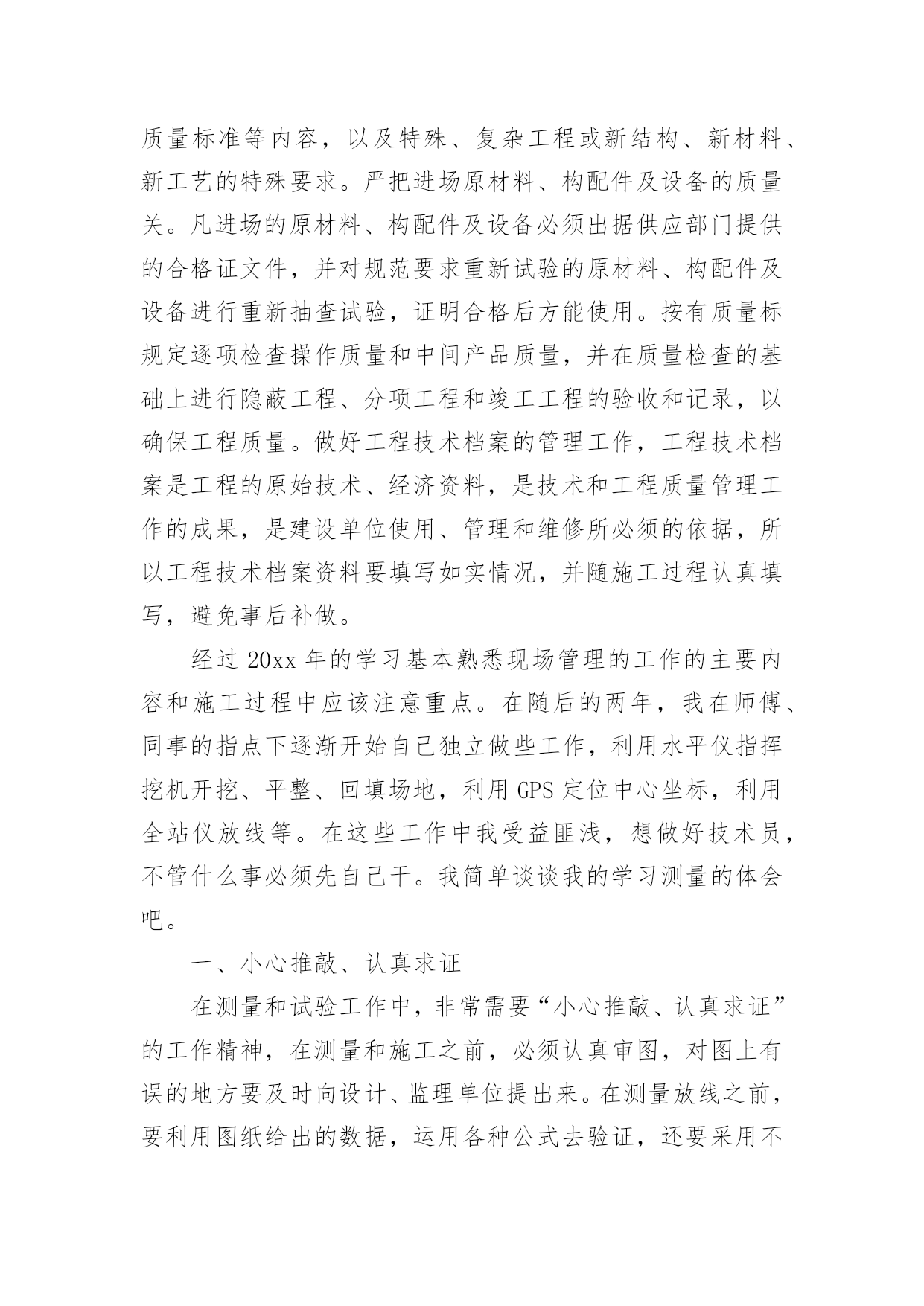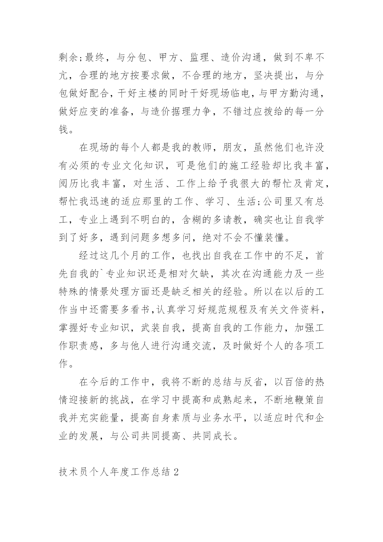 技术员个人年度工作总结总结是事后对某一时期、某一项目或某些工作进行回顾和分析,从而做出带有规律性的结论,写总结有利于我们学习和工作能力的提高,不妨坐下来好好写写总结吧。总结一般是怎么写的呢?以下是小编收集整理的技术员个人年度工作总结,希望能够帮助到大家。技术员个人年度工作总结1时光飞逝,转眼间3个月的试用期立刻过去,回顾这3个月来的工作历程内心不禁感慨万千。对刚踏入一个陌生工地的我是痛苦并欢乐着,总结这段工作中的经验和教训,有利于在以后的工作中扬长避短,更好的做好技术工作。作为一名技术员,不仅仅要有过硬的专业理论文化知识,还应当具备丰富的现场实际操作经验,更应具备与分包、甲方、监理、造价沟通的能力。从踏入工地的那一刻起,我自我就清楚的明白,自我应当干些什么。首先,我要对图纸有一个透彻的理解,做到工人看不到的我能看到,图纸中的重点难点做好交底,对应提的配电箱做好具体的统计;其次,对前阶段干的工程有个细致的了解,包括资料、现场、材料等,重点查处楼里有毛病、错误的地方,并做详细的记录;再者,对材料计划的提取,做到省钱但不违反规范、图纸要求,掌握现场材料,并计算出以后将用的材料,配管及防雷立刻结束,争取做到不浪费,可是多剩余;最终,与分包、甲方、监理、造价沟通,做到不卑不亢,合理的地方按要求做,不合理的地方,坚决提出,与分包做好配合,干好主楼的同时干好现场临电,与甲方勤沟通,做好应变的准备,与造价据理力争,不错过应拨给的每一分钱。在现场的每个人都是我的教师,朋友,虽然他们也许没有必须的专业文化知识,可是他们的施工经验却比我丰富,阅历比我丰富,对生活、工作上给予我很大的帮忙及肯定,帮忙我迅速的适应那里的工作、学习、生活;公司里又有总工,专业上遇到不明白的,含糊的多请教,确实也让自我学到了好多,遇到问题多想多问,绝对不会不懂装懂。经过这几个月的工作,也找出自我在工作中的不足,首先自我的`专业知识还是相对欠缺,其次在沟通能力及一些特殊的情景处理方面还是缺乏相关的经验。所以在以后的工作当中还需要多看书,认真学习好规范规程及有关文件资料,掌握好专业知识,武装自我,提高自我的工作能力,加强工作职责感,多与他人进行沟通交流,及时做好个人的各项工作。在今后的工作中,我将不断的总结与反省,以百倍的热情迎接新的挑战,在学习中提高和成熟起来,不断地鞭策自我并充实能量,提高自身素质与业务水平,以适应时代和企业的发展,与公司共同提高、共同成长。技术员个人年度工作总结220xx年12月,我顺利完成了学业,从长春电业工业学校机电专业毕业,并于20xx年分配到铁西供电分公司工作。参加工作以来,我一直从事配电工作,在工作中我努力专研,刻苦学心,团结同志,取得一定的成绩,但也存在着不足,现将这八年工作做以总结:一、学习专业知识,提高岗位技能。本人于20xx年3月正式参加工作,当时我被分配至铁西供电分公司从事配电工作。工作伊始,我发现学校里学到的专业知识同实际工作有很大的不同和差距,为了尽快转变角色,适应工作的要求,我努力学习配电专业知识,努力提高自己的岗位技能,在短短的半年内,我通过自己的努力及同事的帮助,能比较熟练地进行较复杂的日常事务工作。二、政治思想方面在政治上,我对自己严格要求,积极参加各项政治活动,自觉学习政治理论,尤其注重对“三个代表”重要思想的学习,努力提高自己的政治理论修养,努力实践“重要思想,思想上行动上同党中央保持高度一致。具有较强的大局意识和组织观念,工作上以事业为重,不计个人得失,在新的岗位上摆正位置,把供电的事业、把广大人民群众的利益放在首位,努力实践全心全意为人民服务的根本宗旨。在工作中做到公平公正、公道正派,具有较强的敬业精神和奉献精神,工作中吃苦耐劳,积极主动,作风踏实,不推诿扯皮,讲求效率。工作中注意调查研究,勤于思考,工作思路清晰,能把科研管理的一般理论同科研工作实际相结合,积极为本系统制订符合实际的科研发展目标和科研发展措施献计献策。在大是大非和原则面前做到毫不含糊,在供电事业发展与改革中较好地发挥了一个员工应有的表率作用。三、安全生产方面在实际工作中,我能严格按照市公司和分公司领导在安全生产上的要求去做,把安全生产放在第一位,因为供电企业安全是最主要的`。在公司举行的培训与考试中都能较好的完成。认真履行工作职责,严格执行相关安全规定,在八年的工作中,从未出现过安全事故,为分公司的安全生产做出了自己的贡献。四、业务能力方面从参加工作以来,努力学习本专业的理论知识和专业技能,重视不断提高自己的业务水平和教学能力,并根据供电企业管理工作的实际需要,通过业余时间以不同形式学习,努力提高自己的专业技术能力和水平。通过多年的努力,本人的专业技术和驾驭工作的能力得到了较大幅度的提高,为更好的完成各项工作任务奠定了坚实的基础。并在20xx年被