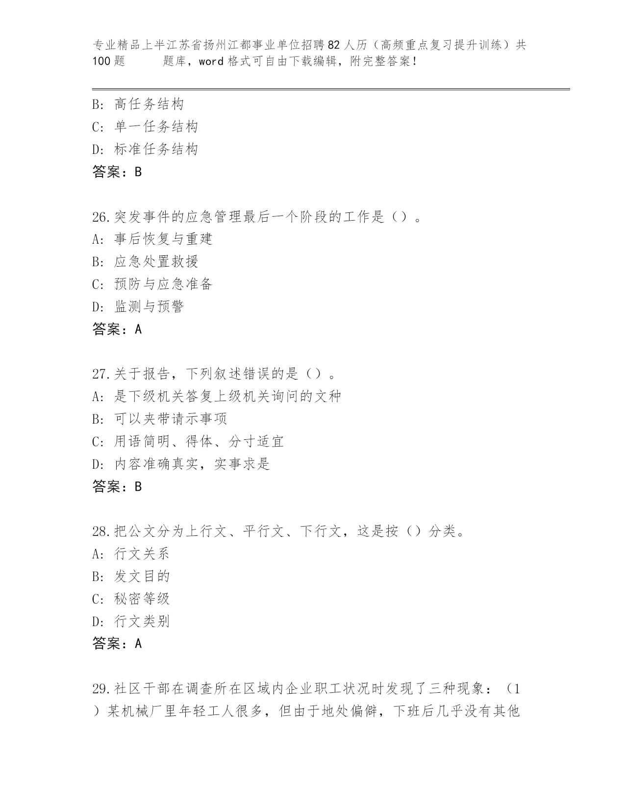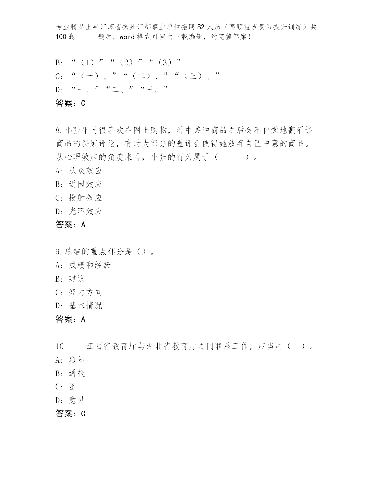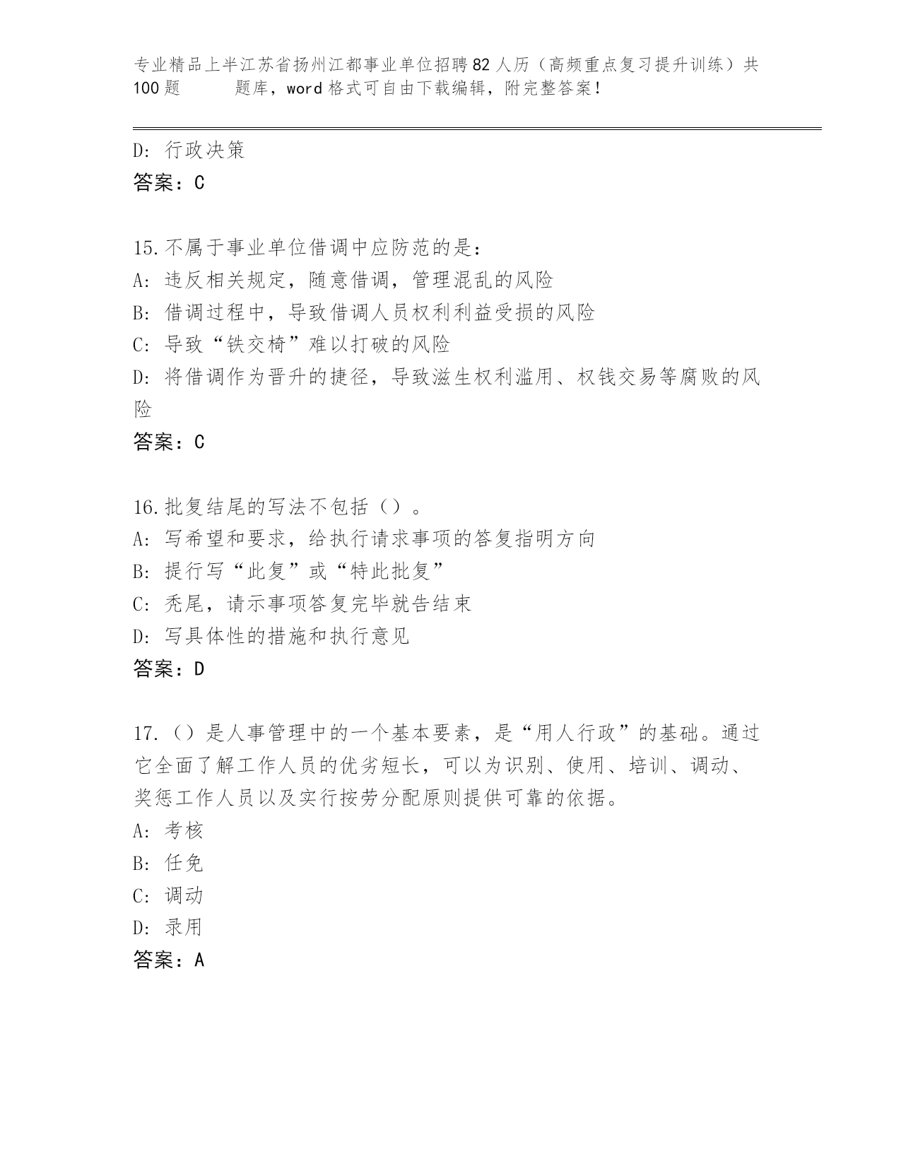 精品上半江苏省扬州江都事业单位招聘82人历(高频重点复习提升训练)共100题 完整题库及答案参考