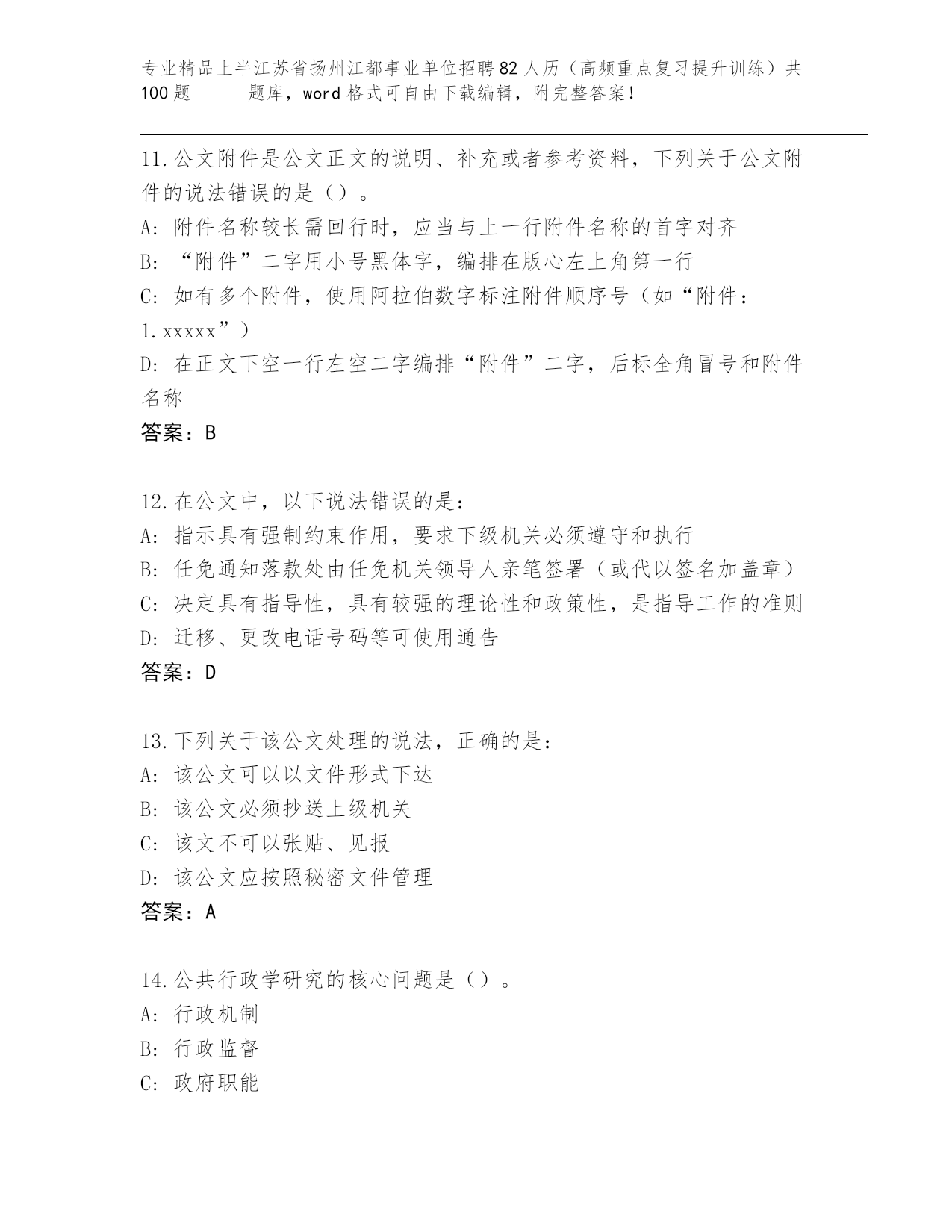 历年上半江苏省扬州江都事业单位招聘82人历(高频重点复习提升训练)共100题 题库大全及答案【精品】